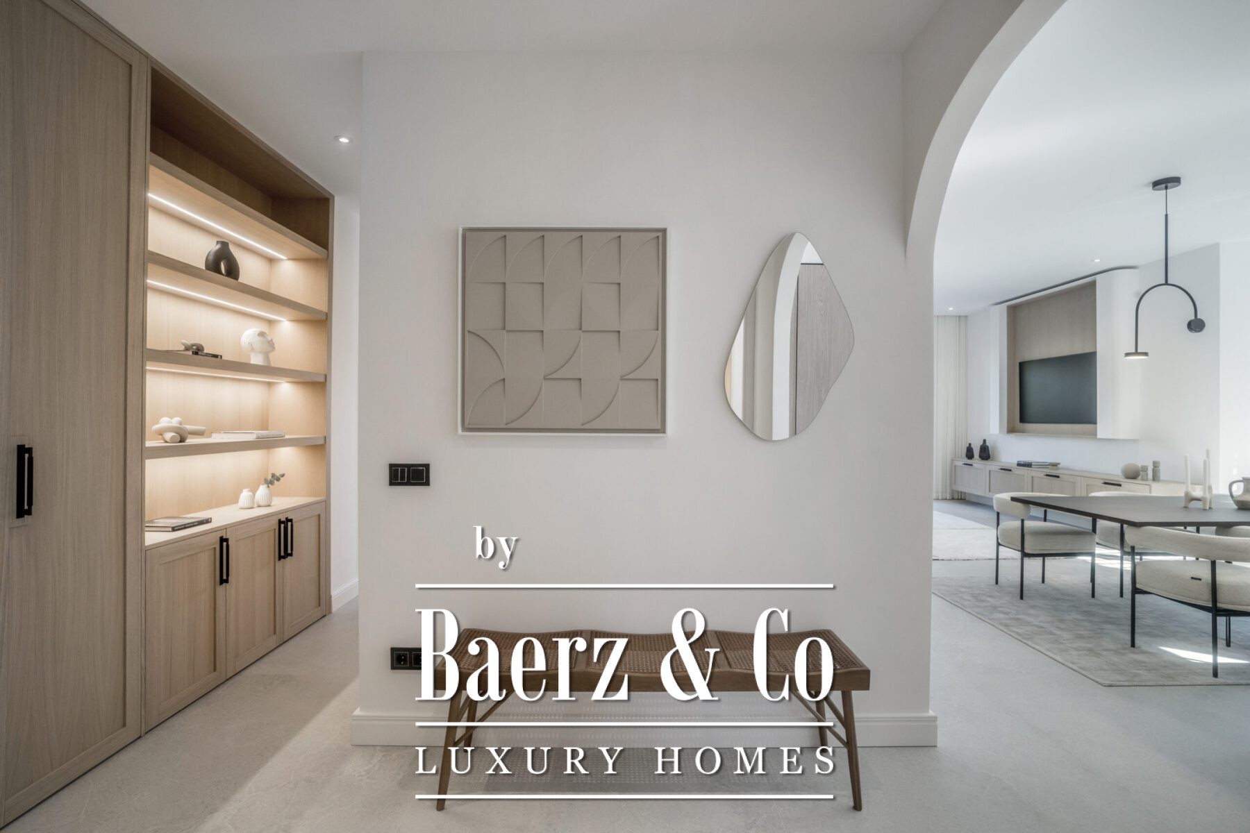 Het interieur van 145 m² omvat drie slaapkamers, ieder met op maat gemaakte inbouwkasten, subtiele LED-verlichting en sfeervolle houtdetails. De badkamers zijn uitgerust met Dornbracht-douches en -kranen; de mastersuite biedt een dubbele wastafel en een sculpturaal bad. De sfeer is overal in het appartement in balans, warm en royaal van opzet.