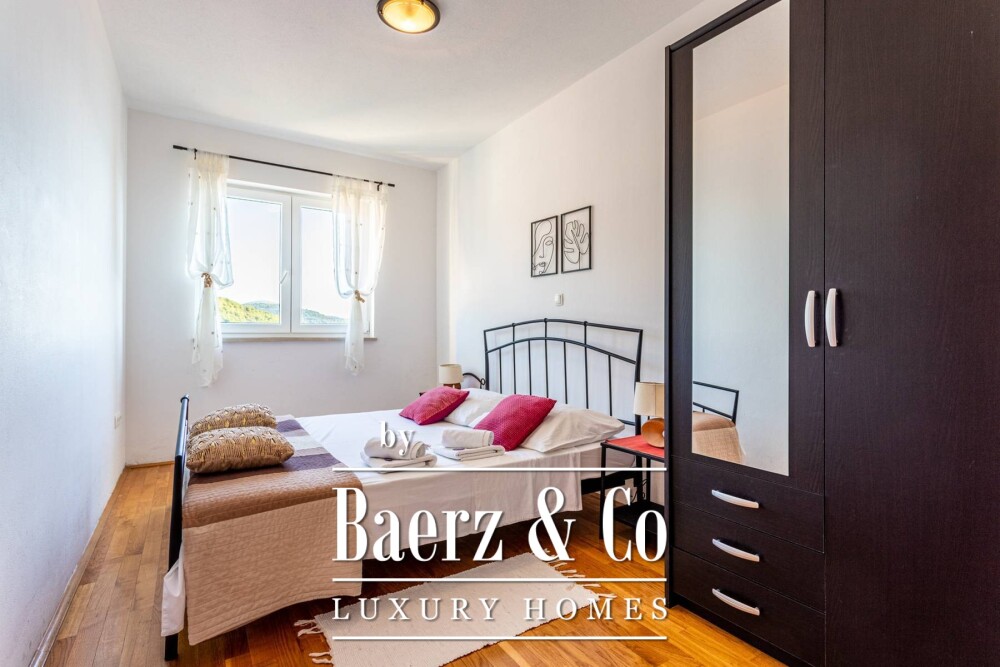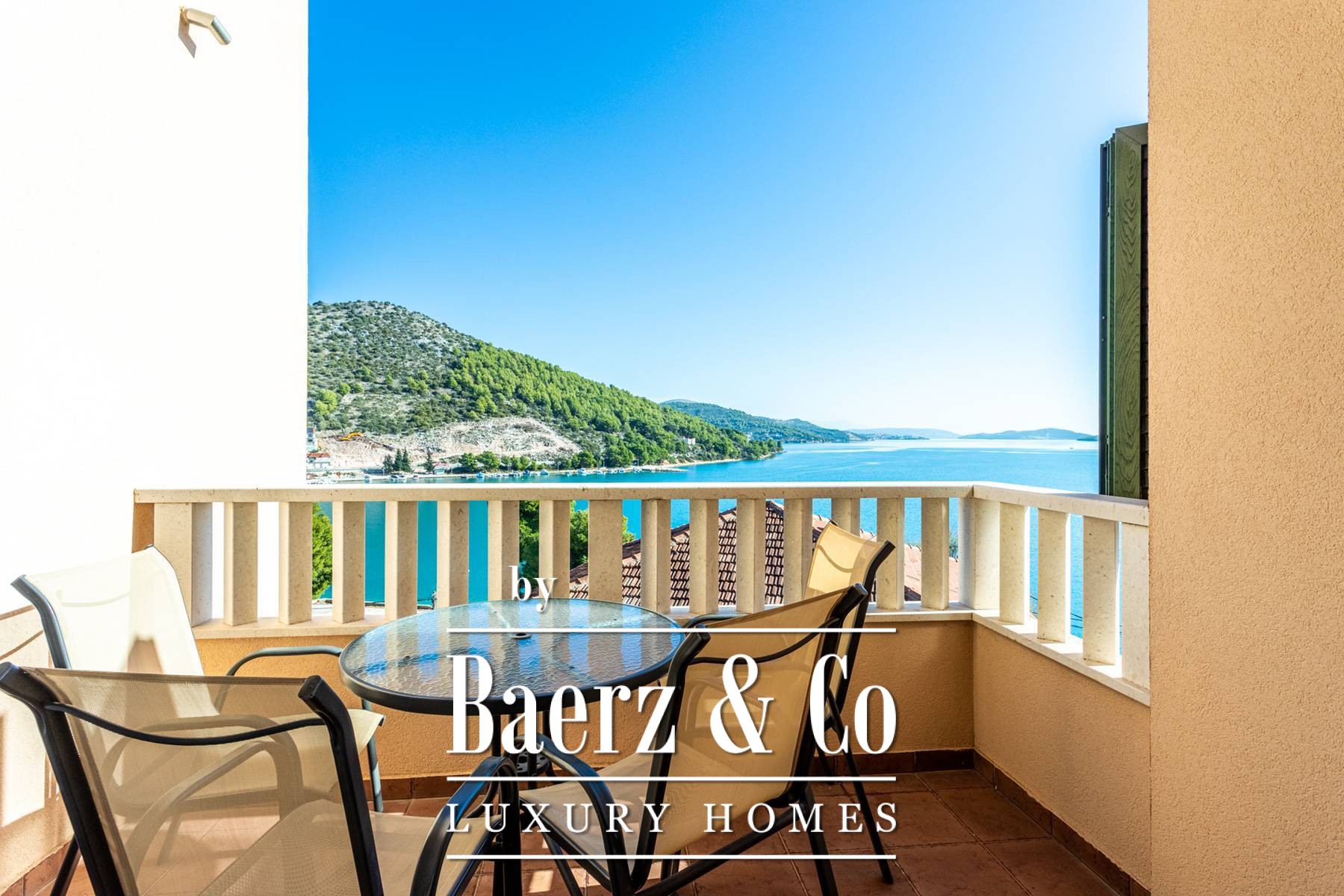 Townhouse Marina in Kroatië biedt een zeldzame combinatie van veelzijdigheid en kustbeleving, met ononderbroken uitzicht op de baai vanaf elk niveau. Dit pand van 755 m² bestaat uit zes volledig zelfstandige appartementen, waaronder één appartement met vijf kamers, drie met twee kamers en twee met één kamer. Elk appartement beschikt over een eigen badkamer en een rustige woonruimte, waardoor binnen het grotere geheel een weloverwogen gevoel van privacy ontstaat.