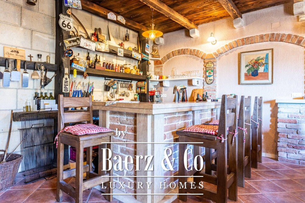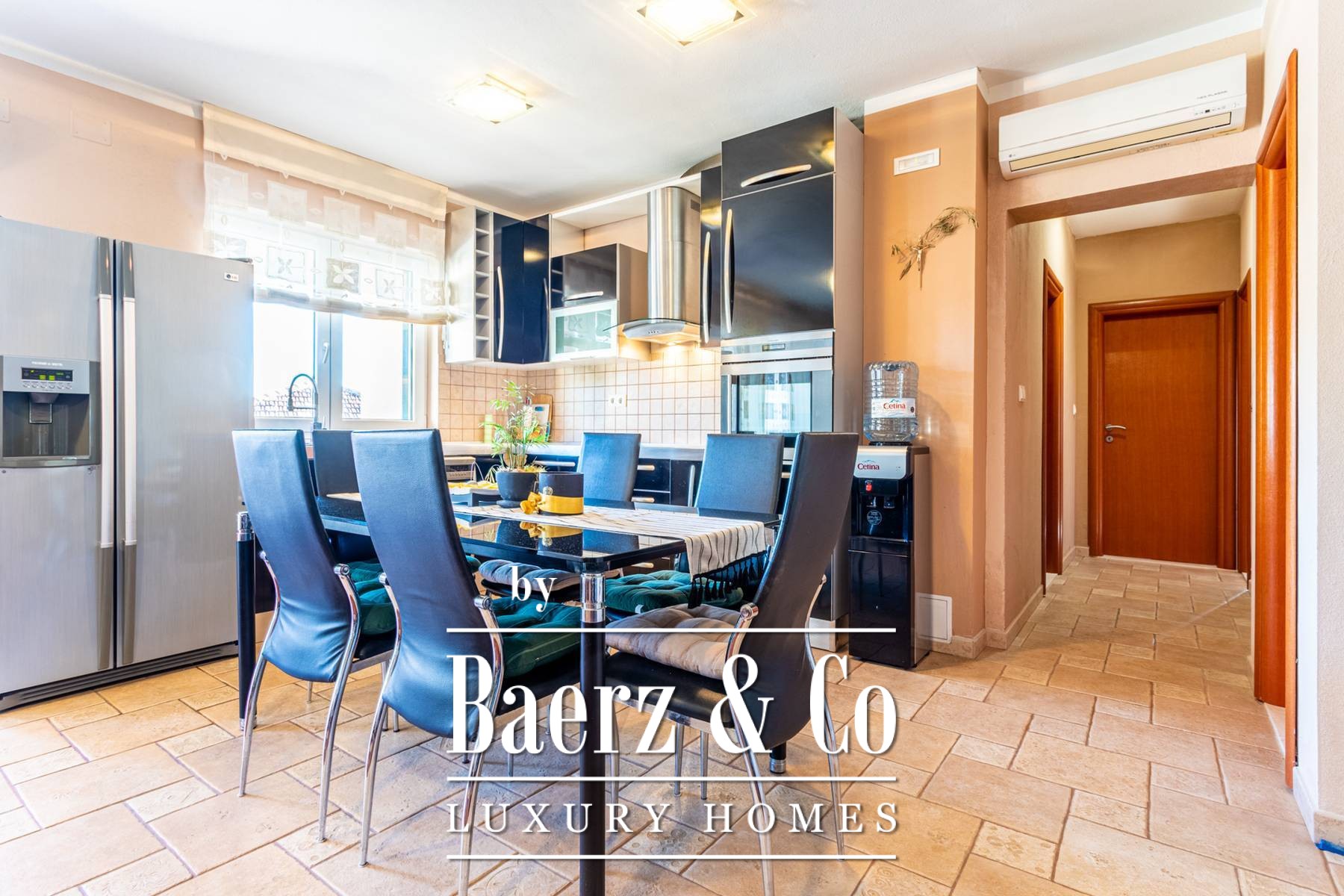 Het huis beslaat drie verdiepingen, van souterrain tot zolder, en is direct instapklaar gemeubileerd. Een fitnessruimte, sauna en jacuzzi brengen welzijn in het dagelijkse leven, aangevuld met een buitenzwembad van 25 m² en acht privéparkeerplaatsen. Door de aanwezige airconditioning is er het hele jaar door comfort.
