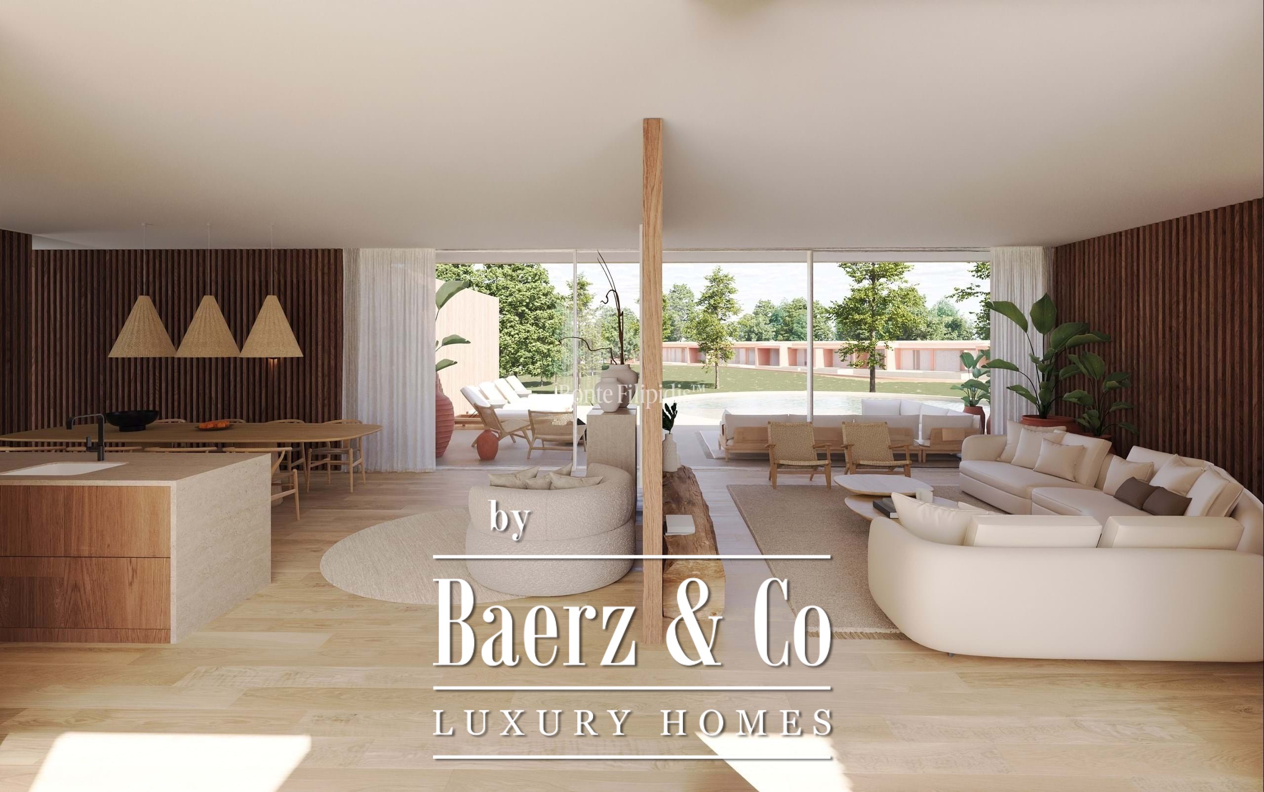 Riante buitenruimtes omarmen 112 m² en worden geaccentueerd door een privézwembad van 83 m², uitnodigend tot lange middagen in de zon of stille ochtenden aan het water. Elke woning is afgewerkt met zorgvuldige materiaalselectie, waarbij hout en natuursteen een sfeer van authenticiteit en warmte brengen, terwijl de architectuur van WEWOOD functionaliteit en verfijning harmonieus samenbrengt. De royale terrassen bieden vrij zicht over landelijke vergezichten en creëren een toevluchtsoord voor beschouwende ontbijten of avonden in volledige privacy.