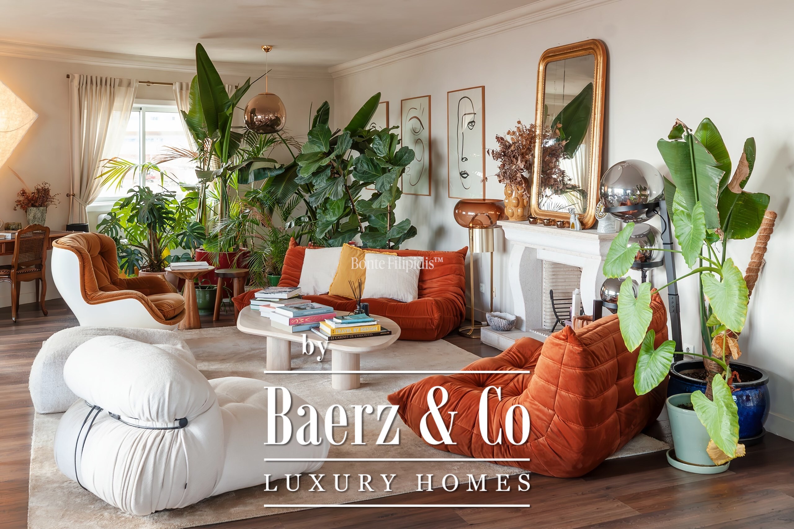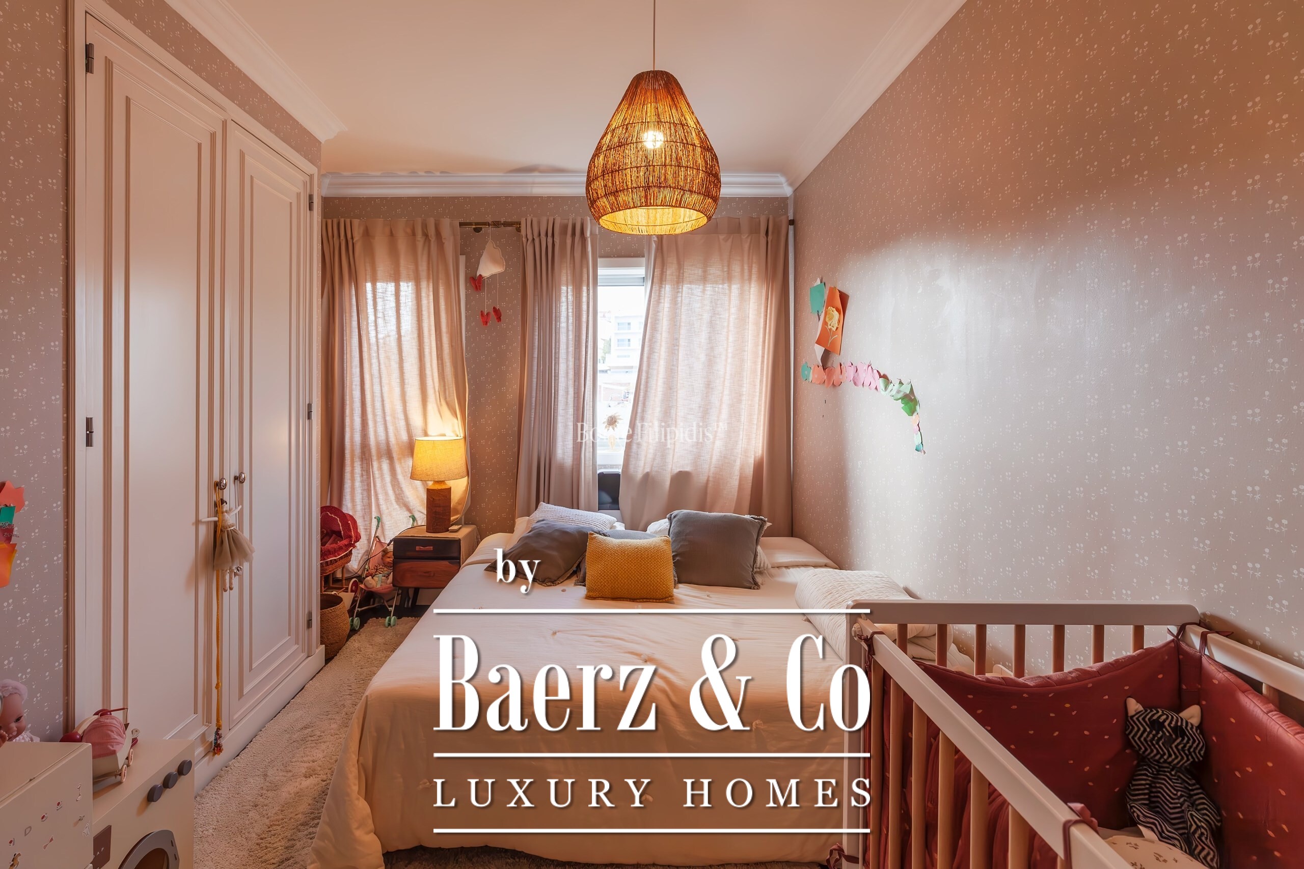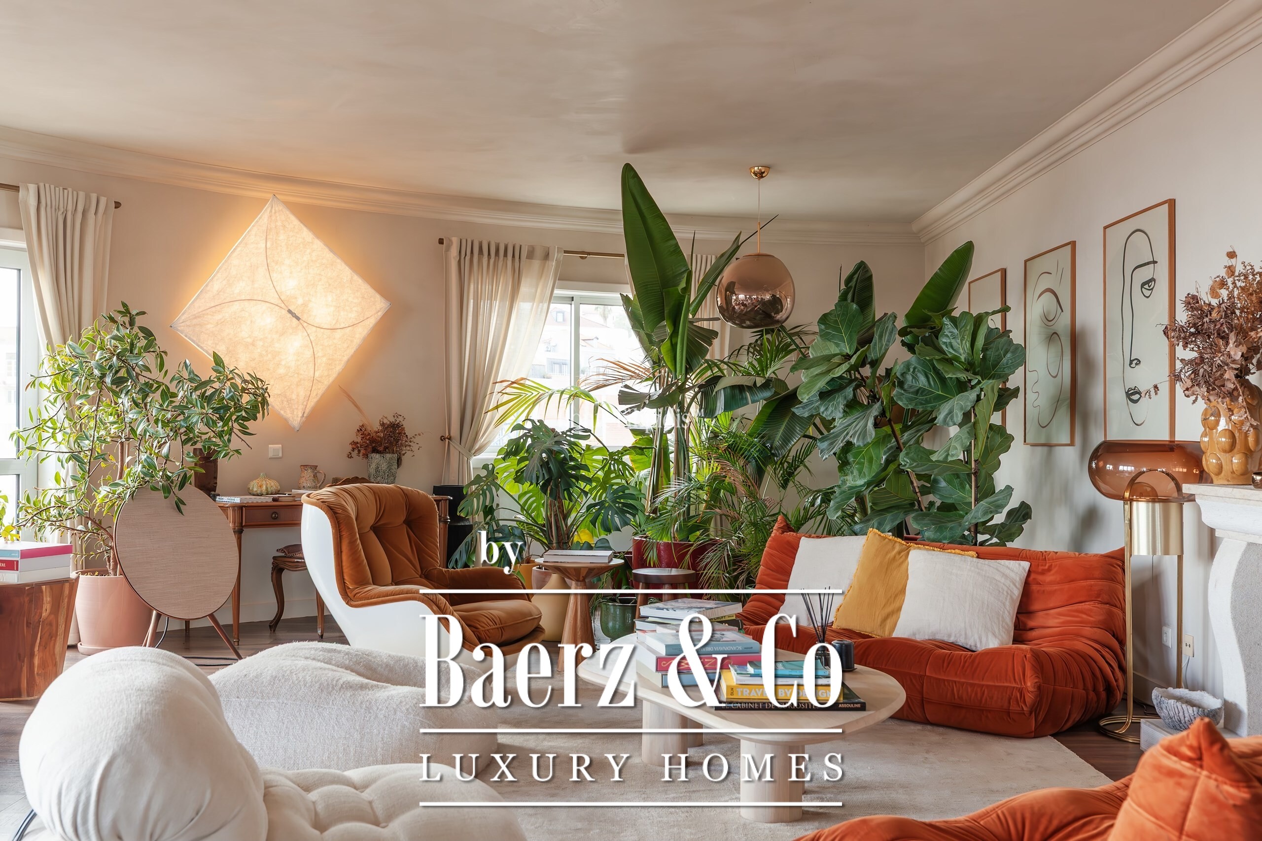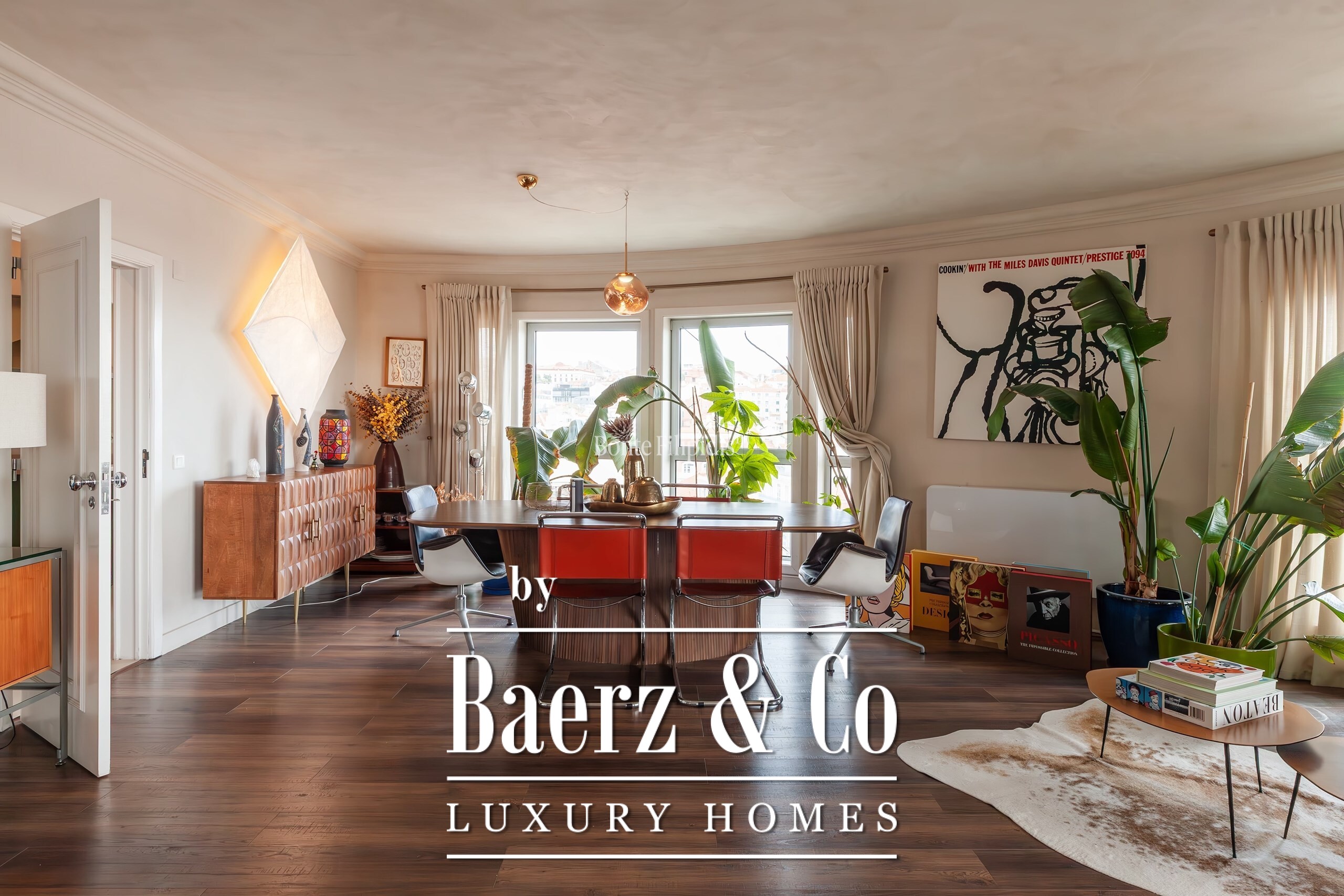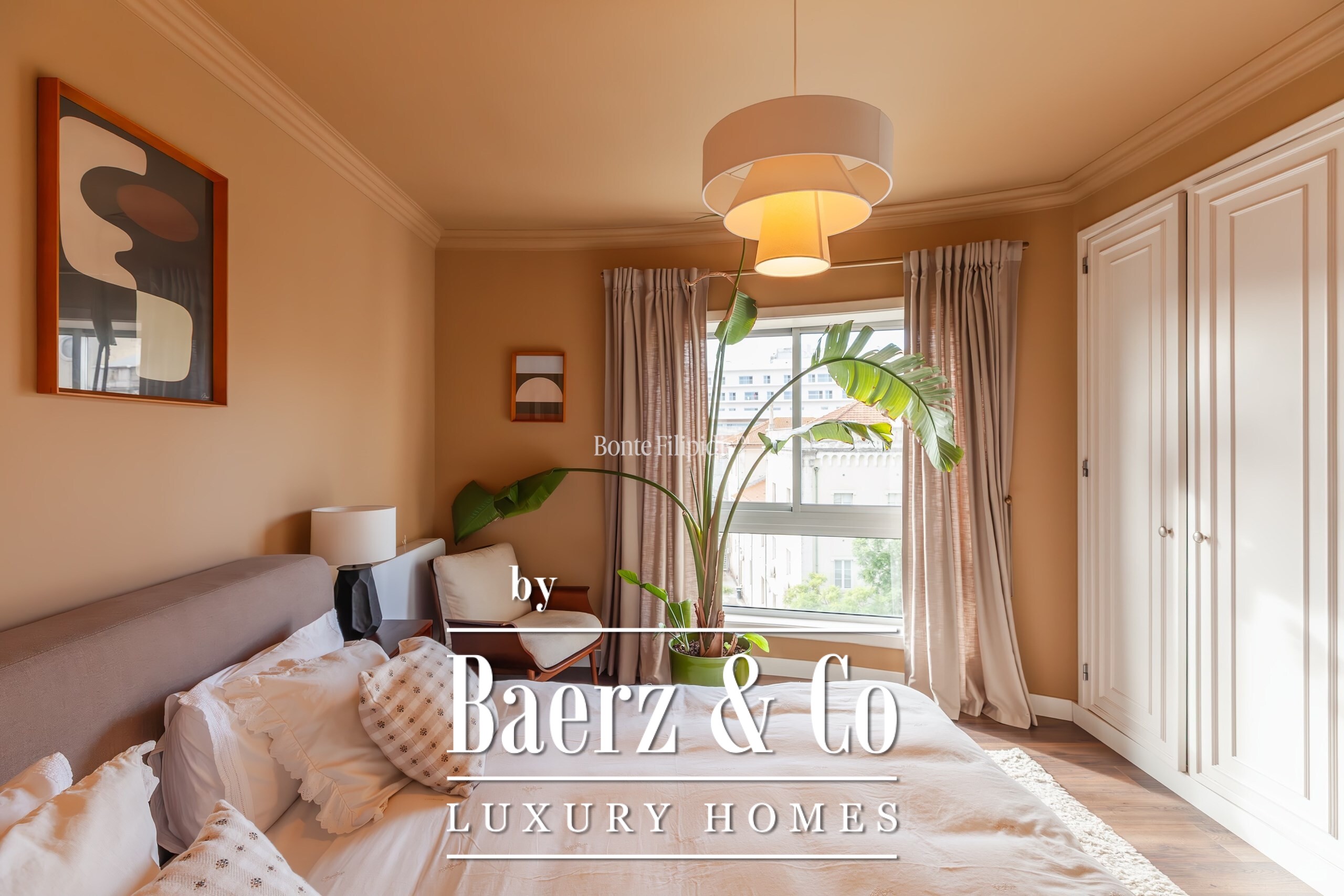Alle vier de slaapkamers behouden een ingetogen gevoel van ruimte, aangevuld door drie complete badkamers. Het appartement verenigt traditionele Lissabonse elegantie – hoge plafonds, houten vloeren, originele details – met doordacht modern comfort. Het gebouw beschikt over een lift, beveiligde parkeergelegenheid en doordachte voorzieningen.