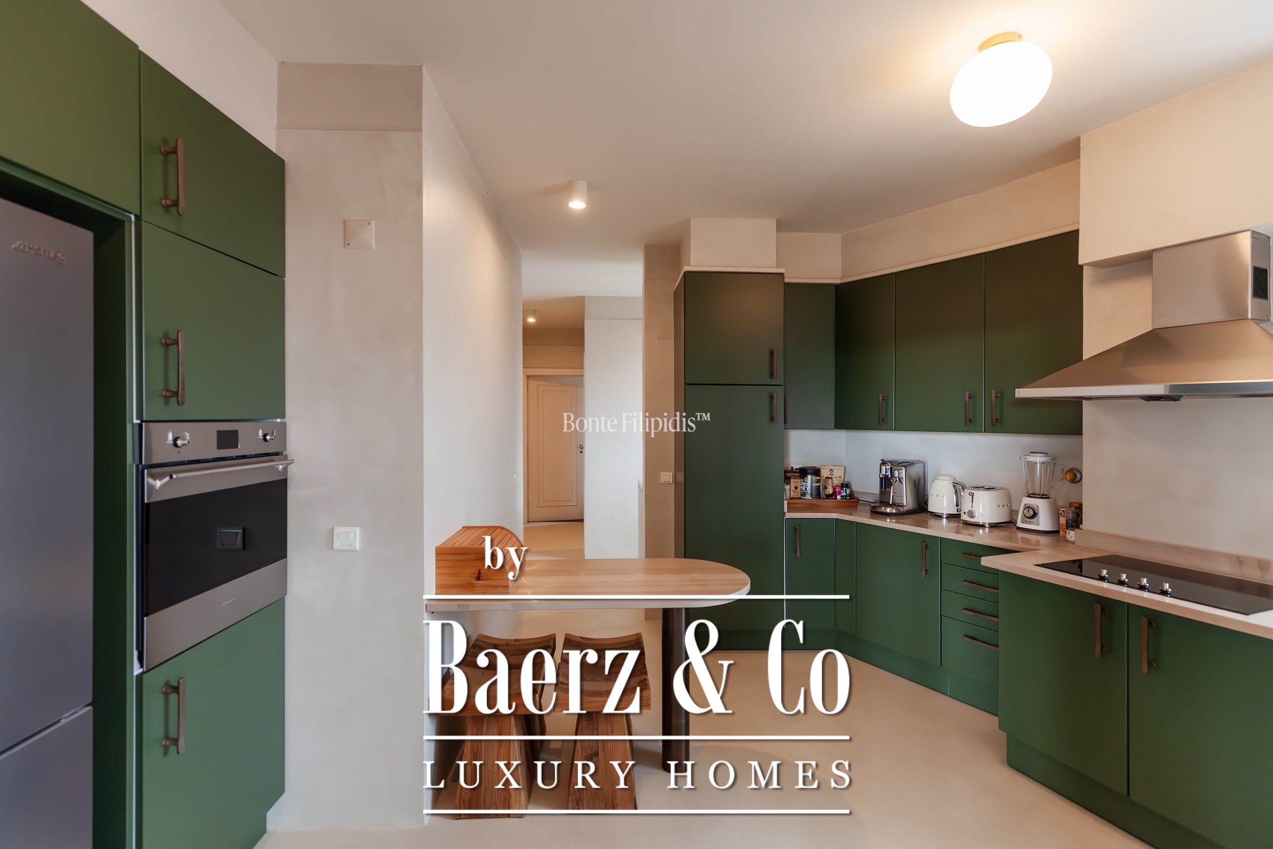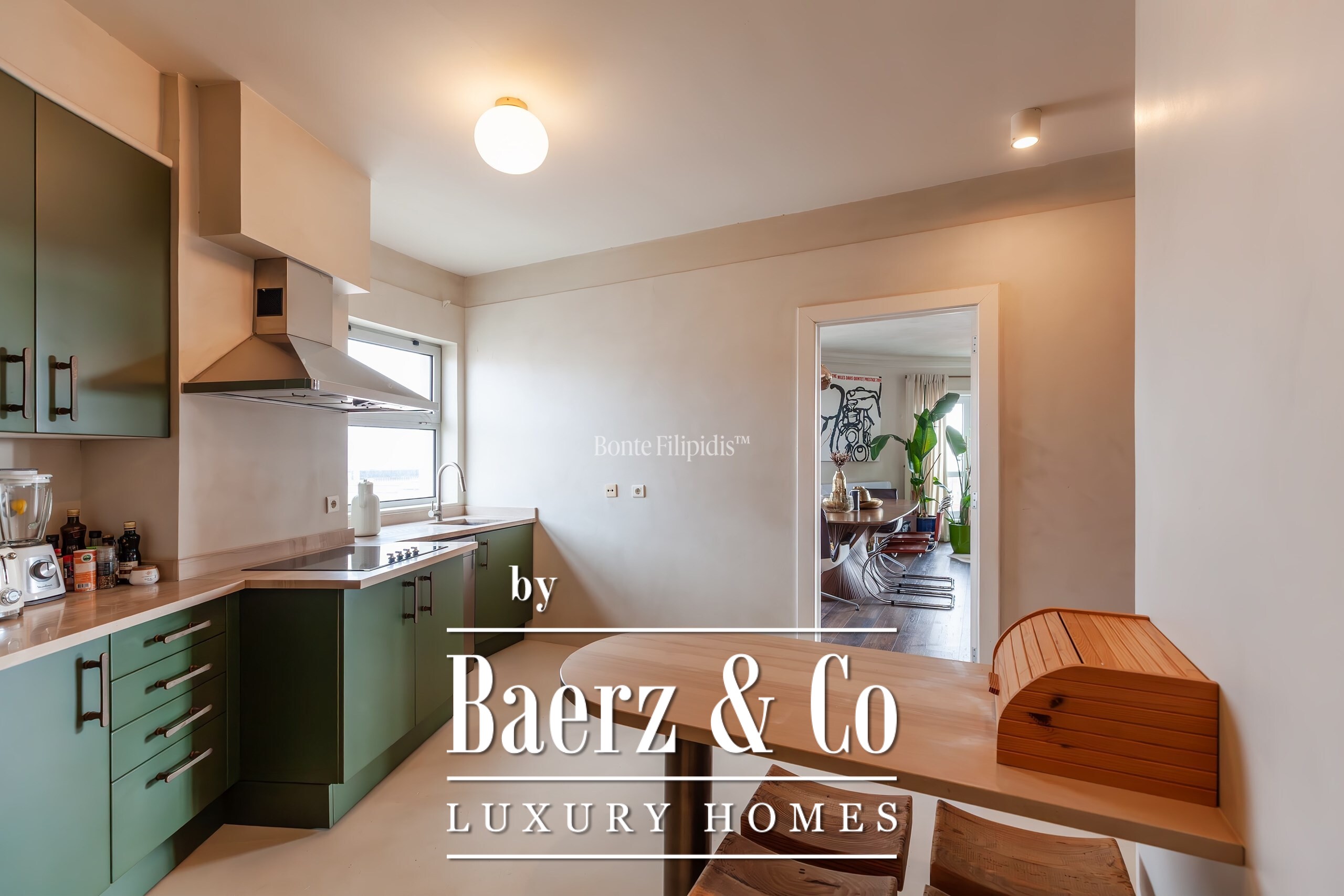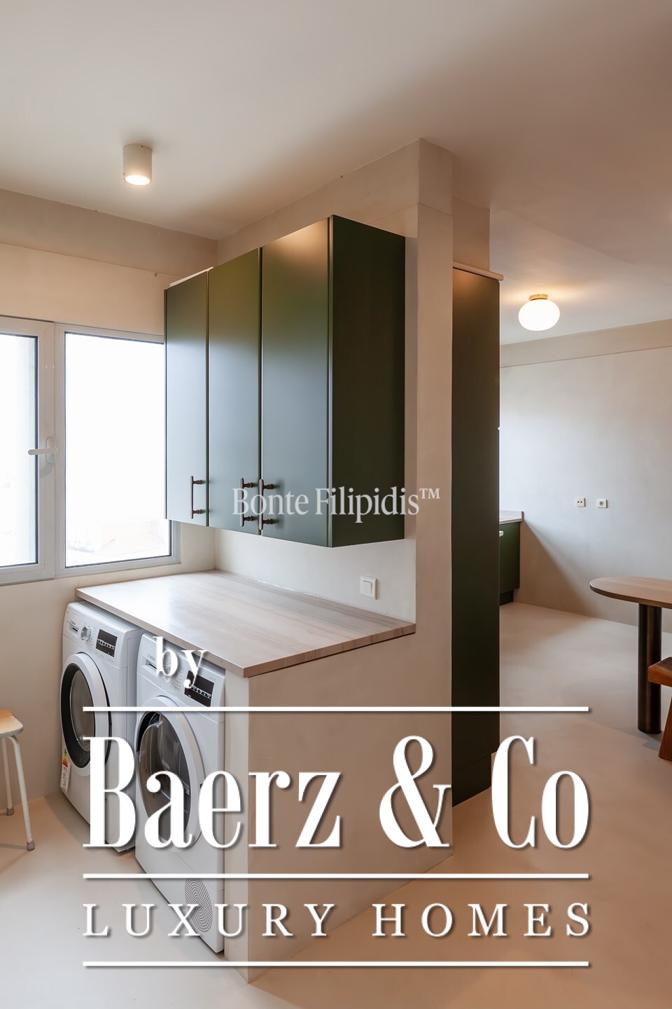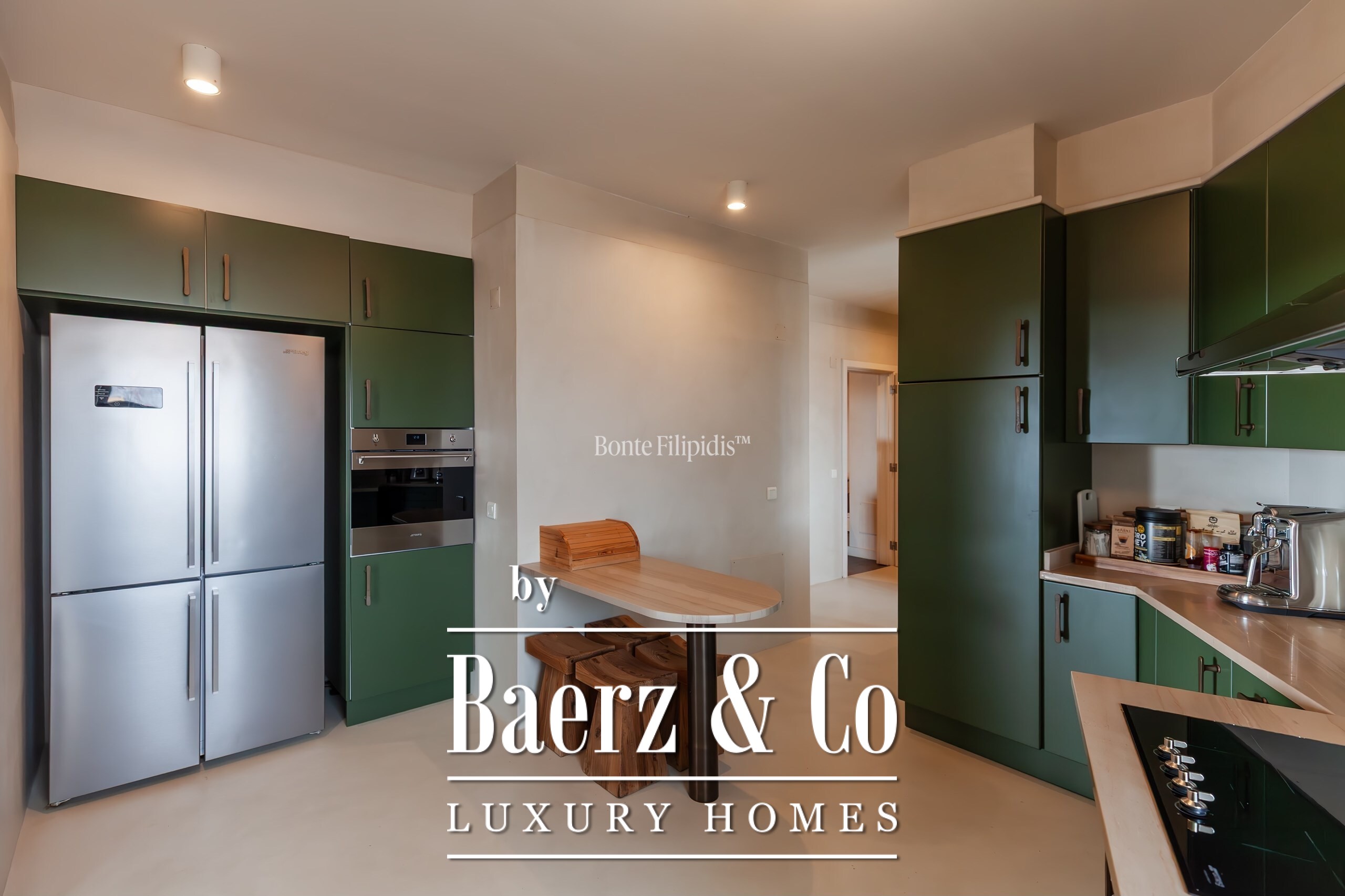 Grote raampartijen in de woon- en eetkamer bieden een kalm uitzicht op de rivier en geven toegang tot een ruim balkon, waarmee binnen en buiten moeiteloos in elkaar overlopen. Een haard vormt het middelpunt van de ruimte voor warmte en gezelligheid tijdens koelere avonden in Lissabon. De keuken is volledig uitgerust met eigentijdse apparatuur en een geïntegreerde wasruimte, waardoor functie en discretie samenkomen.