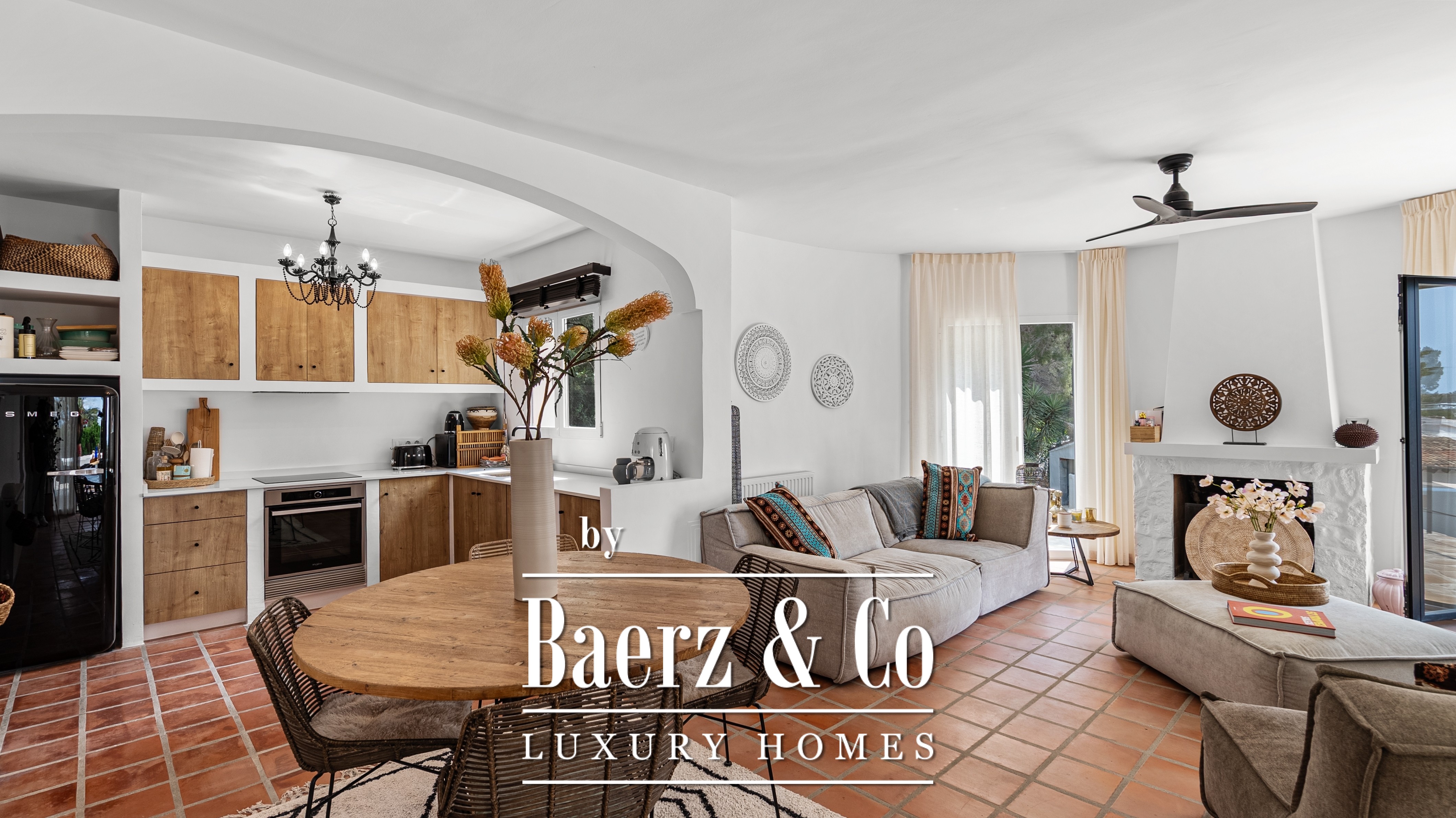 De open keuken vloeit naadloos over in de leefruimte, waar natuurlijk licht en sfeer samenkomen. De directe toegang tot het terras maakt het geheel perfect voor wie houdt van het buitenleven, met elke dag opnieuw het gevoel van vakantie.