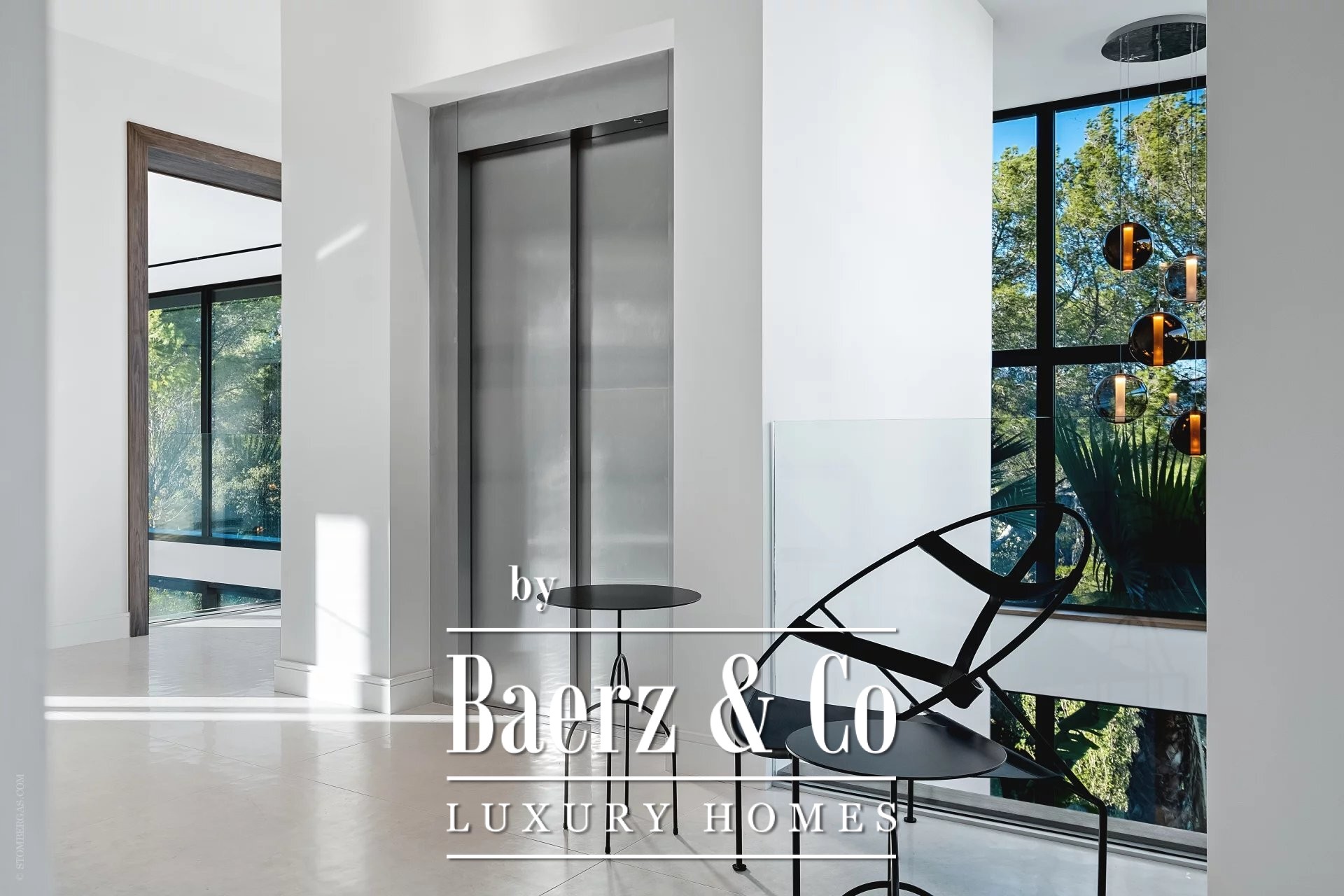 De villa is uitgerust met domotica, airconditioning en geavanceerde beveiliging tot in elk detail. Voorzieningen omvatten een lift, wijnkelder, thuisbioscoop, fitnessruimte, sauna, speelkamer met bar en een garage voor vier auto's. Bewoners genieten hier van een zeldzame balans tussen serene afzondering en hedendaags comfort, kenmerkend voor een luxueuze villa te koop in Mougins.