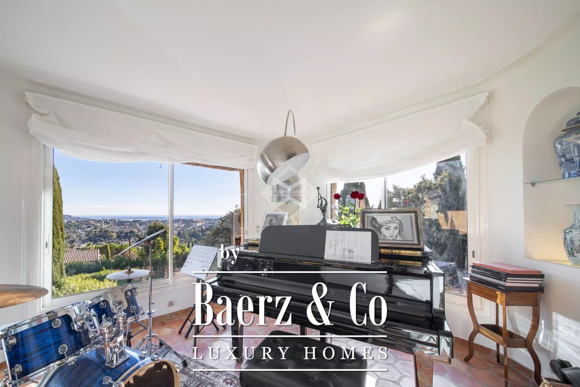 Villa Mougins met panoramisch zeezicht nodigt een veeleisende eigenaar uit om elegantie en rust te ervaren boven de baai van Cannes. Gelegen in een fraai aangelegde tuin van 3.185 m² biedt deze residentie 423 m² aan interieur, met zorg vormgegeven voor privacy en een natuurlijke flow. Het hoofdgebouw beschikt over vijf slaapkamers, terwijl een apart bijgebouw met twee slaapkamers ruimte biedt voor zowel royaal gezinsleven als stijlvolle gastenaccommodatie. Een afzonderlijk personeelsappartement verhoogt het gevoel van gemak en zelfstandigheid.