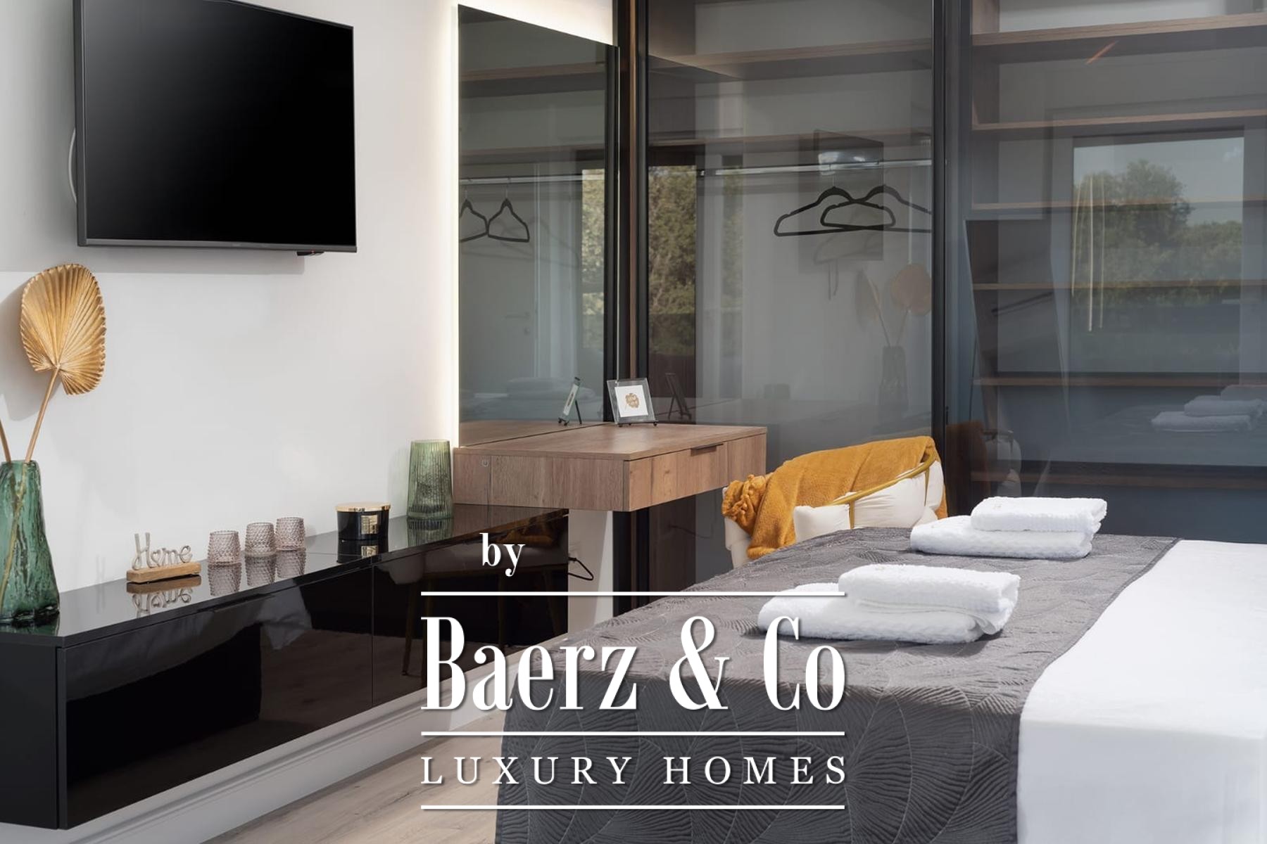Op de eerste verdieping bevinden zich drie extra slaapkamers, elk met een eigen badkamer en toegang tot open terrassen, wat zorgt voor een soepele overgang tussen binnencomfort en buitenruimte. Grote raampartijen vangen het verfijnde Kroatische licht, terwijl de tuin met automatisch irrigatiesysteem voorzien is van een verwarmd zwembad, zonneterras en een buiteneetgedeelte, ontworpen voor zowel rustige ochtenden als gezellige avonden.