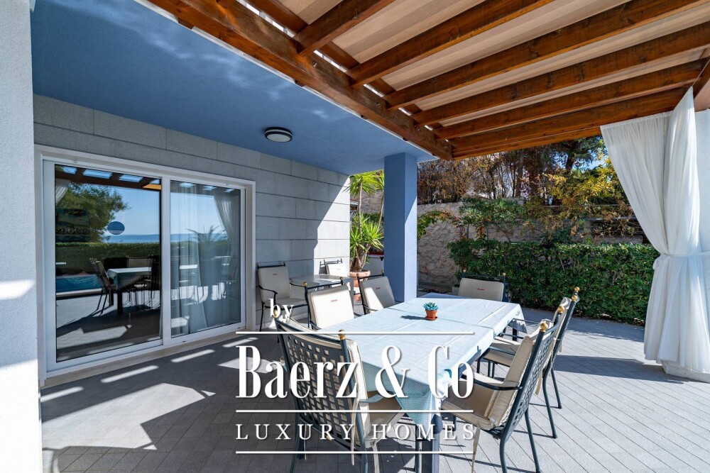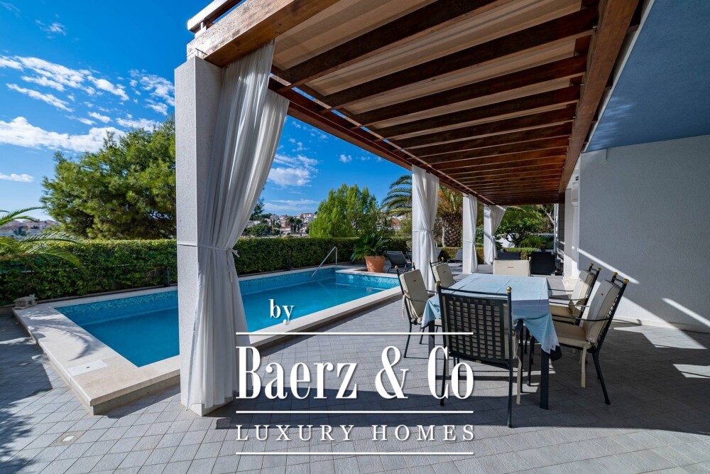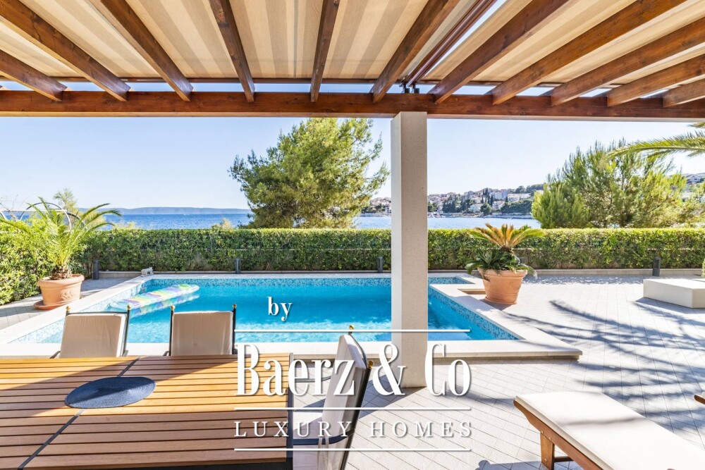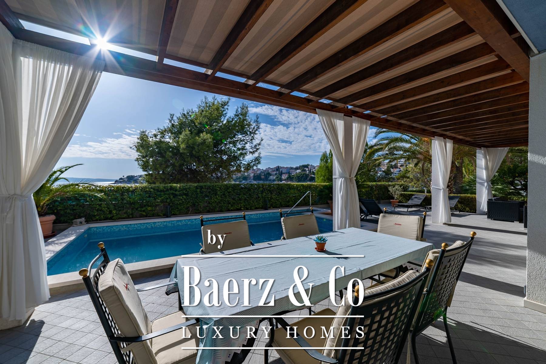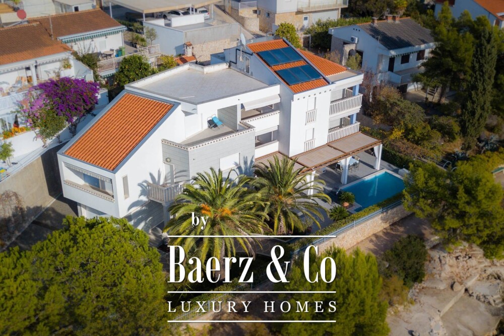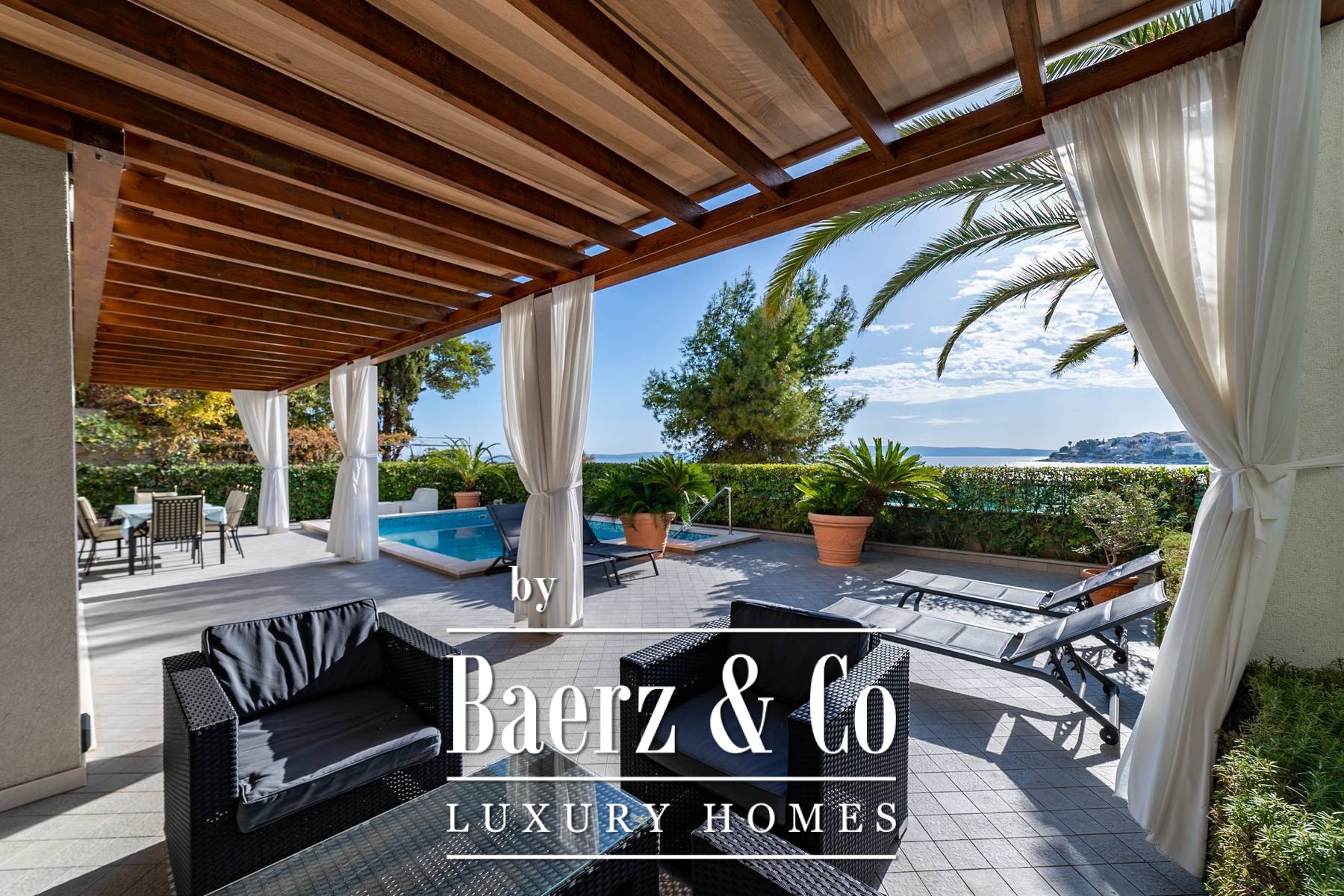 Voorzieningen zoals een buitenzwembad, garage met twee parkeerplaatsen, extra parkeergelegenheid op eigen terrein, opslag, een taverne en een zomerkeuken vergroten de veelzijdigheid van de villa. De directe ligging aan zee biedt directe toegang tot de boulevard van Okrug Gornji en kiezelstranden, terwijl de nabijheid van de luchthaven van Split en de UNESCO-steden Split en Trogir garant staat voor uitstekende bereikbaarheid. Winkels, restaurants, scholen en speelplaatsen zijn binnen handbereik, waardoor deze villa geschikt is voor zowel ontspanning als permanent wonen. Deze luxe villa te koop in Okrug Kroatië onderscheidt zich door een unieke mix van onafhankelijkheid, flexibiliteit en verhuurpotentieel, altijd met uitzicht op de oneindige mediterrane horizon.