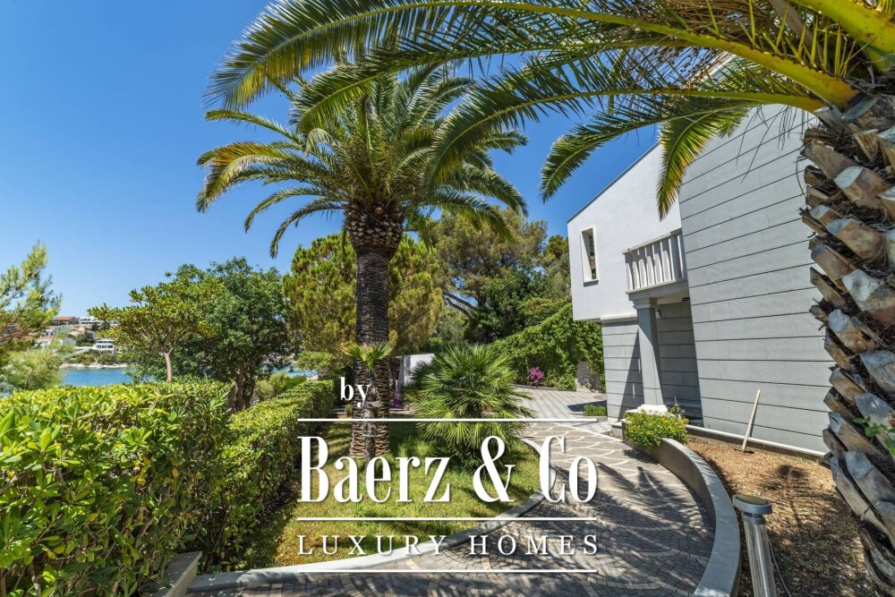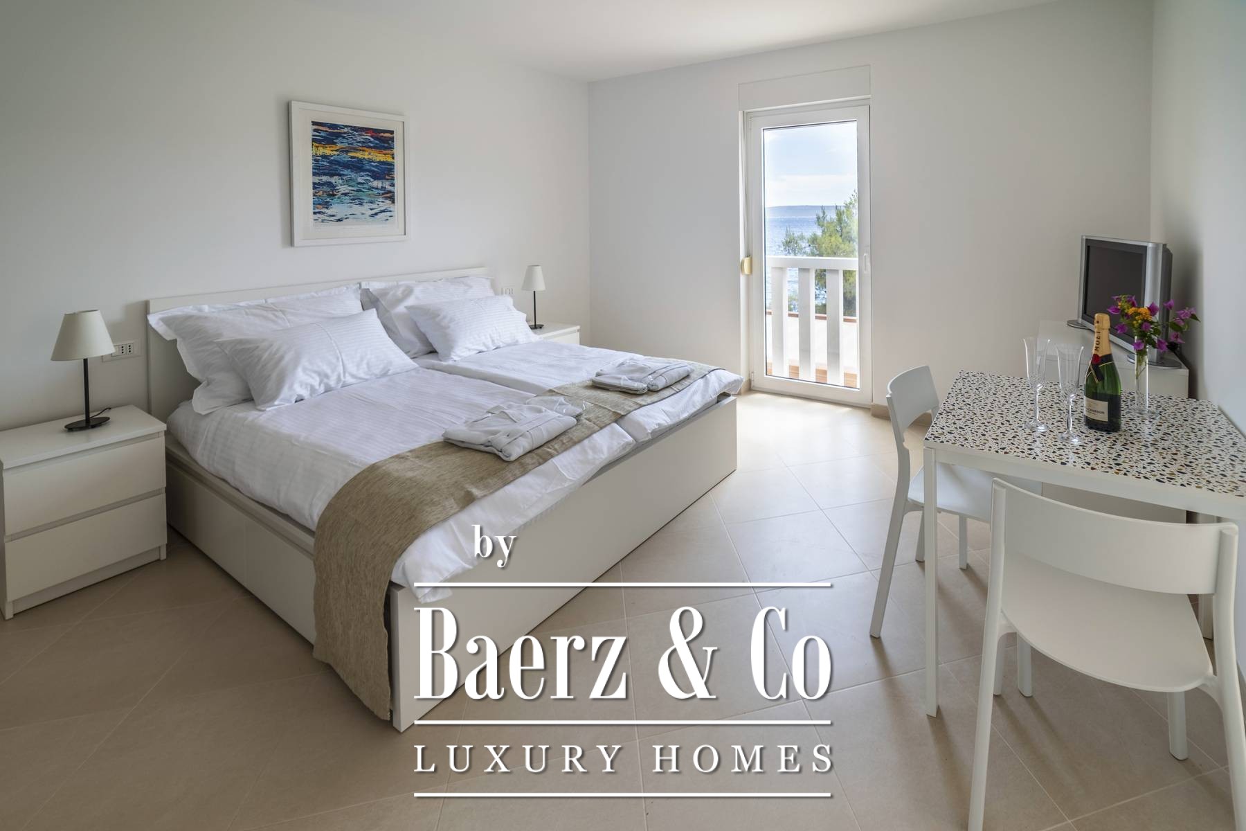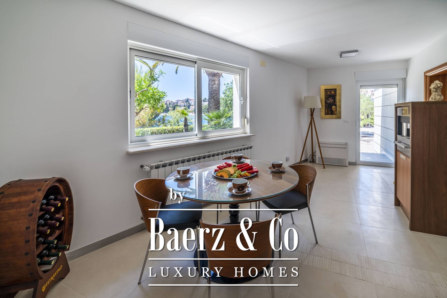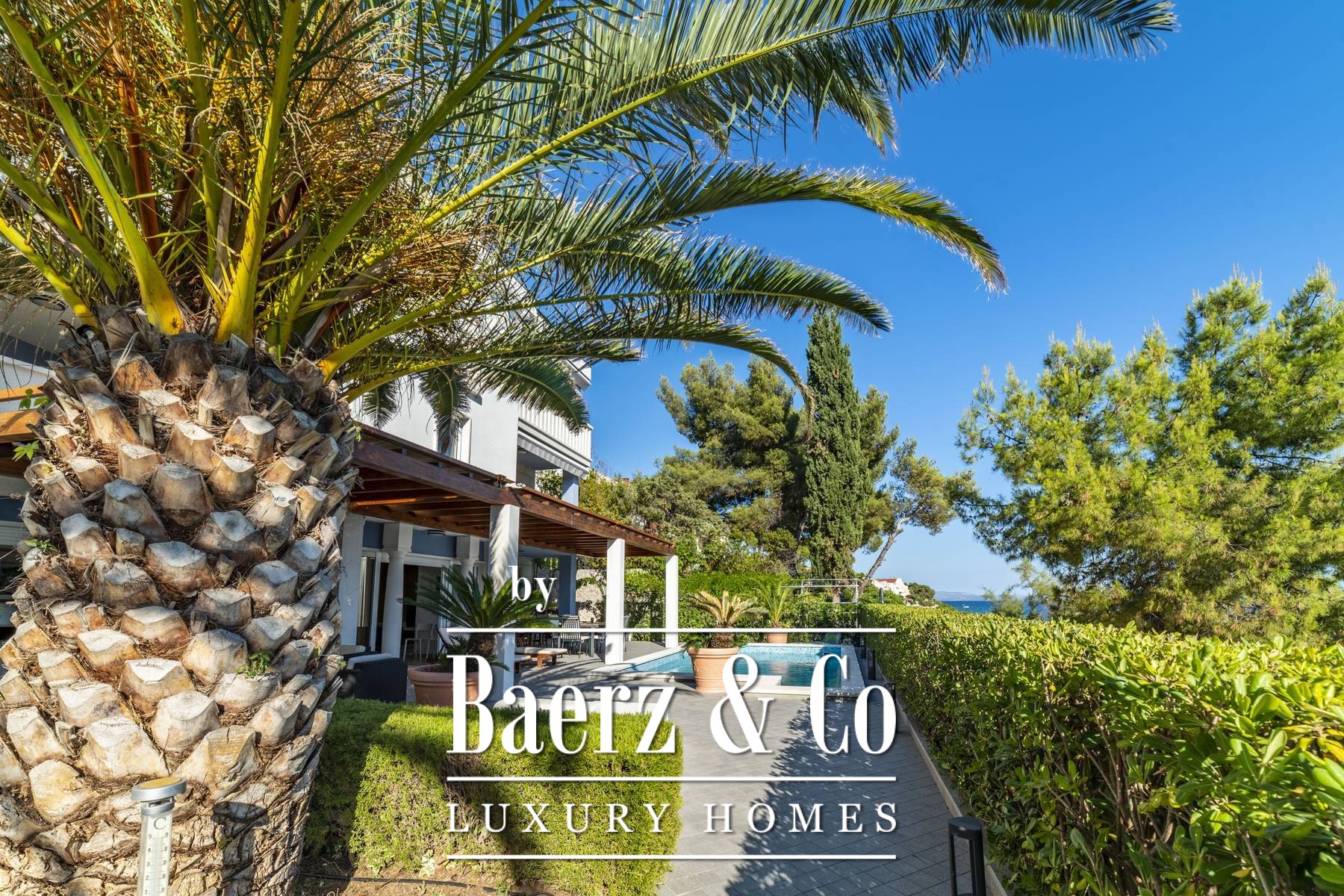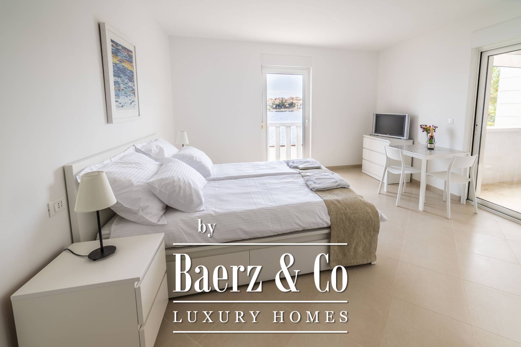 Villa Okrug Kroatië onderscheidt zich in deze exclusieve frontlinie-vastgoed, en biedt een zelden voorkomende combinatie van ruimte, privacy en directe kustverbinding. Gelegen direct boven de Adriatische Zee op het eiland Čiovo, werd deze villa van 1.000 m² gebouwd in 2010 en dient als verfijnd boetiekhotel of privé kustvilla. De drie woonlagen beslaan een perceel van 1.419 m², waarbij elk appartement en gemeenschappelijk vertrek ontworpen werd om te profiteren van natuurlijk licht en panoramisch zeezicht.