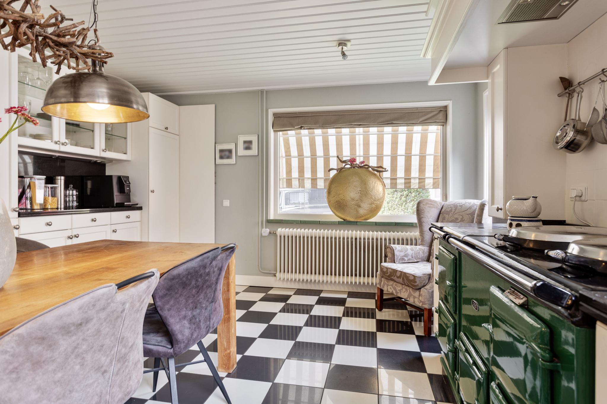 Begane grond: entree, royale hal met trappenhuis en toilet met fonteintje. Via deze centrale hal is er toegang tot de eerste woon-/zit-/hobbykamer en ook toegang tot de royale woonkeuken welke is uitgerust met diverse inbouwapparatuur zoals een koelkast, vaatwasser, gave AGA kookplaat met ingebouwde ovens, afzuigkap en volop bergruimte in de vele kasten. Via de keuken is er toegang tot de provisiekelder van ca. 10,3m². Door naar de tuingerichte woonkamer met openslaande tuindeuren waardoor er prachtig uitzicht ontstaat op de tuin, sfeervolle openhaard en nog een separate ruimte welke momenteel is ingericht als tv-kamer maar ook uitermate geschikt is voor bijvoorbeeld hobbymatig gebruik of een speelkamer. Tal van mogelijkheden door het diverse aanbod aan ruimtes. Via de zij-entree van de woning kom je direct in de bijkeuken met aansluiting voor de wasmachine-/droger én is er nog een stenen berging met extra bergruimte. In deze berging zit tevens de trap naar een extra ruimte welke nu als kantoor fungeert. Door de dakkapel en dakramen is deze ruimte ook perfect voor bijvoorbeeld een extra slaapkamer.
