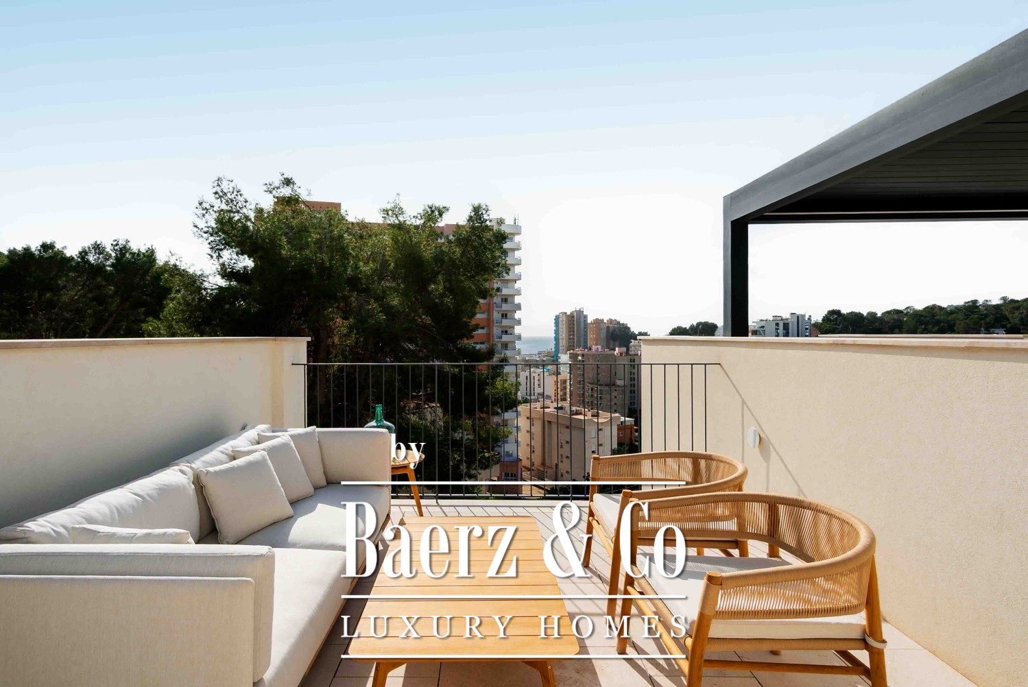 Het kloppend hart van de woning is het privé dakterras met zwembad, dat uitkijkt over de kustlijn en bergen van Mallorca – een plek voor rust of om gasten te ontvangen. Verdere voorzieningen omvatten een aparte was- en berging, een privégarage met laadmogelijkheid voor elektrische voertuigen en prachtig geïntegreerde binnen- en buitenruimten. Het penthouse ligt op enkele minuten van Palma en op loopafstand van de zee, waardoor het een sublieme kustlevensstijl vertegenwoordigt. Dit luxe penthouse te koop in Palma De Mallorca staat voor discretie en mediterrane verfijning.