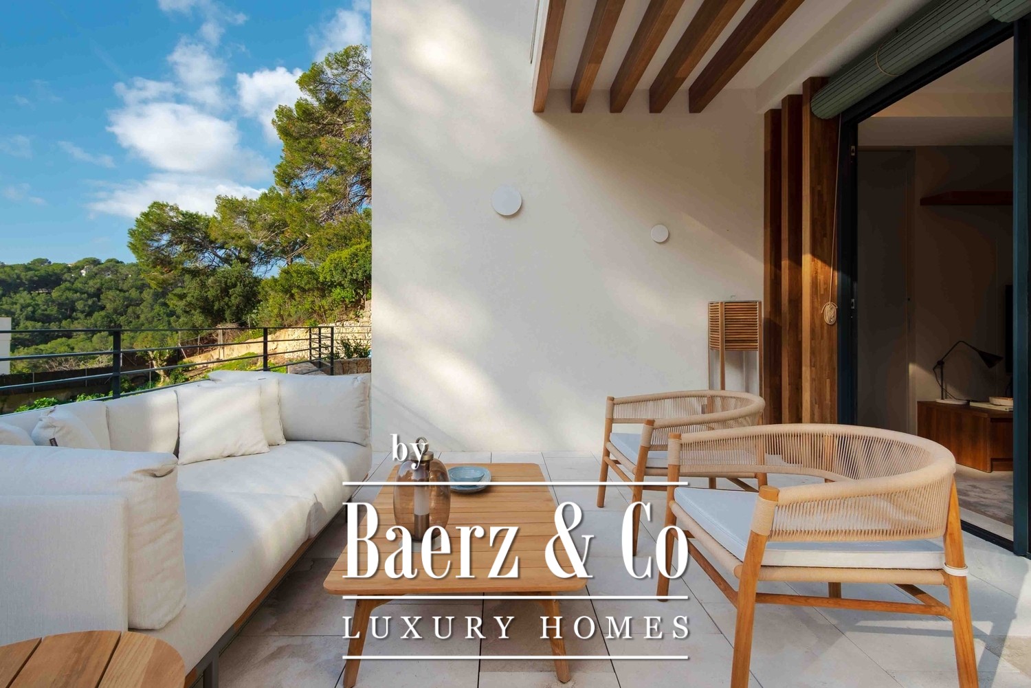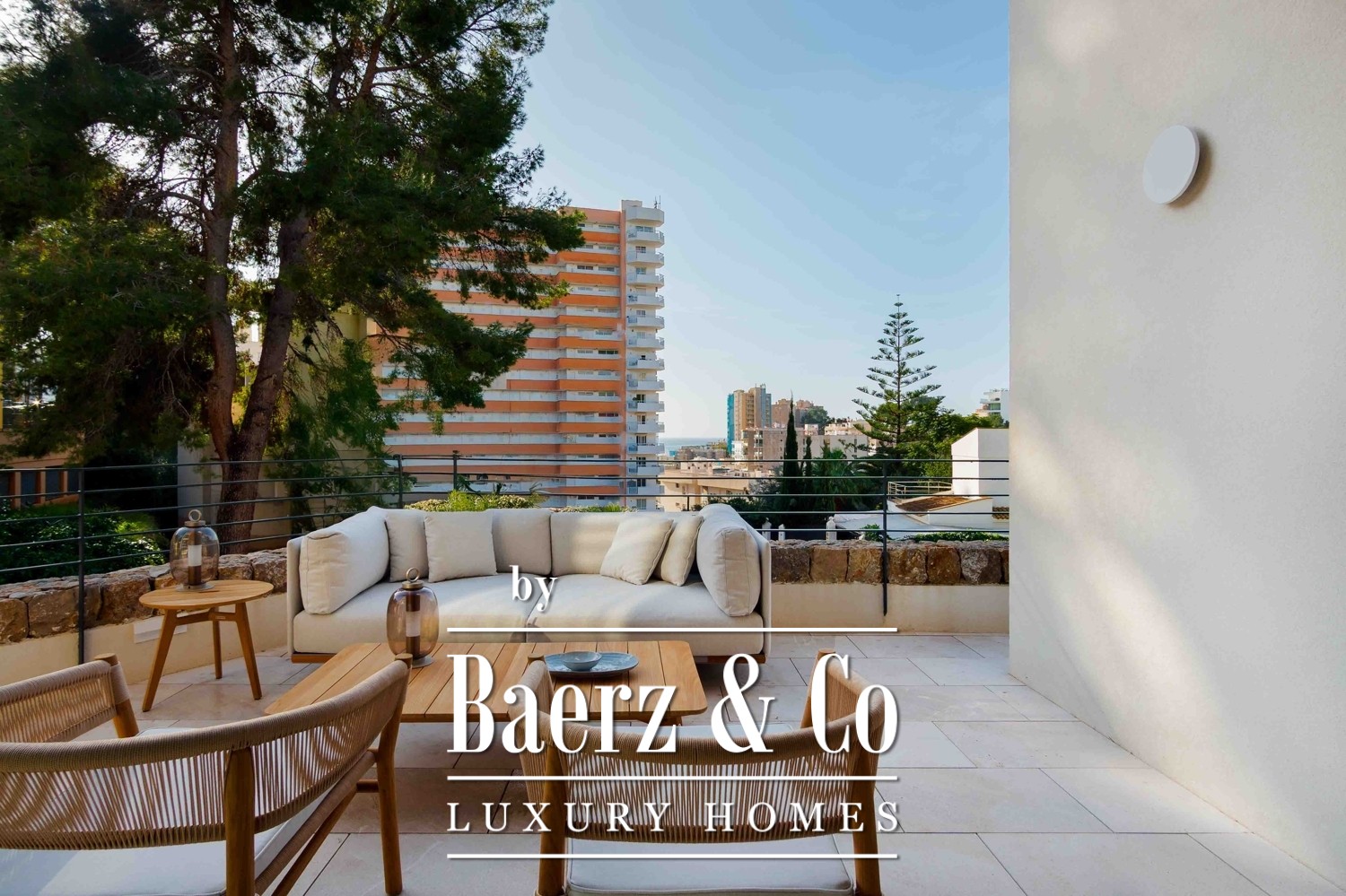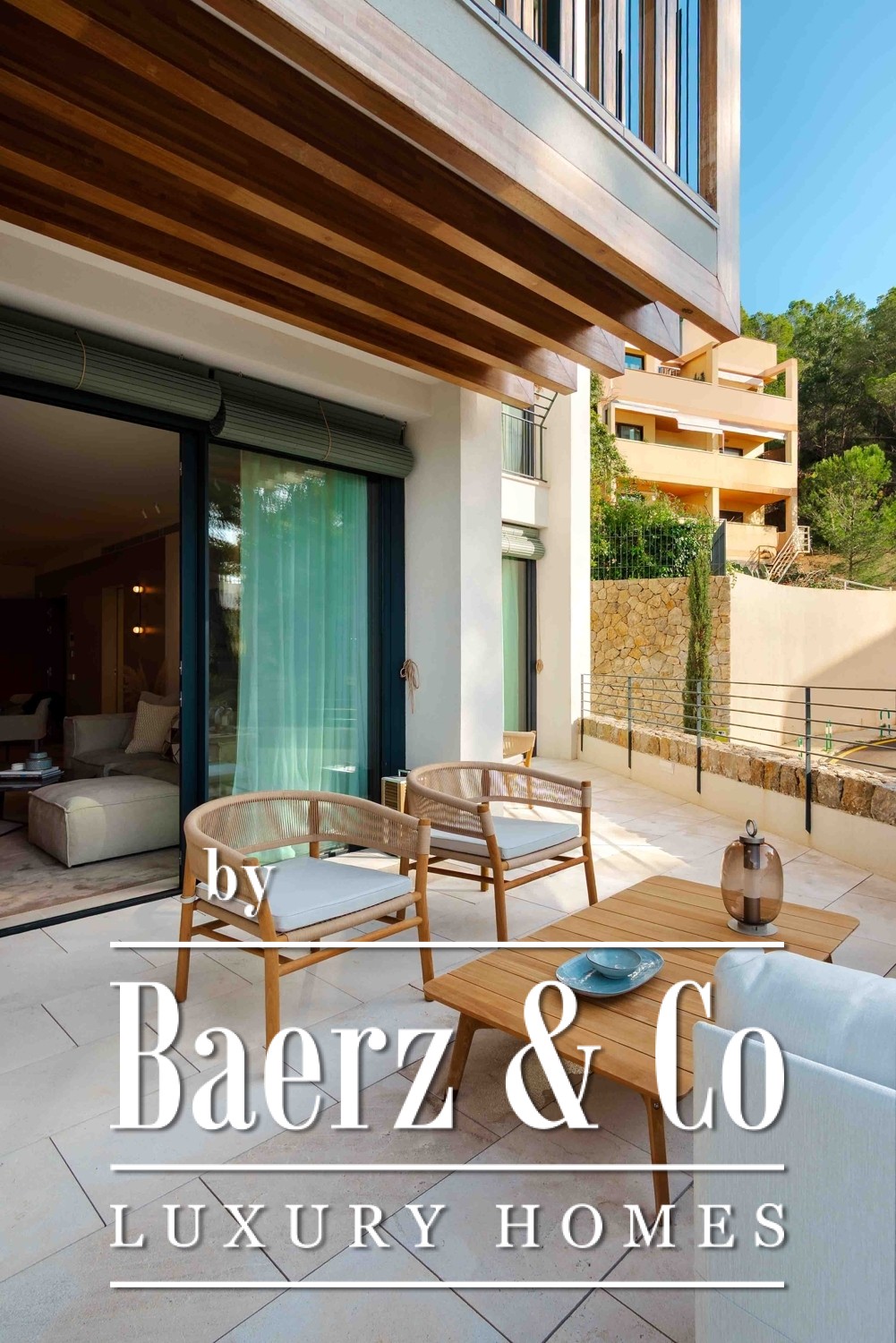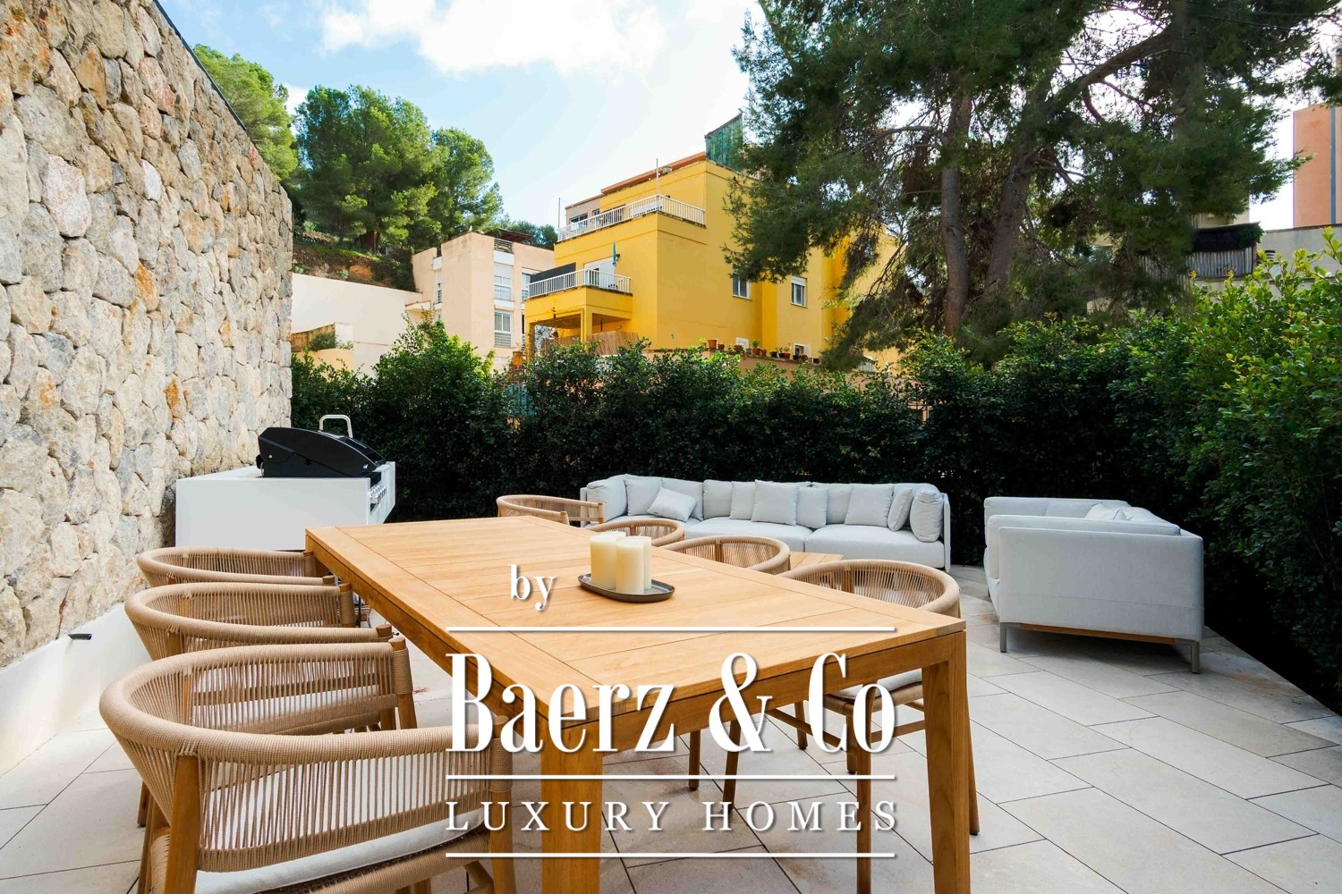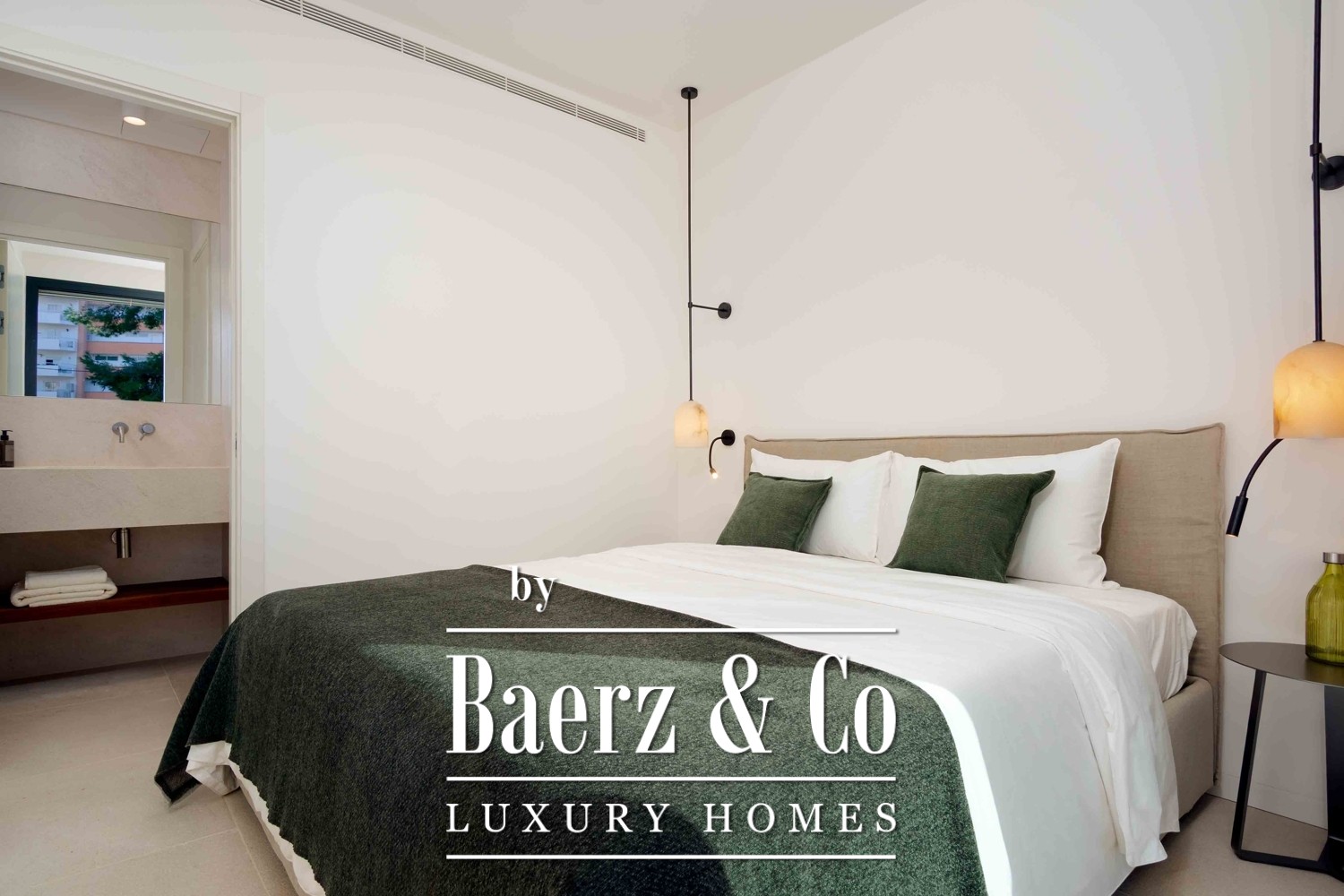 Apartment Palma De Mallorca biedt een sereen mediterraan woonritme in de heuvels van Cala Major. Deze gelijkvloerse woning kenmerkt zich door vloeiende overgangen tussen een verfijnd modern interieur en royale privé buitenruimtes. De open woon- en eetkamer baadt in natuurlijk licht door de kamerhoge raampartijen, waardoor binnen en buiten naadloos in elkaar overlopen. Hier biedt 97 m² doordacht ontwerp ruimte aan twee ruime slaapkamers en twee badkamers, met op maat gemaakte Mallorcaanse houtbewerking en Italiaans meubilair als blikvangers.