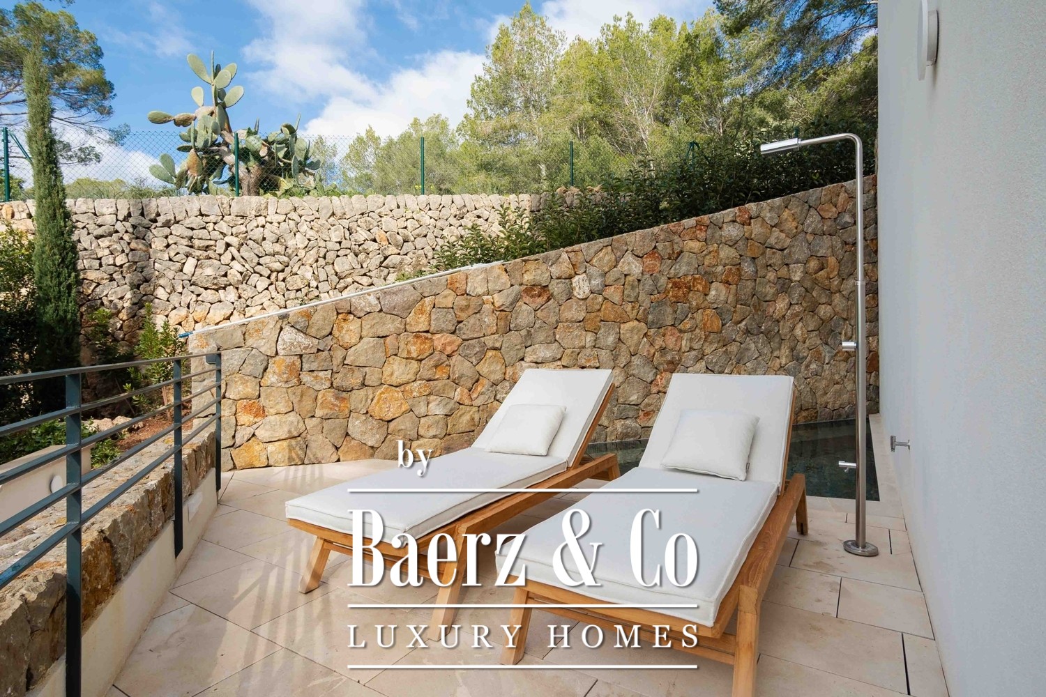 De keuken is uitgerust met Miele-apparatuur en combineert prestaties met elegantie. Het leefcomfort wordt verhoogd door vloerverwarming, airconditioning en dubbele beglazing, terwijl LG-entertainment en Bang & Olufsen audio dagelijks gemak en sfeer creëren. Het hoofdterras grenst aan de woonkamer en beschikt over een privézwembad voor zonnige middagen en samenkomsten. Een tweede terras met volledige buitenkeuken en lounge verlengt het buitenleven. De privé tuin versterkt het gevoel van geborgenheid en groene rust.