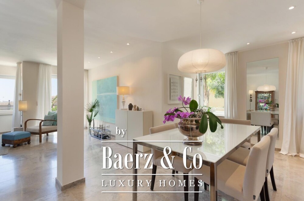 Villa Palma met ETV-vergunning biedt een architectonisch verfijnde woning in Son Roqueta, op slechts enkele minuten van het centrum van Palma en de gerenommeerde golfbanen van Son Vida. Het object combineert een volledig gerenoveerde villa in Bauhaus-stijl van 285 m² met een discrete tweede woning, waarin zich twee moderne gastenappartementen bevinden van in totaal 149 m², beide voorzien van een vergunning voor vakantieverhuur.