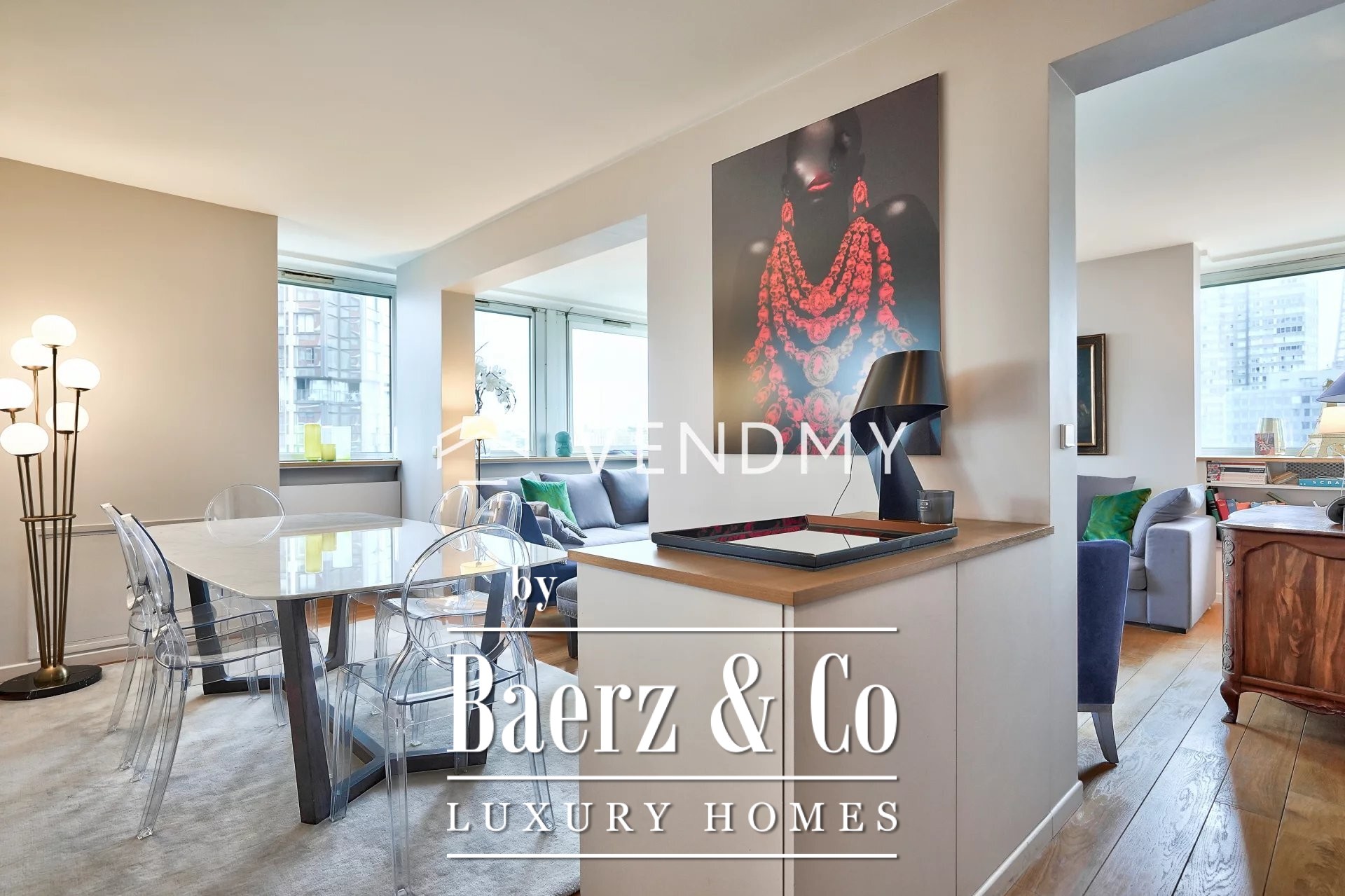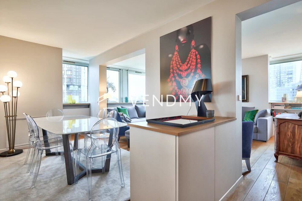 Appartement Paris 15ème staat voor een beheerste levensstijl op een hoge etage van een elegant gebouw met permanente conciërge. Deze residentie van 95 m² omlijst zeldzame panorama’s over de Seine en de Eiffeltoren; de doordacht samengestelde interieurs zijn het werk van een interieurarchitect. Betreed een markante hal, die naadloos overgaat in een royale dubbele woonkamer, waar licht naar de ramen trekt en de mogelijkheid voor een derde slaapkamer subtiel aanwezig blijft. De aparte volledig uitgeruste keuken, met optie tot open verbinding, vormt een flexibele uitbreiding van de sociale leefruimte.