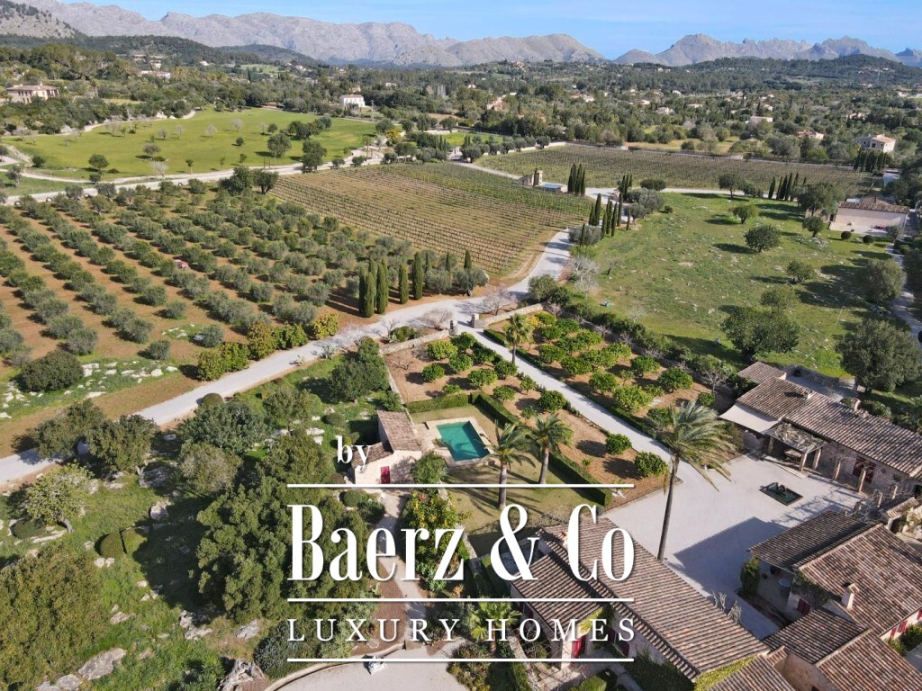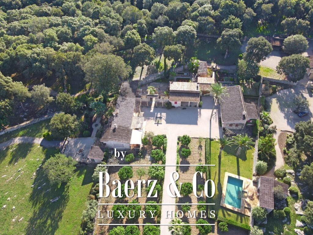 Landgoed te koop in Pollença, een uitzonderlijk toevluchtsoord op 172.483 m² rustiek Mallorquijns landschap, waar volledige privacy en weidse bergzichten samenkomen. Het hoofdgebouw beslaat 1.307 m² en omvat drie zelfstandige bungalows, verbonden door veranda’s, terrassen en aangelegde tuinen. Deze gastenverblijven, zo’n twintig jaar geleden gebouwd, zijn zorgvuldig onderhouden en harmonieus gekoppeld door uitnodigende buitenruimtes.