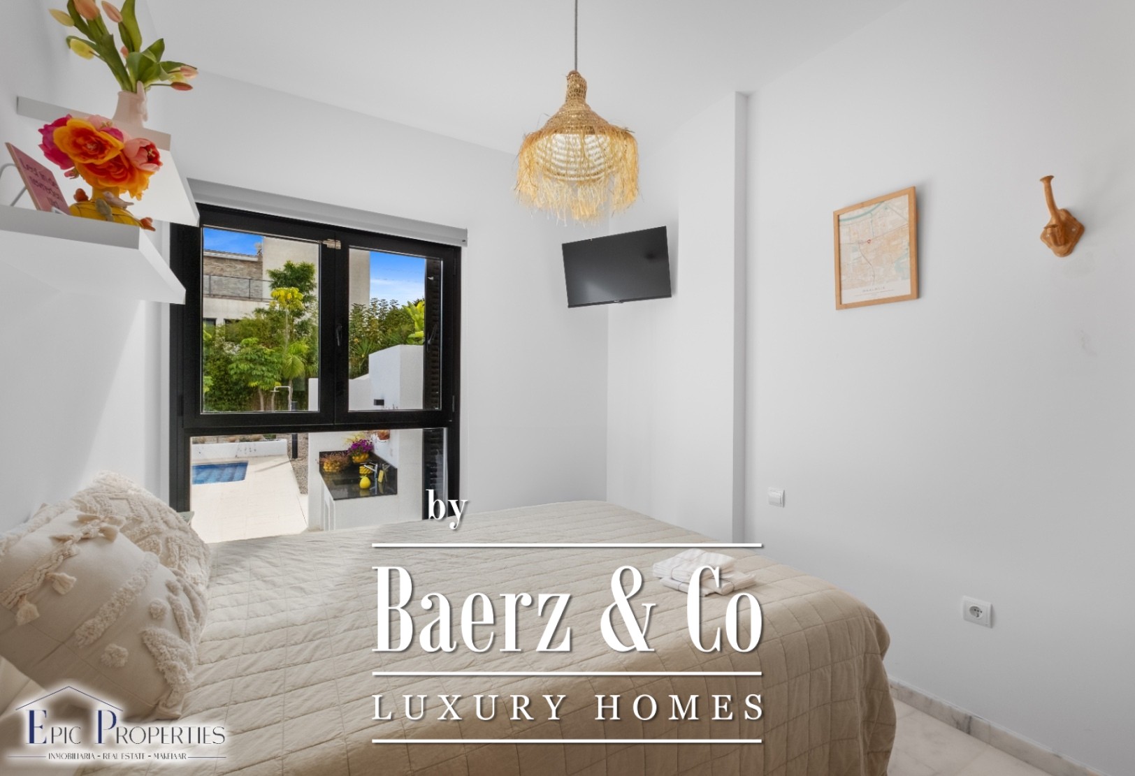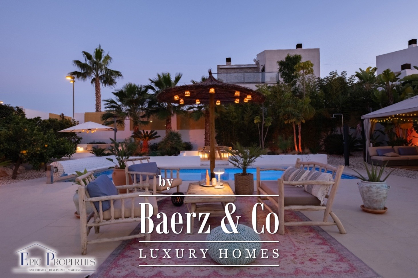 Charmante villa gelegen in een rustige woonwijk. Deze woning biedt een lichte en ruime sfeer met hoge plafonds en marmeren vloeren in het hele huis. De woning, met een oppervlakte van 114 m², is gebouwd op één verdieping op een perceel van 820 m² en beschikt over 3 slaapkamers en 2 badkamers. De master bedroom heeft een eigen badkamer en inloopkast, terwijl de andere slaapkamers zijn voorzien van inbouwkasten.