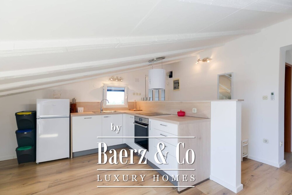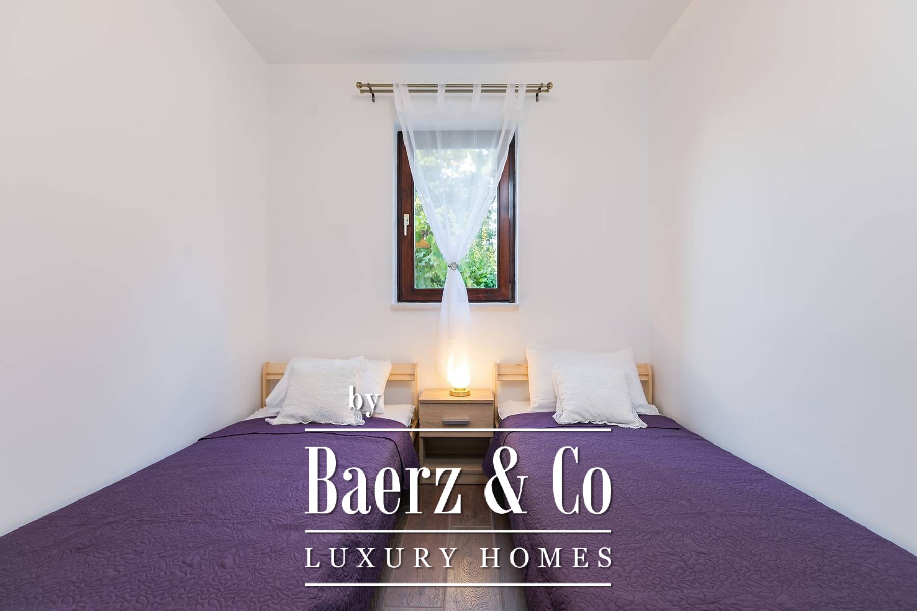 Moderne comfortvoorzieningen als warmtepompen, airconditioning en traditionele kachels op vaste brandstof zijn aanwezig. Er zijn drie parkeerplaatsen, een kinder(speel)plaats in afrondende fase en de ligging nabij voorzieningen—op 2 km van winkels en 3 km van scholen en andere services—zorgt voor praktisch gemak. Dit townhouse in Poreč biedt een evenwichtige leefomgeving voor grote gezinnen of wie op zoek is naar een verfijnde uitvalsbasis met bewezen verhuurpotentie, allemaal met uitzicht op de Adriatische horizon.