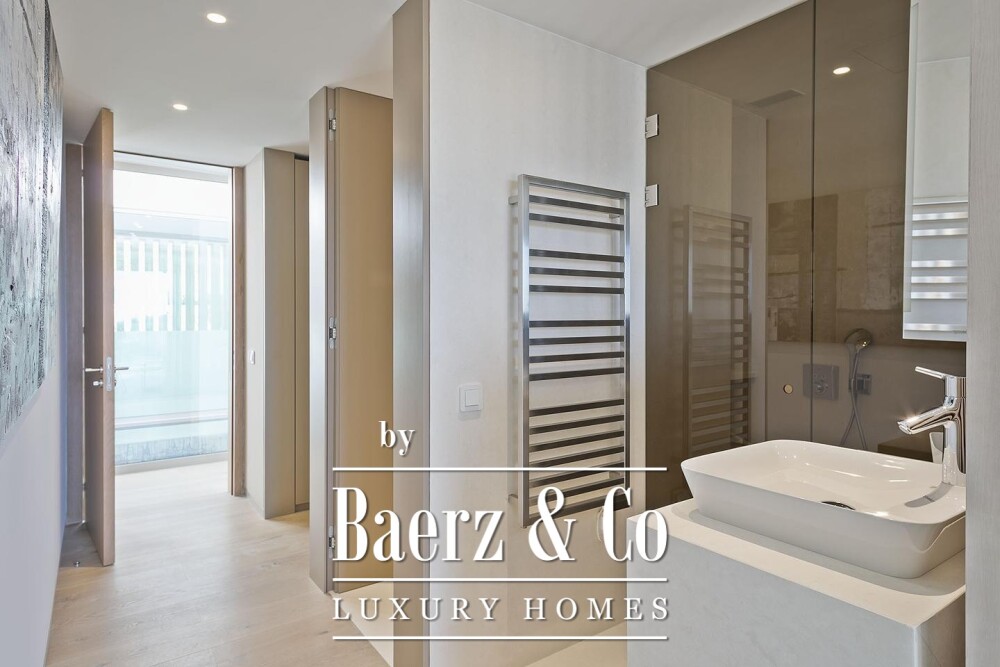 De villa is gerealiseerd met hoogwaardige materialen en biedt vloerverwarming, airconditioning via warmtepomp en zonnepanelen voor comfort het hele jaar door. Elektrische rolluiken, twee privéparkeerplaatsen in de garage en slimme domotica vervolmaken het geheel. Gemeenschappelijke voorzieningen zijn onder meer een royaal zwembad, fitness, wellness, clubhuis en een toegewijde conciërgeservice.
