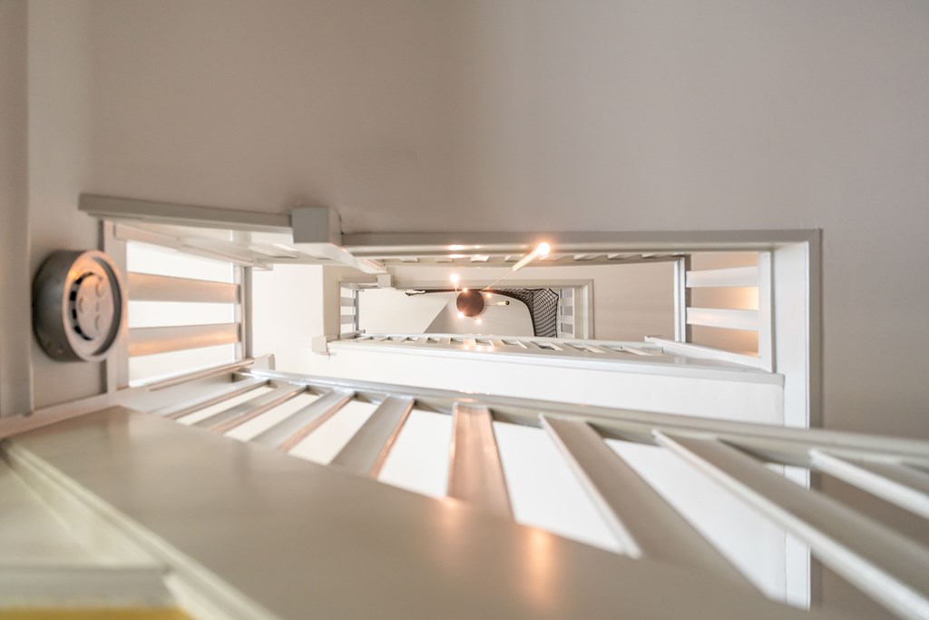 Wanneer u vanuit de hal naar de eerste verdieping gaat, komt u uit bij de indrukwekkende trap die als een rode draad door het huis loopt. Deze statige trap, een blikvanger in de woning, leidt u naar de bovenverdieping.
