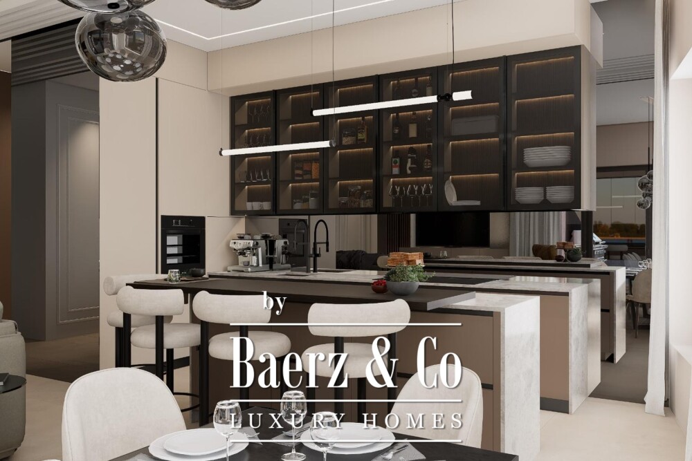 De master suite beschikt over een en-suite badkamer, een ruime inloopkast en directe toegang tot een privéterras. De overige slaapkamers hebben eveneens direct toegang tot het terras en profiteren van een fraai ontworpen gastbadkamer. Elk element getuigt van ambacht en aandacht: hoge energie-efficiëntie, aluminium kozijnen, hef-schuifdeuren, slimme woningautomatisering en standaard vloerverwarming. De vloerafwerking bestaat uit drielaags eiken parket en grootformaat tegels, terwijl natuurstenen accenten de trappen markeren. Badkamers zijn voorzien van hoogwaardige sanitaire installaties en inloopdouches, aangevuld met geavanceerde beveiligingssystemen.