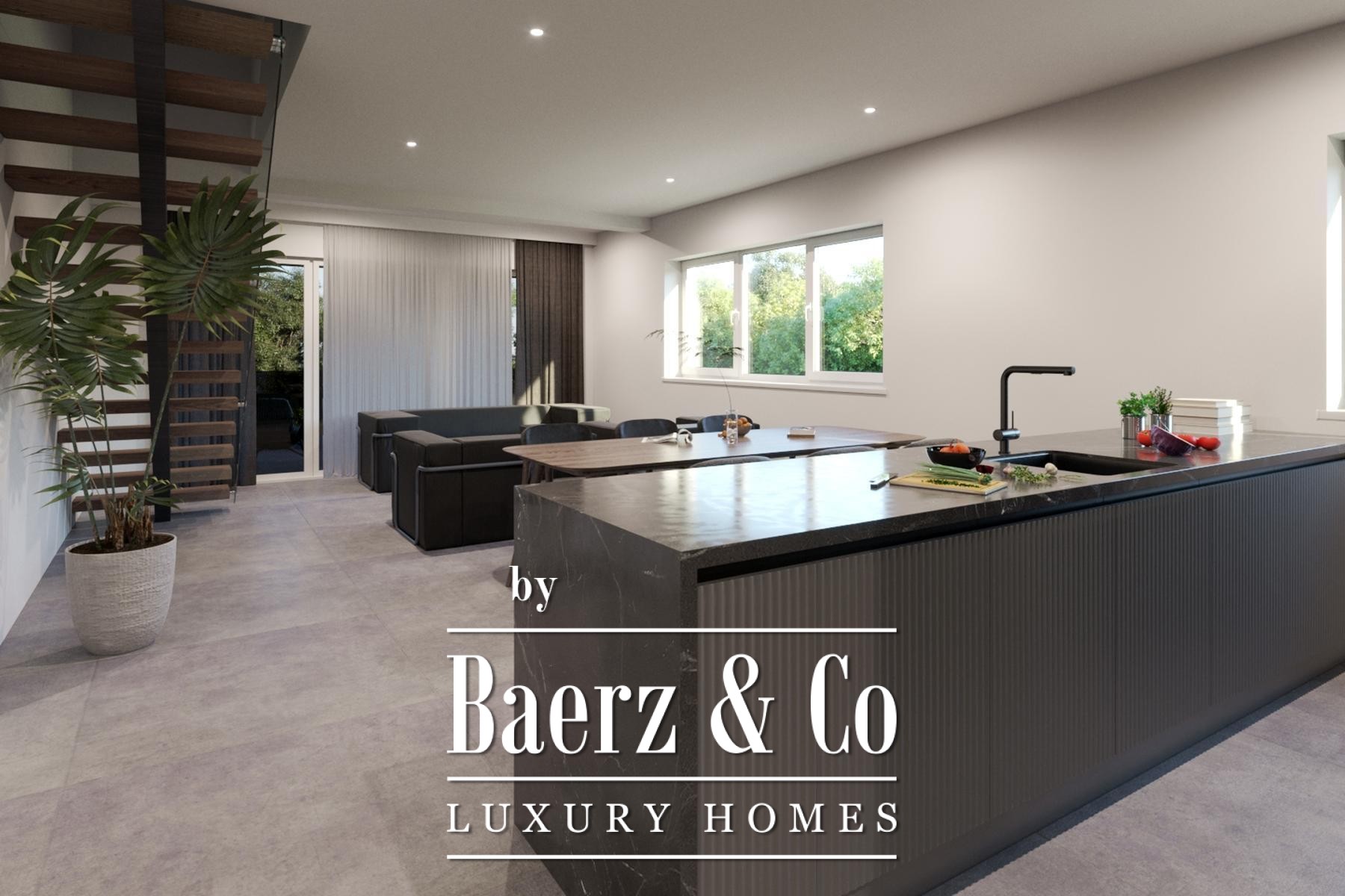 De eerste verdieping opent met een entreehal en leidt naar een lichte leefruimte, voorzien van een open keuken en eetgedeelte met directe toegang tot een balkon. Twee slaapkamers op deze verdieping beschikken elk over een eigen badkamer, aangevuld met een gastentoilet en een aparte wasruimte. De bovenverdieping biedt nog twee slaapkamers, een badkamer en een multifunctionele ruimte geschikt voor recreatie, samen met een ruim terras voor buitenmomenten.