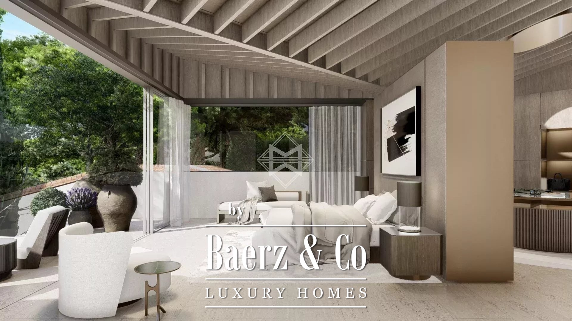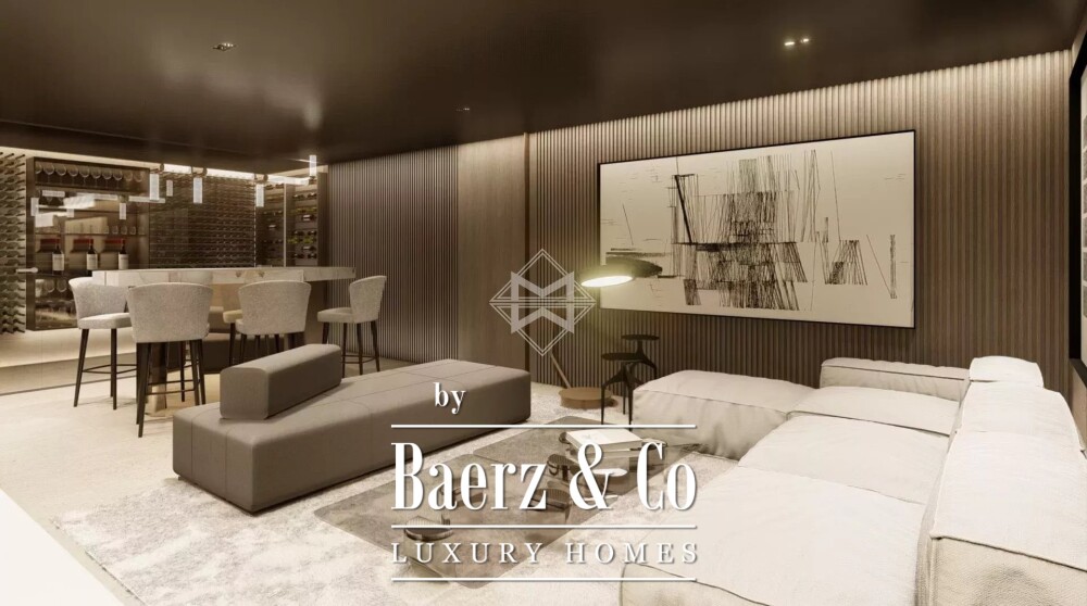 Op de verdieping biedt de master suite uitzicht op zee en beschikt over een inloopkast, badkamer, fitnessruimte en spa. Het souterrain is volledig gericht op ontspanning en vermaak: met een bioscoopzaal, wijnbar en dansvloer, een wellnessruimte met sauna, hammam, koud dompelbad, massageruimte en een royale wasruimte.