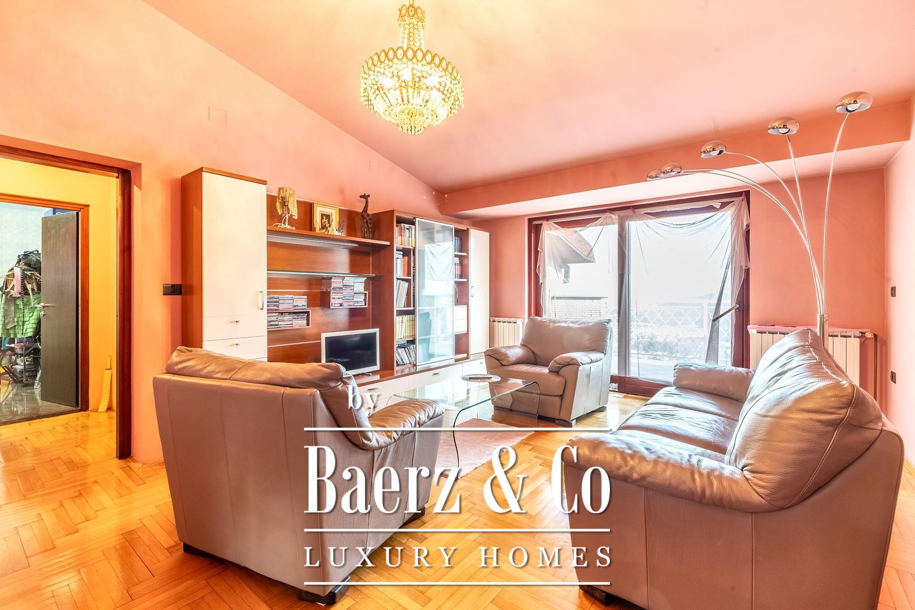 Familiehuis Samobor bevindt zich op een indrukwekkend perceel van 6.985 m², uitzonderlijk gesitueerd met panoramisch uitzicht op de stad. Deze royale woning, met 553 m² woonoppervlak verspreid over drie niveaus, is gebouwd in 2000 en zorgvuldig verbonden met een interne trap waardoor de indeling een harmonieus geheel vormt.