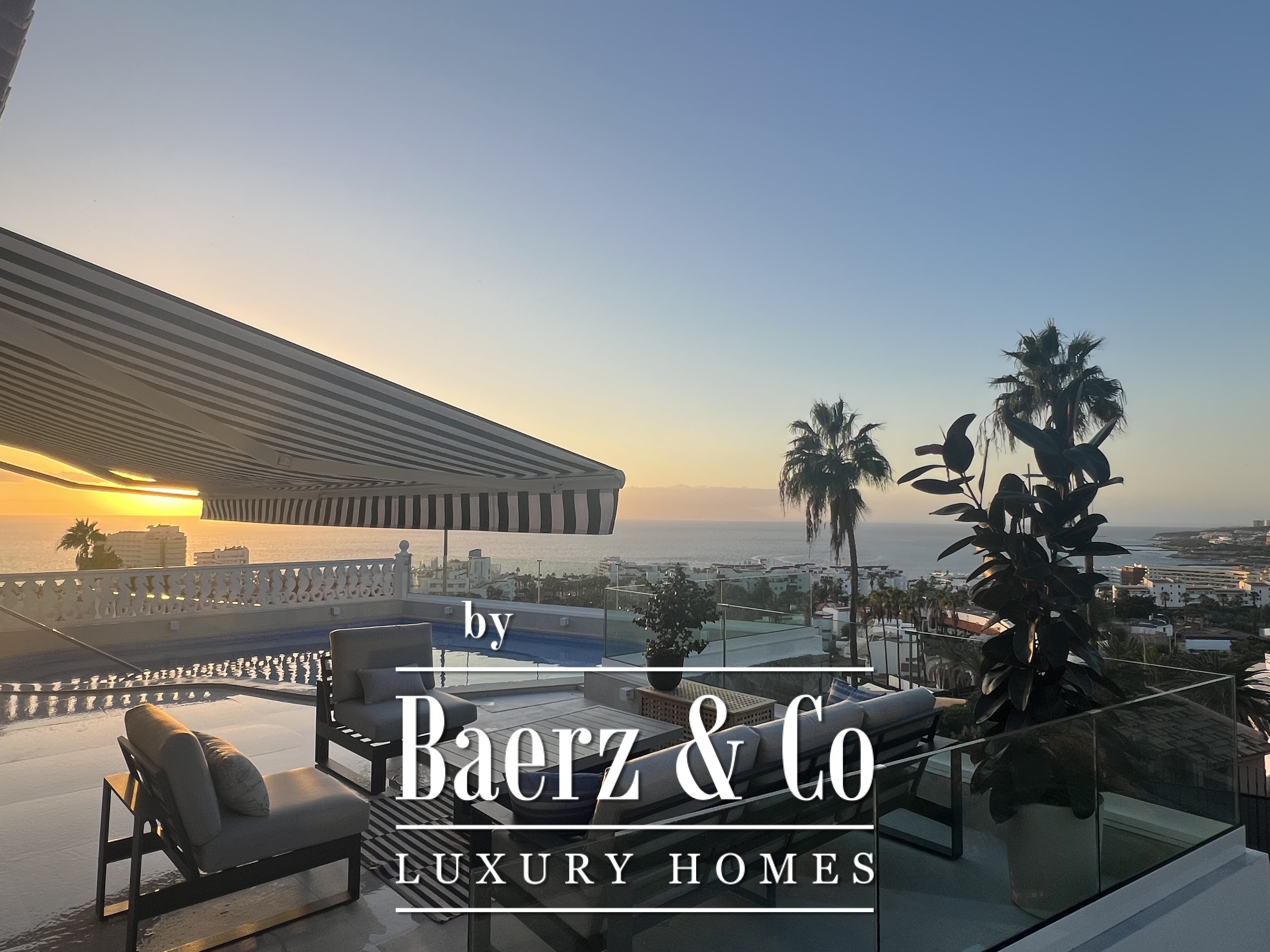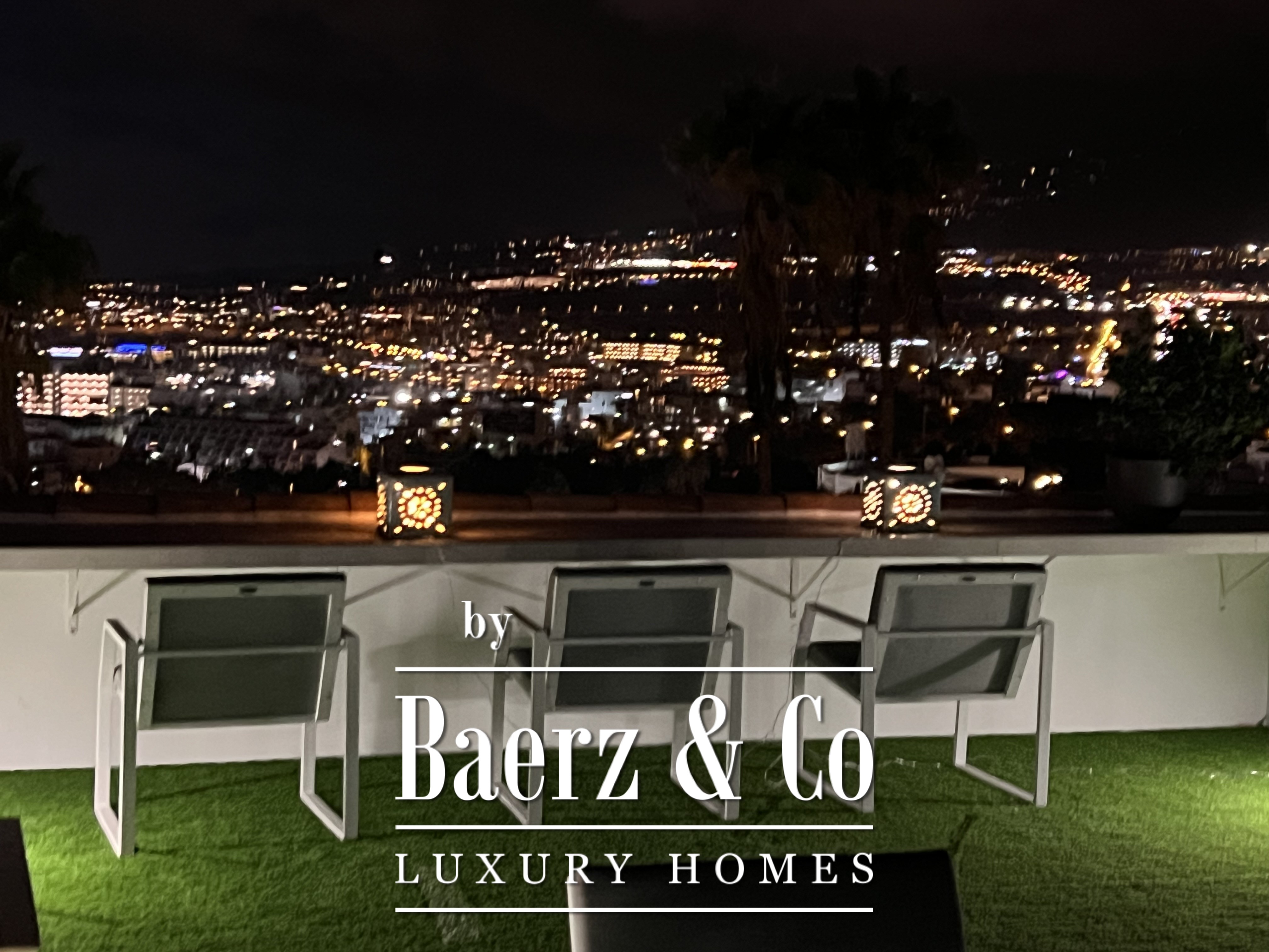 In de geliefde urbanisatie San Eugenio vind je deze ruime en lichte woning met 2 verdiepingen, waarbij de belangrijkste leefruimte en slaapkamers allemaal op één niveau liggen. Er zijn 3 ruime slaapkamers, waarvan één met toegang tot een overdekt terras aan de voorzijde van de villa, 3 badkamers en 1 gastentoilet. De woonkamer is zeer groot en komt uit op het grote terras van 144 m2 met privézwembad en prachtig uitzicht op de oceaan, het eiland La Gomera en de kustlijn.