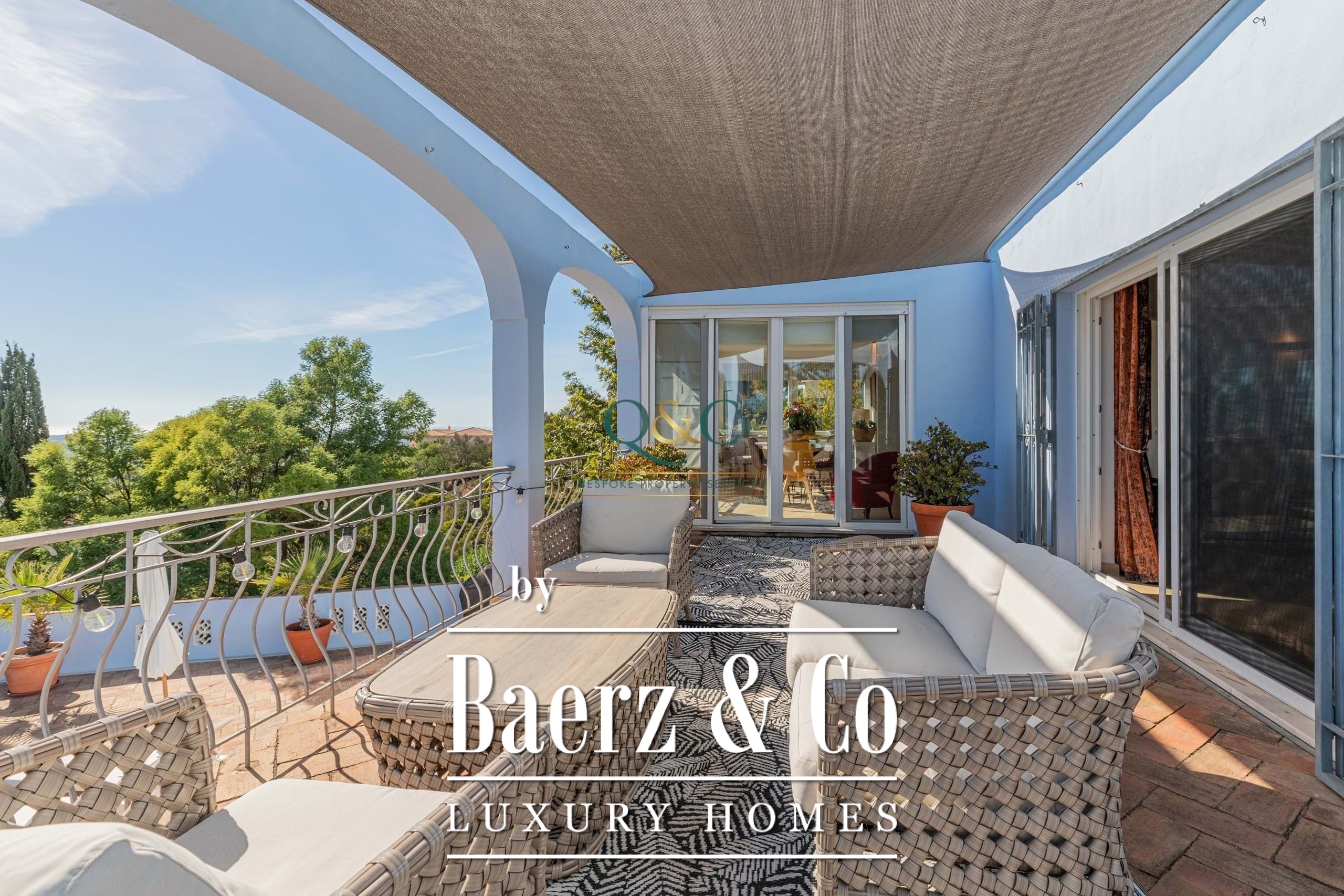 Twee ruime slaapkamers, elk met vernieuwde badkamer, bieden privacy en vrij uitzicht. De master suite opent rechtstreeks naar het terras, terwijl de tweede suite beschikt over een eigen balkon. Daarnaast is er een geïsoleerde houten studio, momenteel ingericht als muziekruimte, die flexibel te gebruiken is, evenals een zelfstandig appartement met eigen keuken en terras, ideaal voor gasten of als verhuurpotentieel.