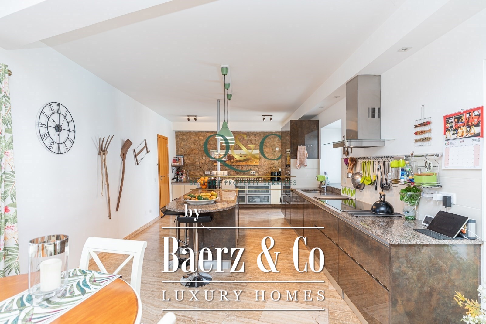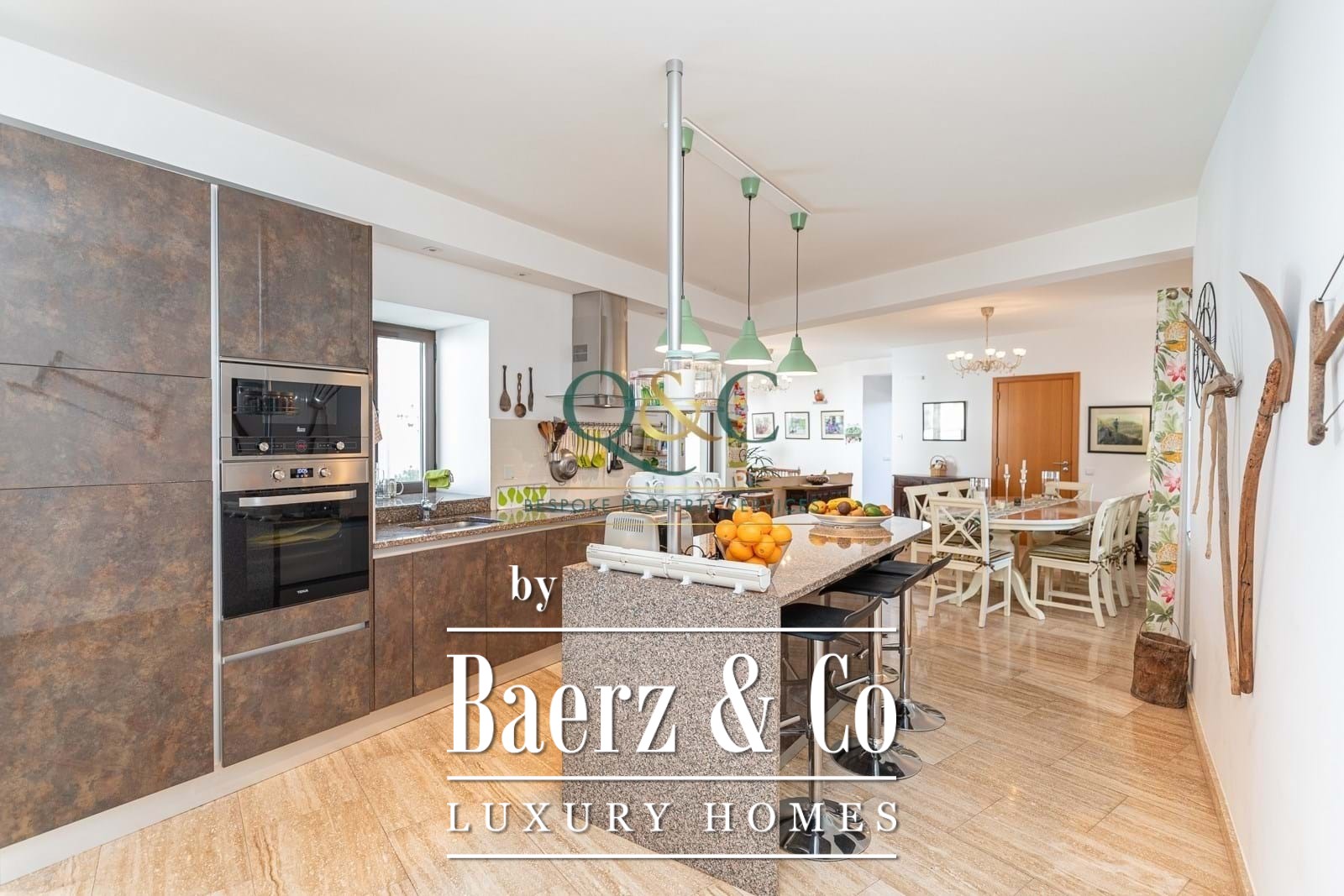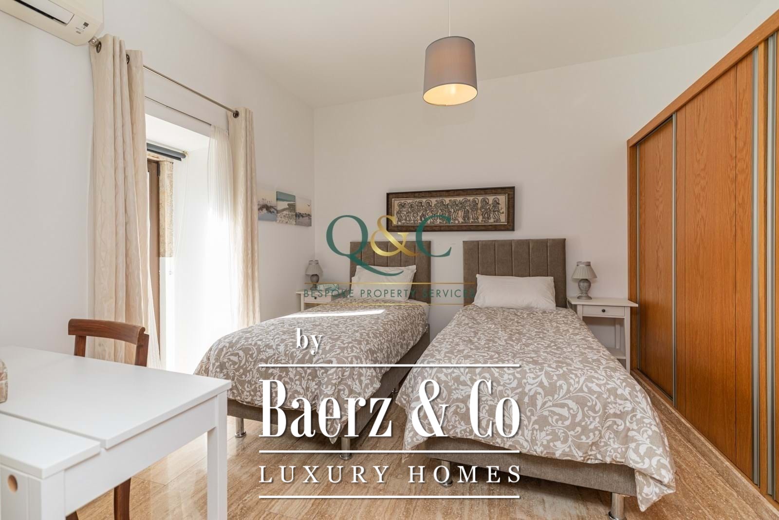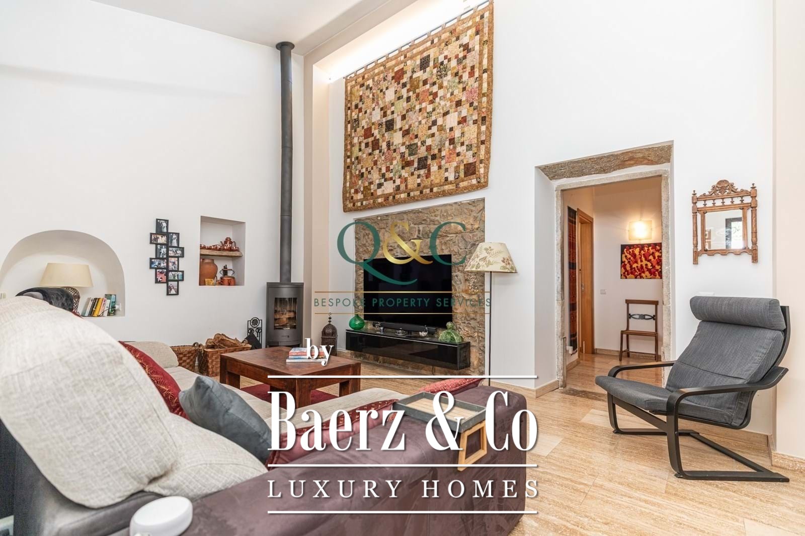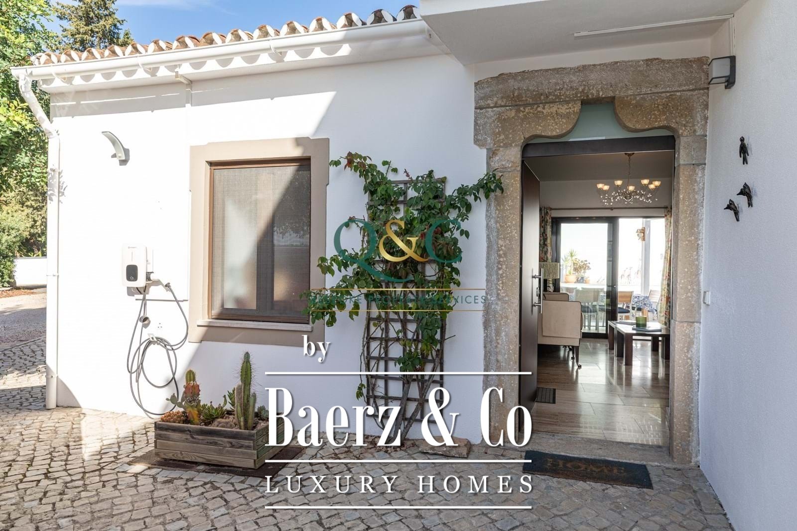 Een calçada-oprit markeert de entree van het landgoed en leidt naar een royale garage en praktische bijkeuken, rechtstreeks verbonden met het hart van de woning: de volledig uitgeruste keuken en eetruimte. De ontvangstruimte baadt in het licht en biedt uitzicht op de tuin, en loopt moeiteloos door naar de woon- en entertainmentruimtes. De hoofdsuite, gelegen aan twee zijden van de tuin, beschikt over een en-suite badkamer met vrijstaand bad en inloopdouche, en vormt zo een exclusieve privévertrek binnen het huis. Alle vier slaapkamers hebben een eigen badkamer; één van de kamers beschikt over een vide die ideaal is als werk- of ontspanningsruimte, met toegang tot een beschut dakterras.