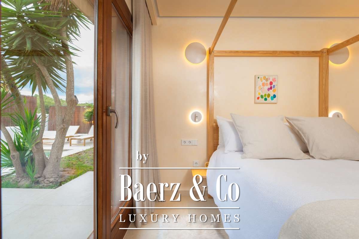 is praktisch ingedeeld en sluit subtiel aan op de leefruimte. Beide slaapkamers bieden rust en privacy, terwijl de badkamers zijn uitgevoerd met hoogwaardige materialen en een verfijnde afwerking. Elk element is zorgvuldig gekozen – design en comfort gaan hier hand in hand.De buitenruimtes Het buitengedeelte van 72 m² maakt deze woning echt bijzonder. Er is een ruime terras met een stijlvolle loungehoek en een eettafel – perfect voor lange avonden van buiten dineren. Het grote privézwembad is een absoluut hoogtepunt: ideaal om af te koelen op warme dagen. Dit is een plek die gemaakt is voor het buitenleven: ontspannen ontbijten in de ochtend, een goed glas wijn in de namiddag, en zwoele zomeravonden met vrienden onder de sterren.Dit appartement is ideaal voor wie op zoek is naar kwaliteit, comfort en een zorgeloos thuis op Ibiza. Een zeldzame kans in het hart van Santa Gertrudis. We nodigen u graag uit voor een bezichtiging zodat u zelf kunt ervaren hoe bijzonder deze plek is.