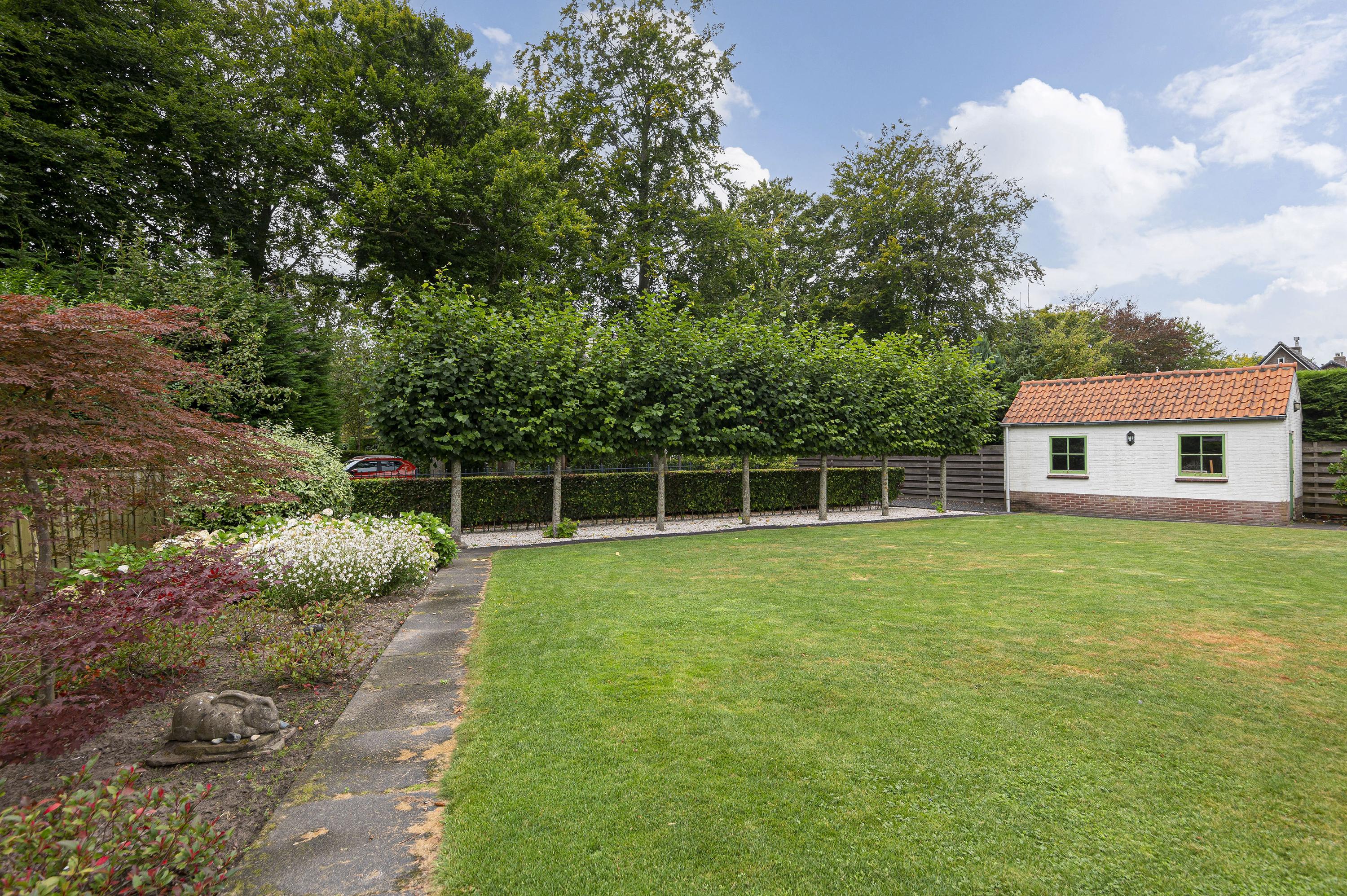 Fraai aangelegde tuin met twee oprijlanen, meerdere terrassen en biedt aan zee aan speelruimte voor de kinderen. De garage heeft een apart toilet en biedt genoeg ruimte voor de auto. Daarnaast is er nog een extra garage aan de achterzijde gelegen, welke een oppervlakte heeft van ca 16m².