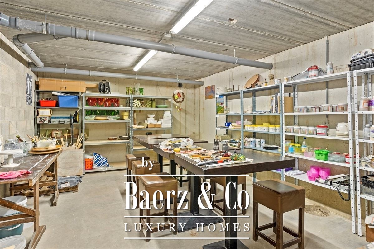 Bij aankomst leidt een aangelegde oprit naar een eigendom met garage, carport en een kelderniveau van 182 m², wat uitnodigt tot creatieve en recreatieve mogelijkheden. Via de automatische garage of carport betreedt u een privéhal die met lift en trap verbonden is aan de elegant ingerichte leefruimtes erboven.