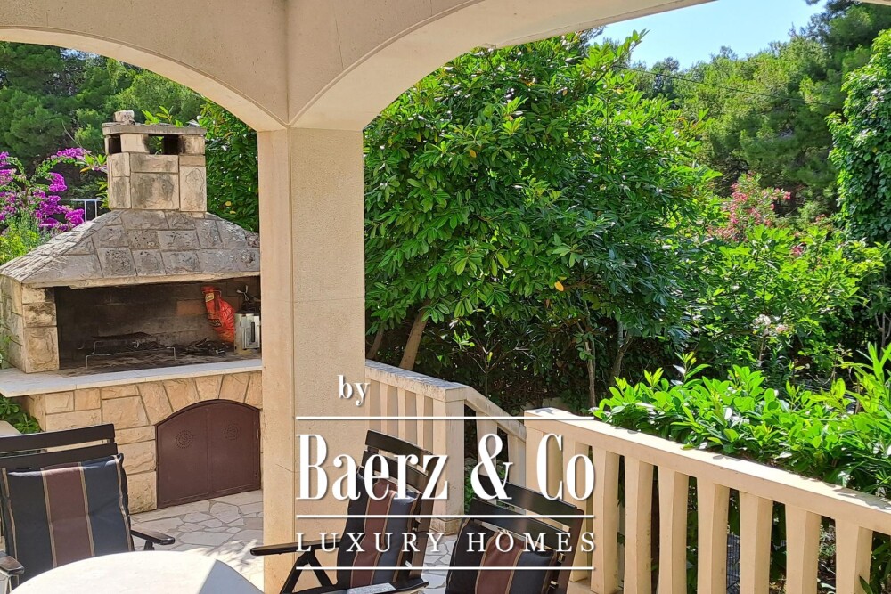 De woning wordt volledig gemeubileerd en uitgerust opgeleverd, van huishoudelijke apparatuur tot servies. De gevels en geplaveide buitenruimten zijn vervaardigd met lokaal wit Brač-steen, een materiaal dat kenmerkend is voor het zachte en duurzame karakter van het eiland. In de tuin staan fruitbomen — mandarijn, citroen, vijg en olijf — die een gevoel van rust en afzondering geven, aangevuld met een solarium en een buitenzit met stenen tafel en barbecueoven. Het onderhoud door het hele pand is uitstekend, waardoor direct woongenot zonder extra investering is gewaarborgd.