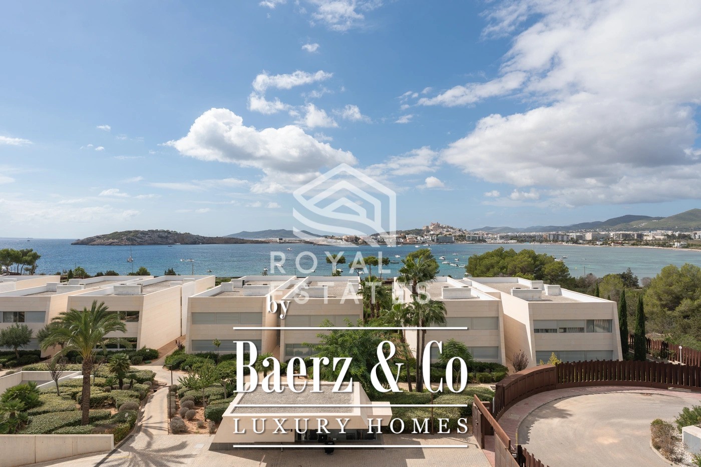 rooftop terrace, featuring a private swimming pool and a large solarium area. From here, the panoramic views stretch across the shimmering waters of Talamanca Bay to the iconic skyline of Ibiza Town. This is the perfect setting for entertaining, sunbathing, or simply enjoying the tranquil rhythm of the island. The property also includes a 30 m2 storage room and two private parking spaces in the underground garage, offering both practicality and security. Residents of Es Pouet enjoy access to exceptional communal facilities, including a large designer swimming pool surrounded by landscaped gardens, 24-hour security, and direct access to the seafront promenade. The development is known for its architectural quality and serene ambiance, attracting discerning international buyers seeking both comfort and exclusivity. Its prime location offers the best of both worlds: a peaceful coastal setting within walking distance of Talamanca Beach, stylish restaurants, and the vibrant energy of Marina Botafoch. Nearby hotspots such as Nobu Hotel, Destino, and L\u00edo are just a short drive away, while the airport can be reached in under twenty minutes. This penthouse in Es Pouet is more than a home it is a statement of refined living, combining space, design, and panoramic beauty in one of the most desirable areas of Ibiza. A rare opportunity to own a piece of architectural elegance with direct sea views and the finest amenities the island has to offer. For more information or to arrange a private viewing, contact us today.