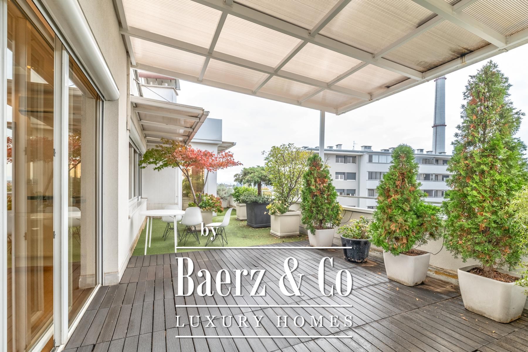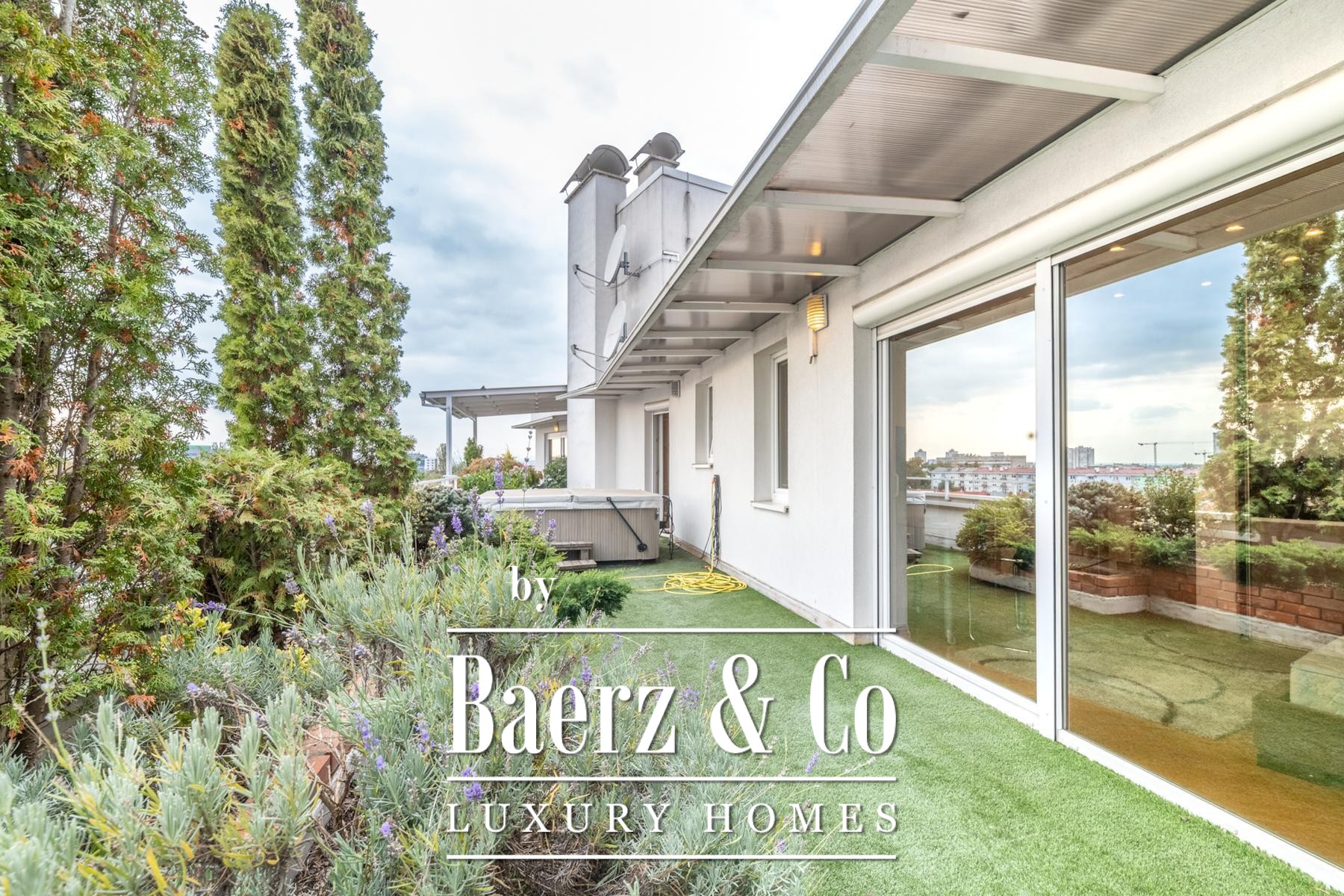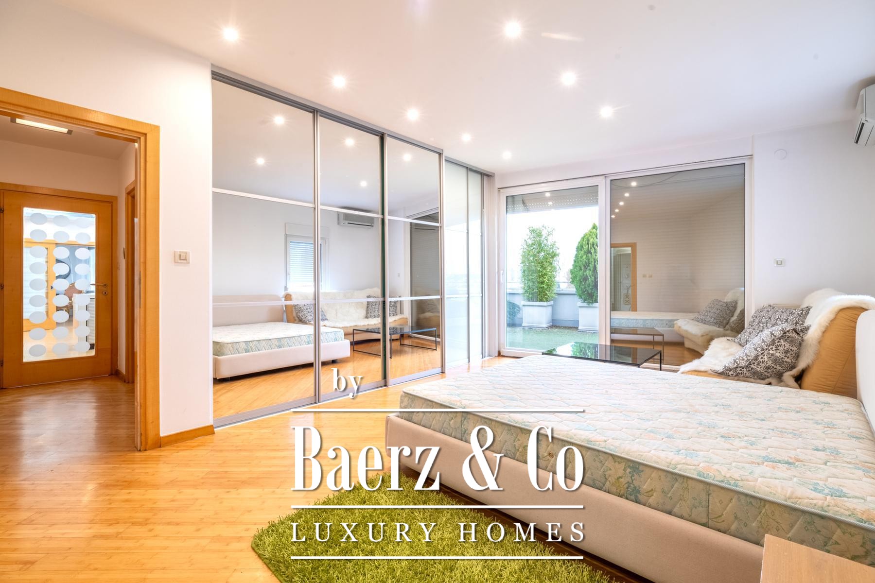 Penthouse Trešnjevka - Sjever is een zeldzaam aanbod in een van de meest gewilde woonwijken van Zagreb. Dit penthouse van 356 m² beslaat de volledige zesde verdieping van een modern gebouw uit 2006. Met een lift die direct toegang biedt tot de woning en een privégarage van 40 m² voor twee auto's is aan comfort geen gebrek.