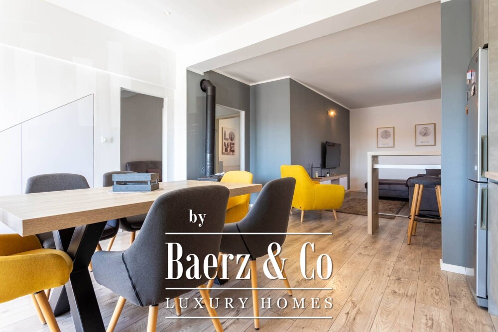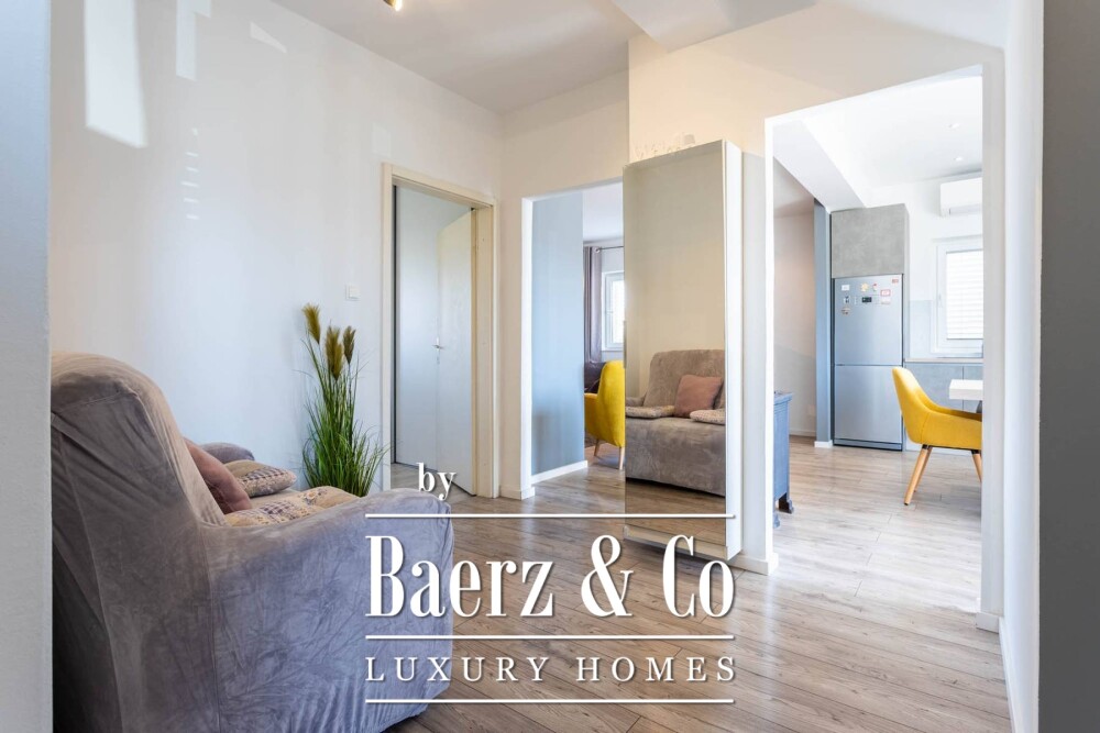 De begane grond biedt een recent gerenoveerd appartement met een lichte woon- en eetruimte, moderne keuken, twee slaapkamers en een badkamer. Via de trap bereikt u het tweede appartement, verdeeld over twee verdiepingen, met een royale woonkamer, keuken met eetgedeelte, drie slaapkamers, twee badkamers en terrassen op het zuiden met uitzicht op de Adriatische Zee. Op de bovenste verdieping vindt u een kleinere woonkamer en een extra terras met zeezicht. Het derde appartement, bereikbaar via het terras op de eerste verdieping, beschikt over een glazen terras, een open woon- en eetruimte, keuken, twee slaapkamers en een badkamer. Elke ruimte is ontworpen voor ontspannen mediterraan wonen, met een harmonie tussen privacy en open uitzichten.