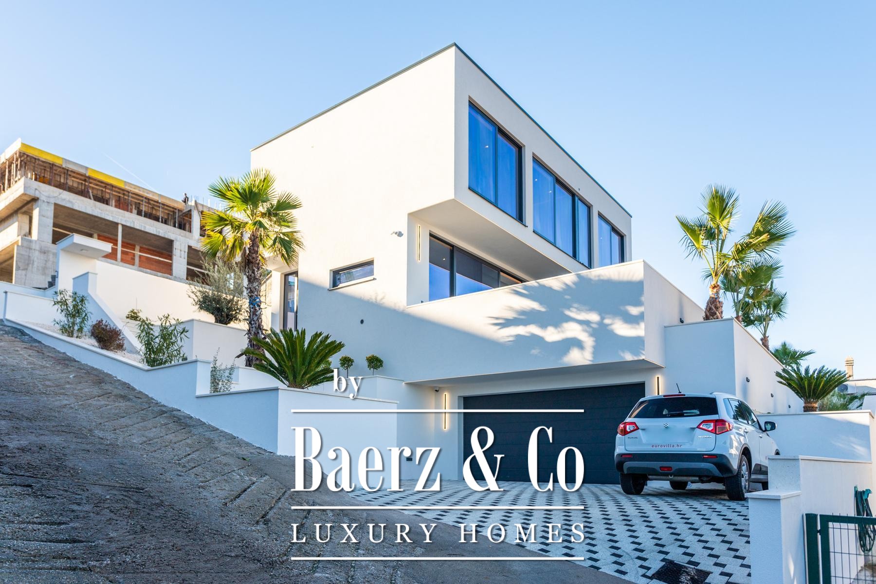 Een gang, gastentoilet met wasfaciliteiten en een multifunctionele kamer—geschikt als kantoor, fitnessruimte of speelkamer—maken de doordachte indeling van het hoofdverdiep compleet. Op de eerste verdieping beschikken drie slaapkamers elk over een en-suite badkamer en volledige beglazing, waardoor er overal een panoramisch uitzicht op de Adriatische Zee is.