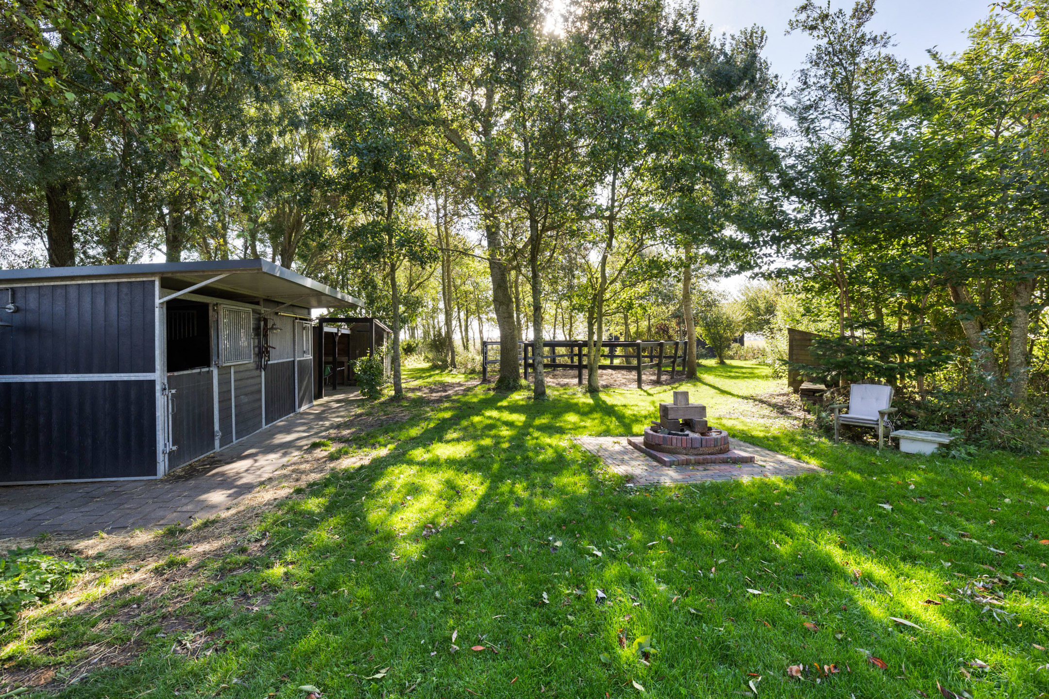 De tuin is speels en fraai aangelegd met wellness-hoek, wandelpaden, boomgaard, terrassen en diverse zithoeken. De bostuin herbergt een paddock en twee paardenboxen met bergruimte en overkapping. Hier woon je in vrijheid, in de natuur en stilte, met de Waddenzee en haar fauna als achtertuin.