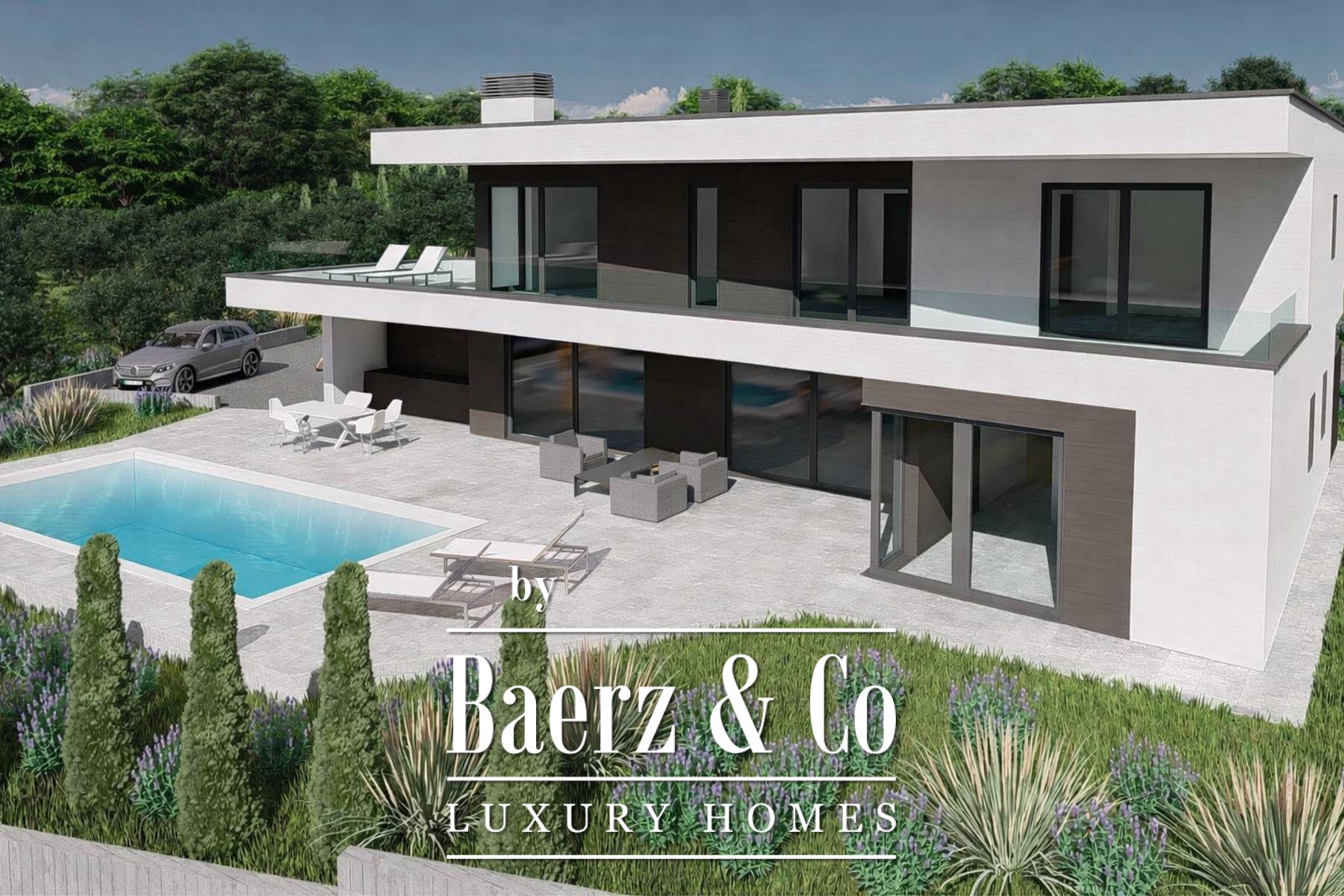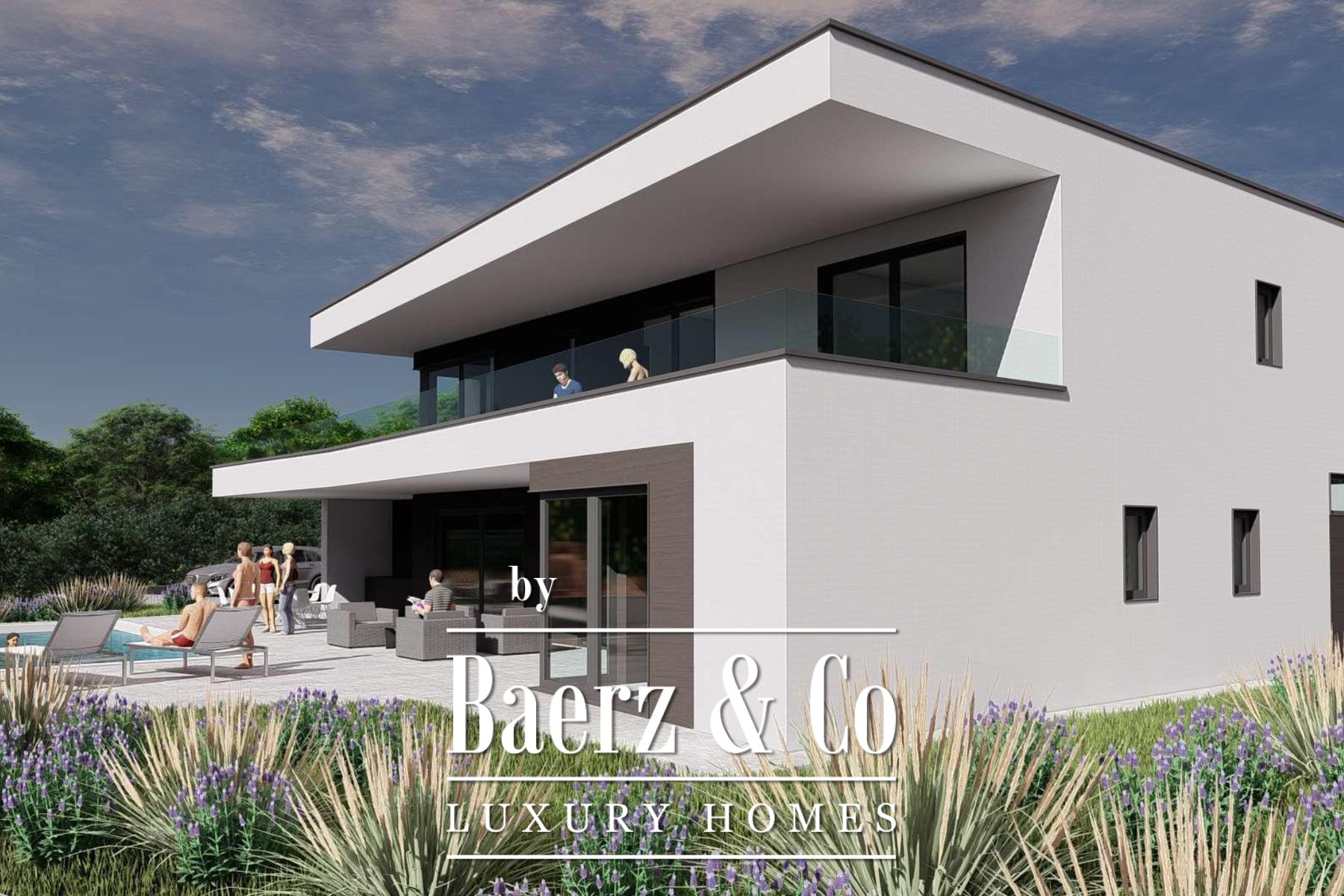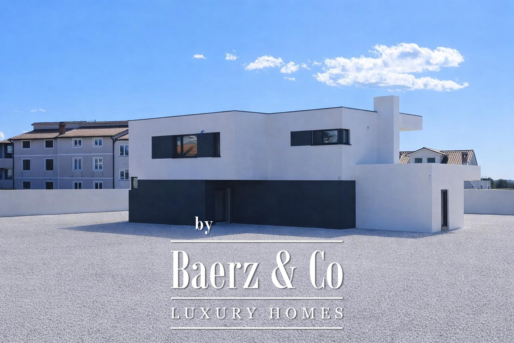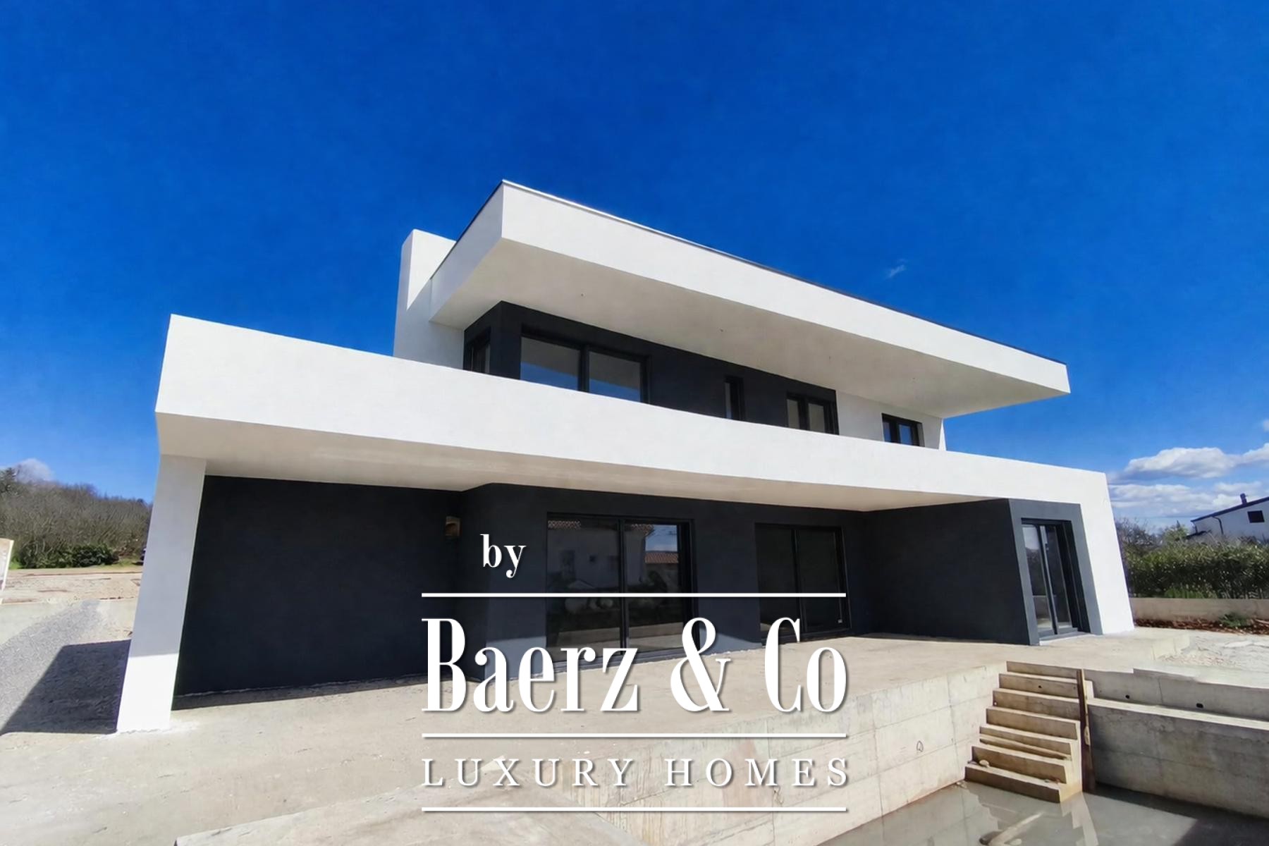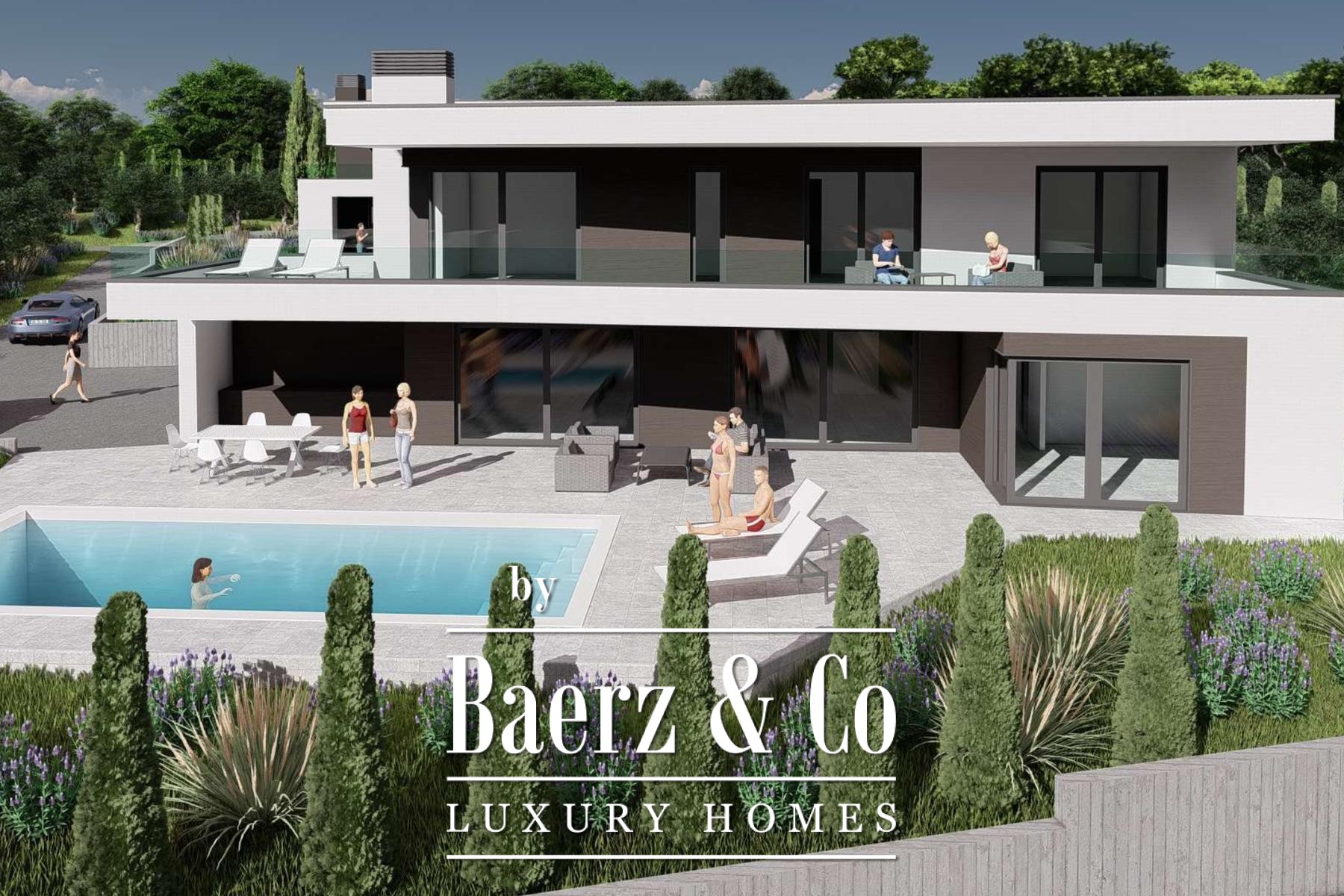 Op de bovenverdieping beschikken drie extra slaapkamers ieder over een eigen terras met vrij zicht op zee en een stijlvol afgewerkte privébadkamer. De bouw kenmerkt zich door eersteklas vakmanschap en geavanceerde technologie, wat staat voor duurzaamheid en comfort. Gelegen in een rustige omgeving op slechts vijf kilometer van zee en het centrum van Umag, combineert de villa privacy met directe toegang tot stedelijke voorzieningen en de kust. Moderne villa Umag staat uitnodigend voor ingetogen luxe, perfect voor verfijnd gezinsleven of prestigieus toeristisch verblijf.
