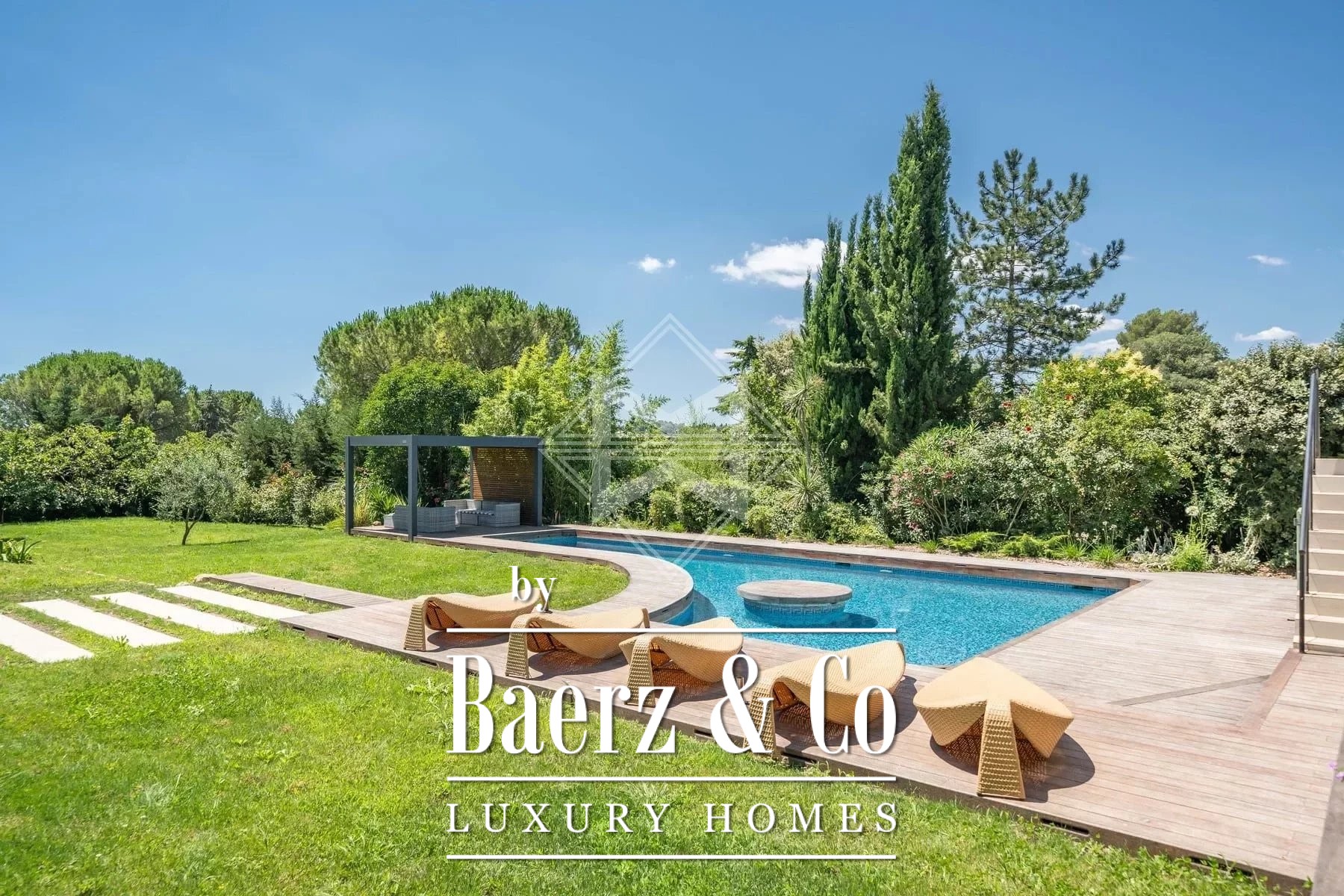 Villa Valbonne met tuin en zwembad verenigt Provençaalse charme en eigentijds comfort op slechts 400 meter van het hart van Valbonne. De recent gerenoveerde woonoppervlakte van 221 m² beschikt over vijf slaapkamers en overvloedig natuurlijk licht in open ruimtes. Dit rustig gelegen pand is optimaal gesitueerd voor zoninval en omgeven door 1.700 m² vlak aangelegde tuin. Volwassenen genieten van de schaduwrijke pergola en de rust rond het zwembad, terwijl kinderen veilig kunnen spelen in de besloten tuin.