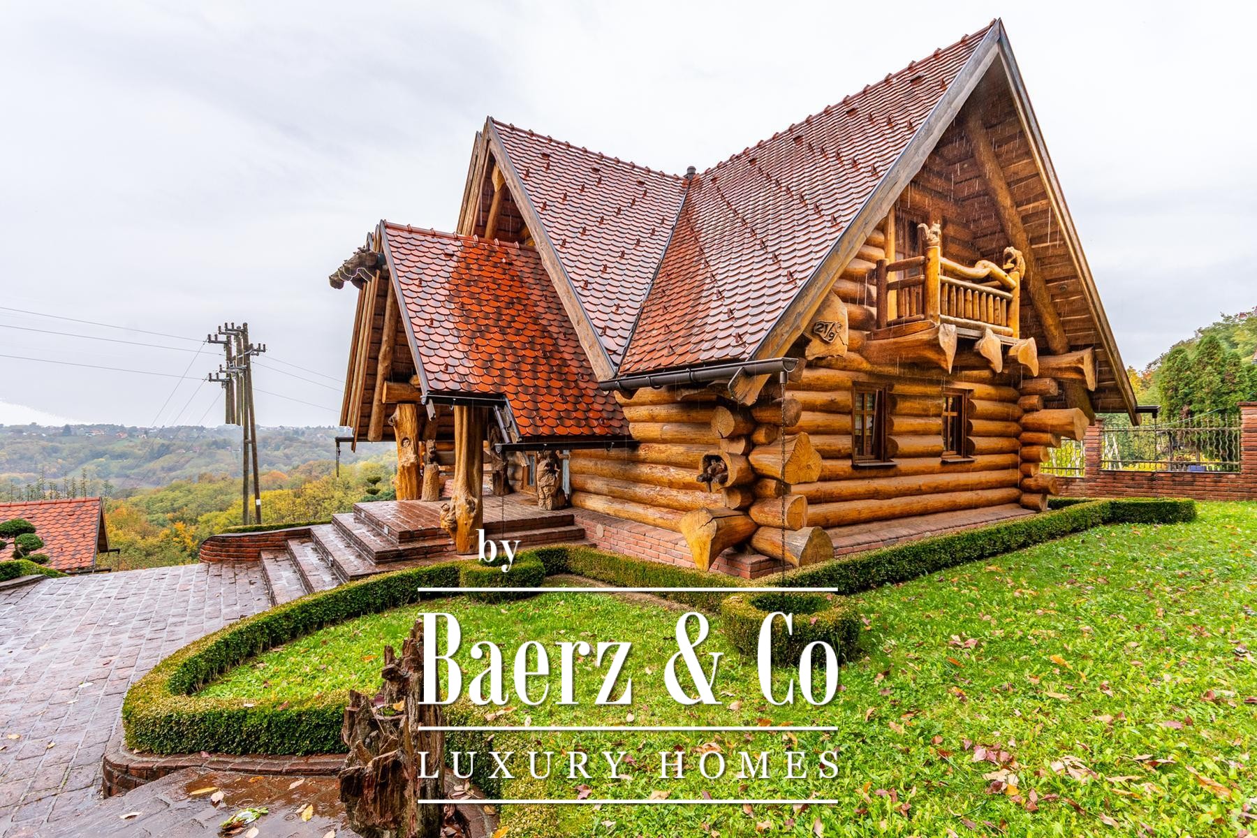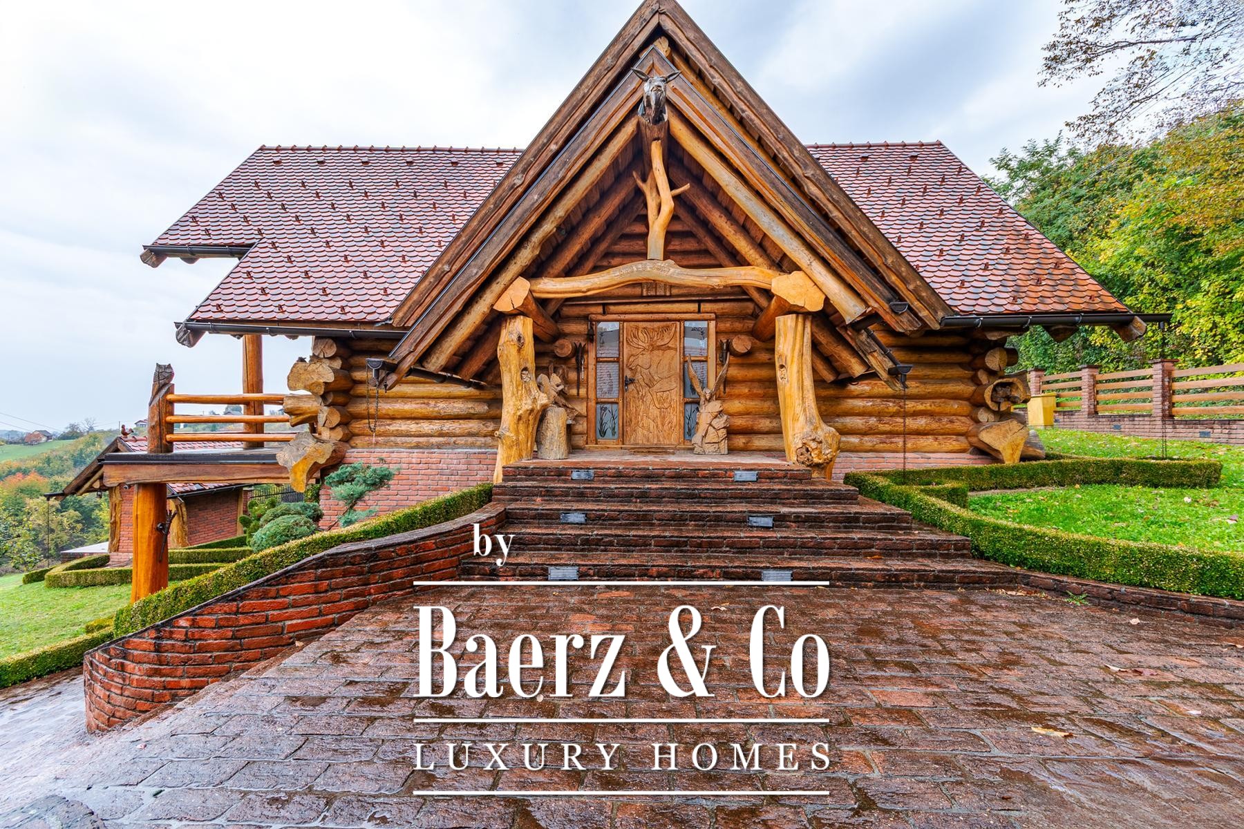 Log House Varaždinske Toplice vormt een ingetogen eerbetoon aan natuurlijke afzondering en doordacht design. Deze blokhut in Varaždinske Toplice biedt 190 m² aan binnenruimte op 3.378 m² eigen grond, omzoomd door bos en wijngaarden. De benadering wordt gekenmerkt door een kalm ritme van aangelegde paden en boomgaarden, waarmee privacy en subtiele elegantie samenkomen.