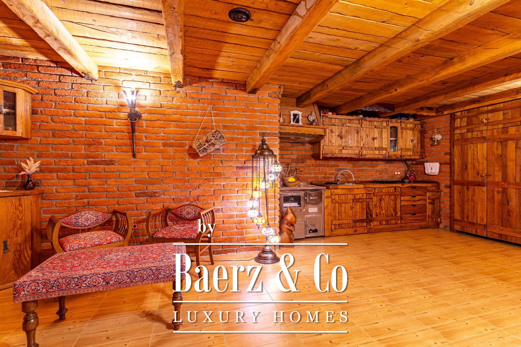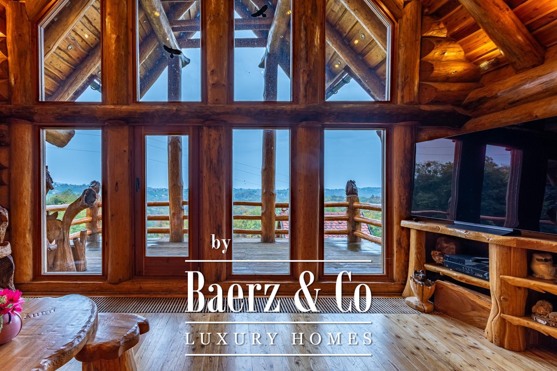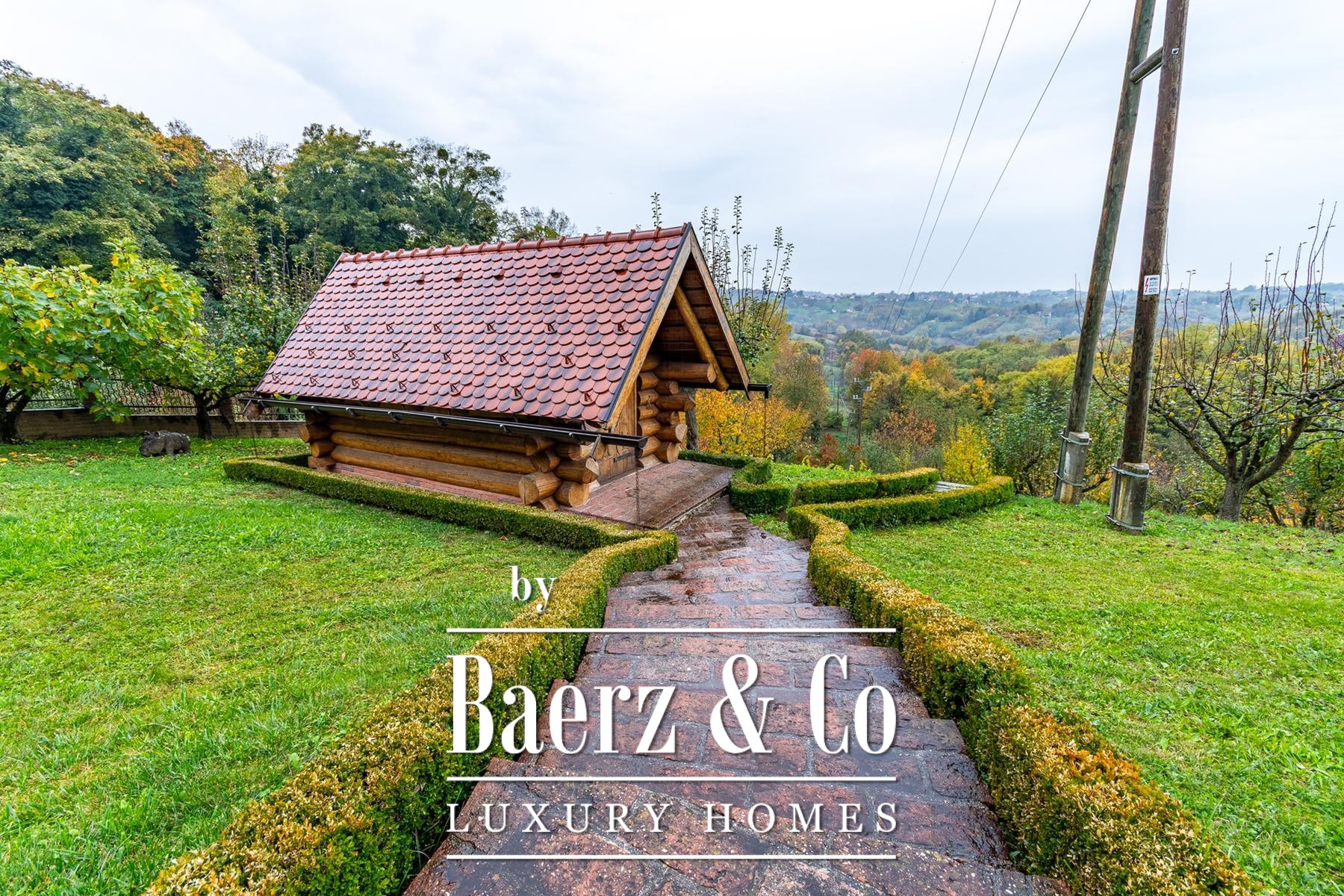 Drie bijgebouwen—een paviljoen, werkplaats en een buitentoilet—onderstrepen het authentieke landelijke karakter. Het zorgvuldig aangelegde perceel met appel-, pruimen-, vijgen-, aronia- en frambozenbomen biedt ruimte voor bezinning en rust. Panoramische vergezichten en diepe privacy creëren een unieke sfeer. Dit is niet eenvoudigweg een blokhut te koop in Varaždinske Toplice, maar een weloverwogen toevluchtsoord geworteld in locatie en materiaal.