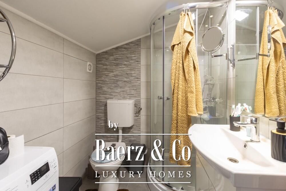 De tweede verdieping omvat twee duplex-appartementen, beide voorzien van een woonkamer, keuken, eetgedeelte, slaapkamer, badkamer en terras op het eerste niveau, gevolgd door een extra slaapkamer en badkamer erboven. In totaal zijn er negen slaapkamers en negen badkamers aanwezig, ondersteund door ruime parkeergelegenheid in de tuin. Binnen- en buitenthermische isolatie waarborgen het gehele jaar door comfort, wat getuigt van doordachte bouwkwaliteit. Dankzij het unieke uitzicht, de royale maatvoering en de ligging is dit luxueuze herenhuis in Vodnjan een ingetogen uitnodiging om flexibel en multi-generationeel te wonen of als duurzame investering.