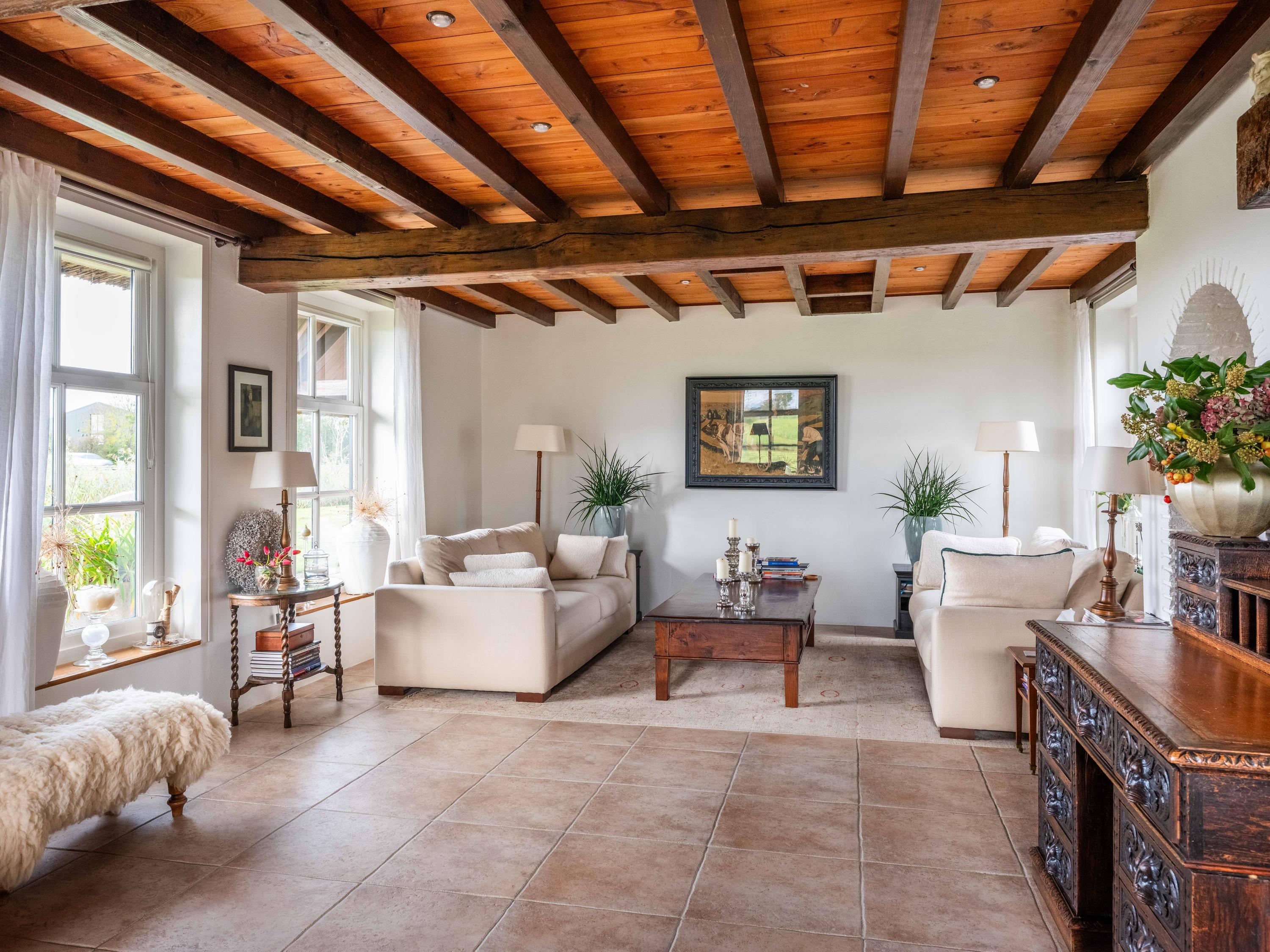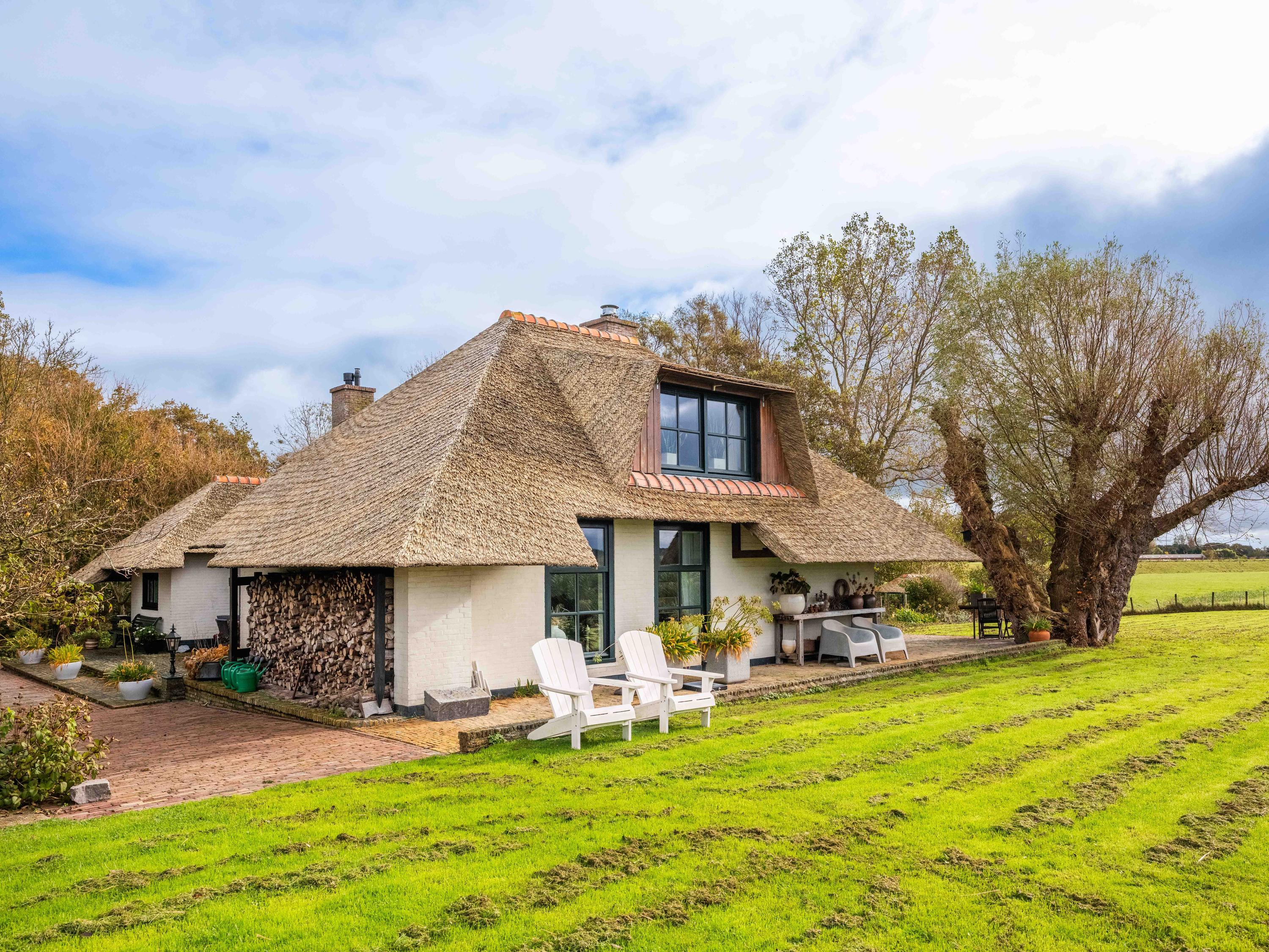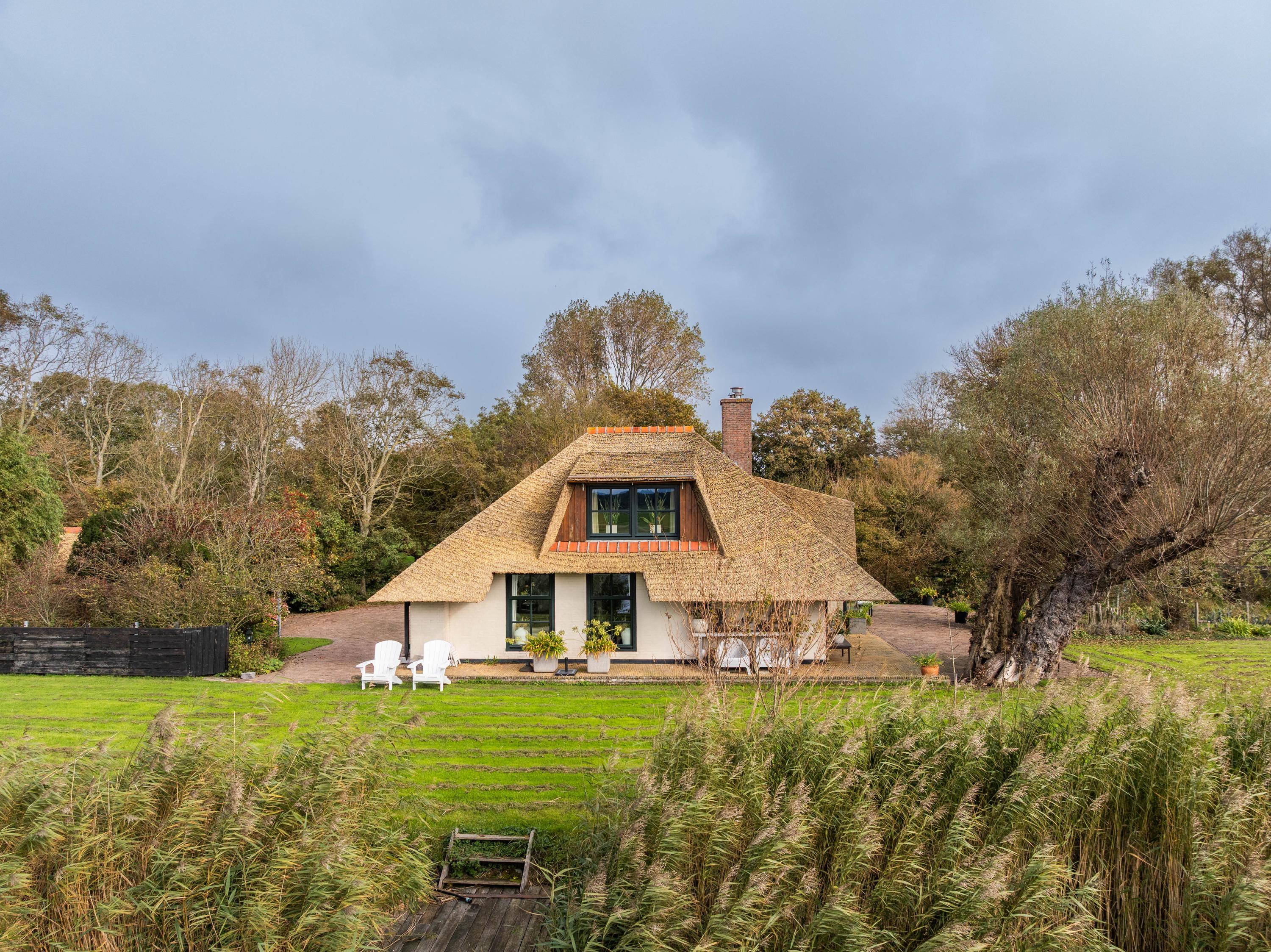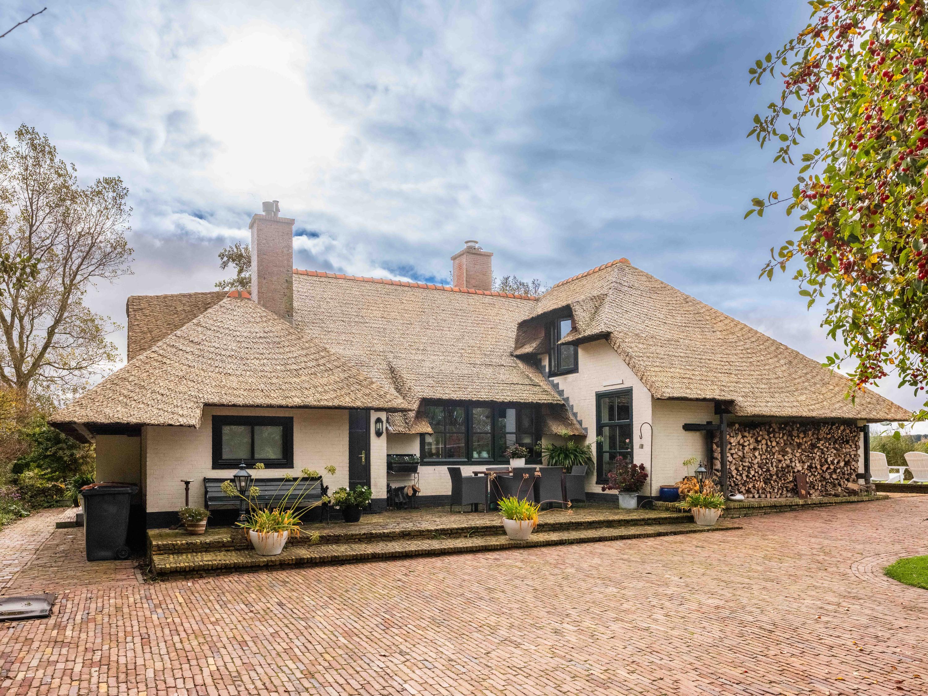 De woning heeft een warme, landelijke uitstraling met moderne gemakken zoals vloerverwarming, kunststof rieten dakbedekking en volledige isolatie.