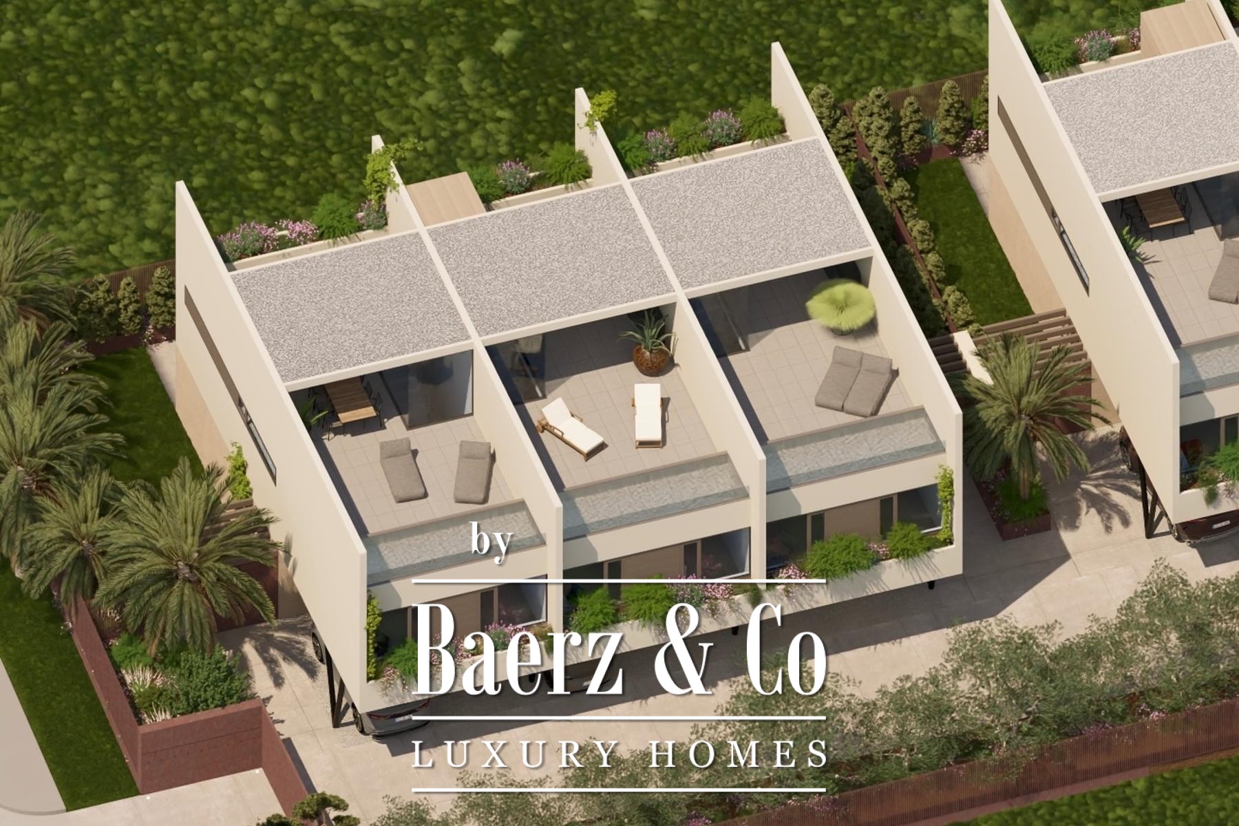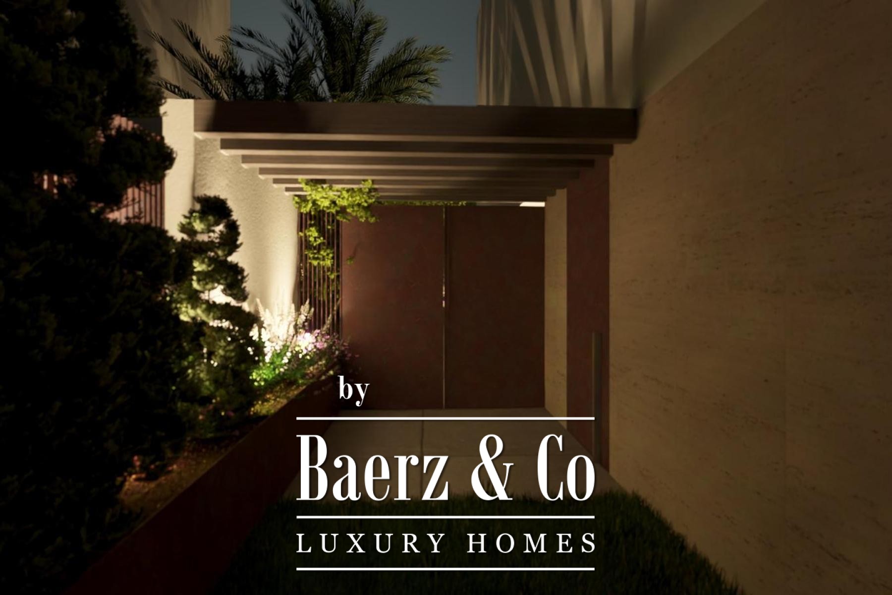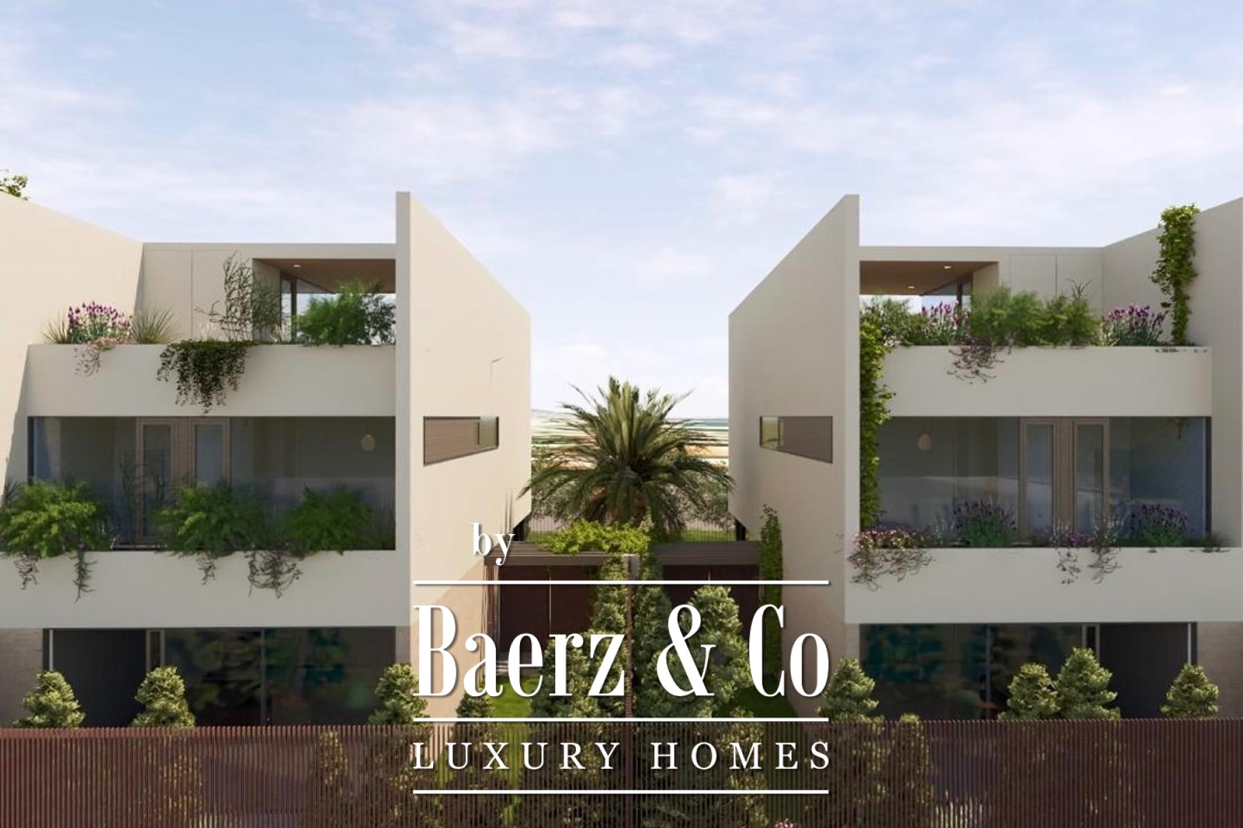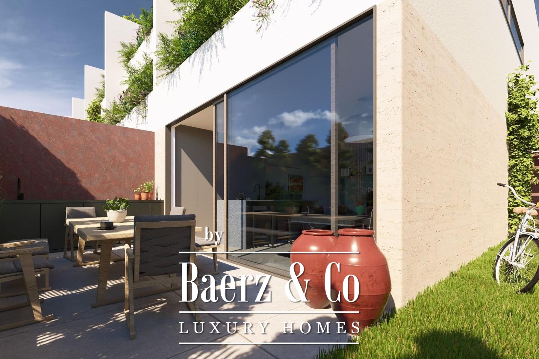 Het leefritme ontvouwt zich via een entreehal die leidt naar een lichte woonkamer, eetgedeelte en keuken, samengebracht door hoogwaardig eiken visgraatparket. Naadloze glazen wanden creëren een vloeiende overgang tussen binnen en buiten, met toegang tot terrassen en een privézwembad op de bovenste verdieping. Op de hoofdverdieping bevinden zich de hoofdslaapkamer en twee kinderkamers, aangevuld met drie badkamers voor een comfortabele dagelijkse routine.
