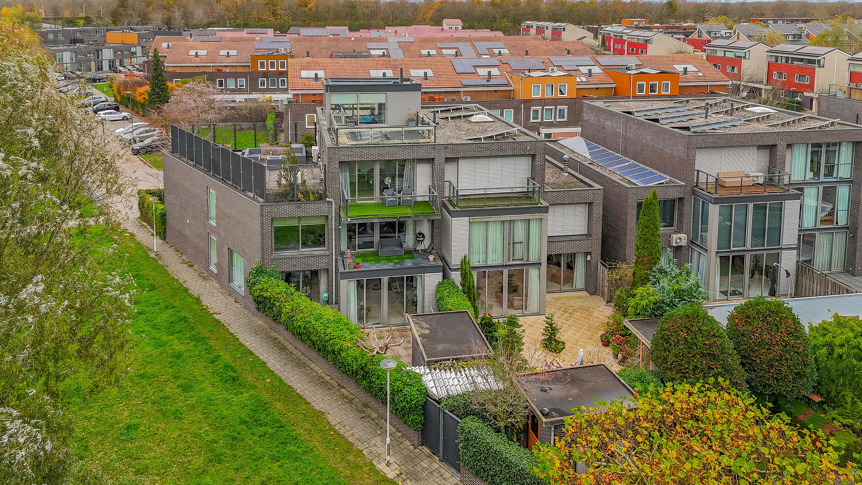 De woonruimtes zijn royaal opgezet en licht door de grote raampartijen. Elke woning heeft een eigen woonkamer met uitzicht op het groen rondom het huis. De keukens zijn praktisch ingericht en sluiten goed aan op de leefruimtes. In totaal zijn er drie moderne badkamers aanwezig, en door de verdeling over vier woonlagen is er altijd een rustige plek te vinden. De slaapkamers zijn verdeeld over alle verdiepingen, met ruimte voor grote bedden, bureaus en kasten. De huidige bewoners hebben de woning keurig onderhouden; de afwerking is strak en eigentijds. Dankzij HR++ beglazing, aluminium kozijnen, dak-, muur- en vloerisolatie, en 12 zonnepanelen is dit huis ook nog eens energiezuinig (energielabel A).