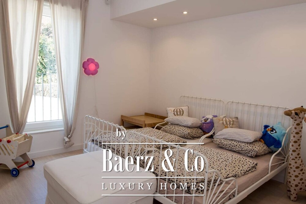 Интерьер включает три спальни и три ванные комнаты, просторную гостиную, современно оснащённую кухню и винный погреб площадью 45 м². Тёплый пол, эффективная система кондиционирования и комплексная система безопасности с шестью камерами и сигнализациями обеспечивают беззаботный быт. Пространства гармонично сочетают уединение и атмосферу гостеприимства, а летняя кухня площадью 24 м² напрямую связана с выразительным бассейном площадью 47,5 м².