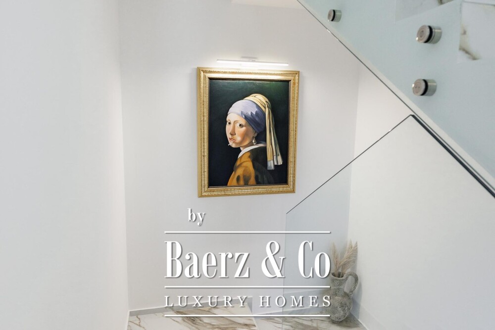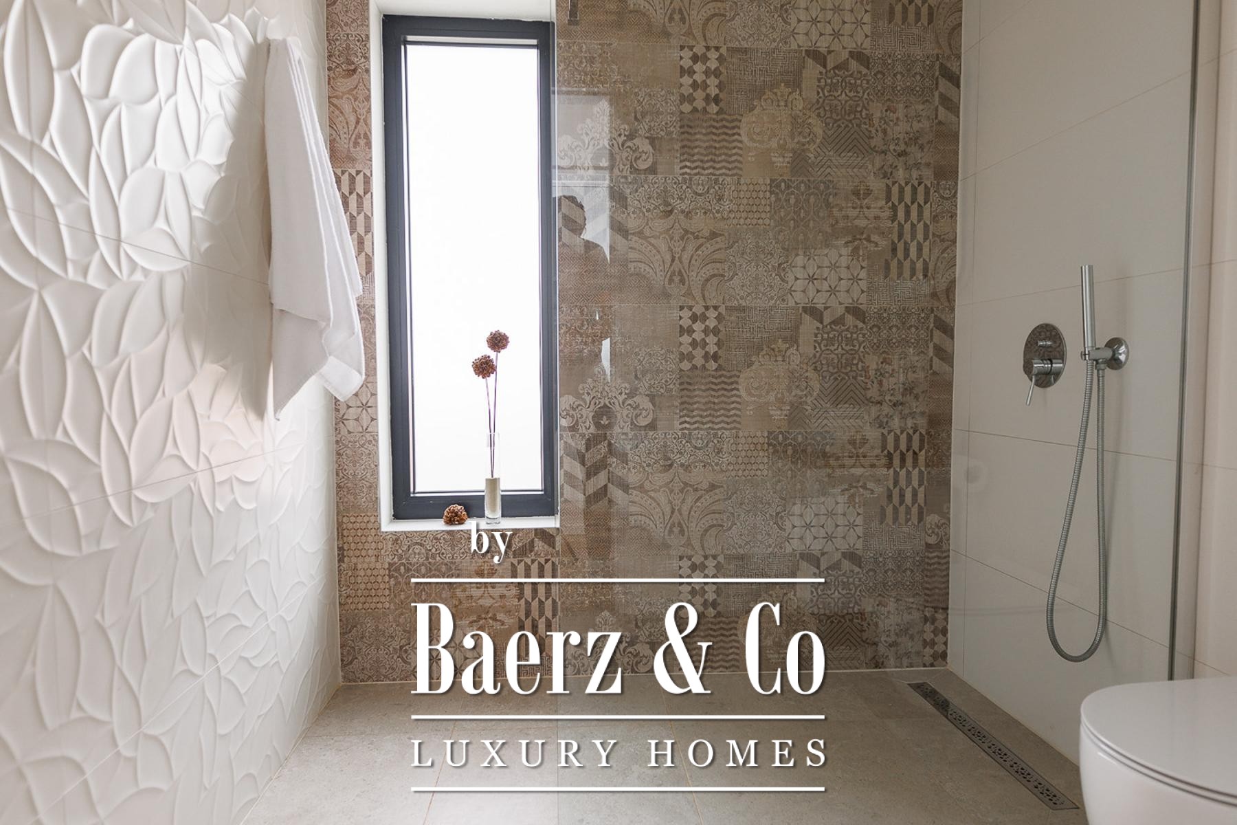 По мраморной лестнице можно подняться на верхний этаж, где две спальни с двуспальными кроватями и частными террасами выходят на голубые просторы Кварнера, а четвертая комната с раздельными кроватями и дополнительной ванной дополняет планировку. На участке ландшафтный сад площадью 700 м², зона для загара и терраса с зоной барбекю приглашают к отдыху на солнце.
