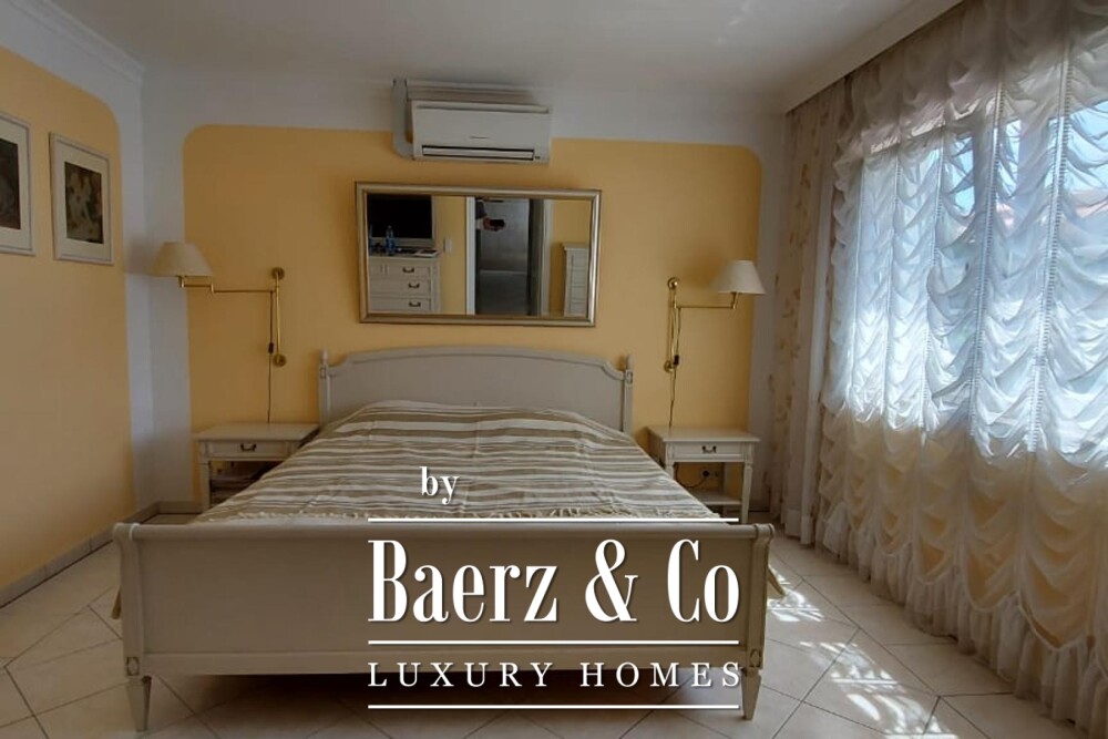 Жилая площадь составляет 380 м², участок — 700 м², что объединяет простор внутри с тщательно организованным уличным пространством. На входе просторная гостиная располагает к спокойствию и ведет на крытую террасу площадью 60 м² с видом на зрелый сад, где изысканный подбор растений фиксирует течение времени. Кухня просторная и продуманно оборудована, подходит как для повседневной жизни, так и для приема гостей. Кабинет обеспечивает уединение, сохраняя связь с домашней атмосферой.